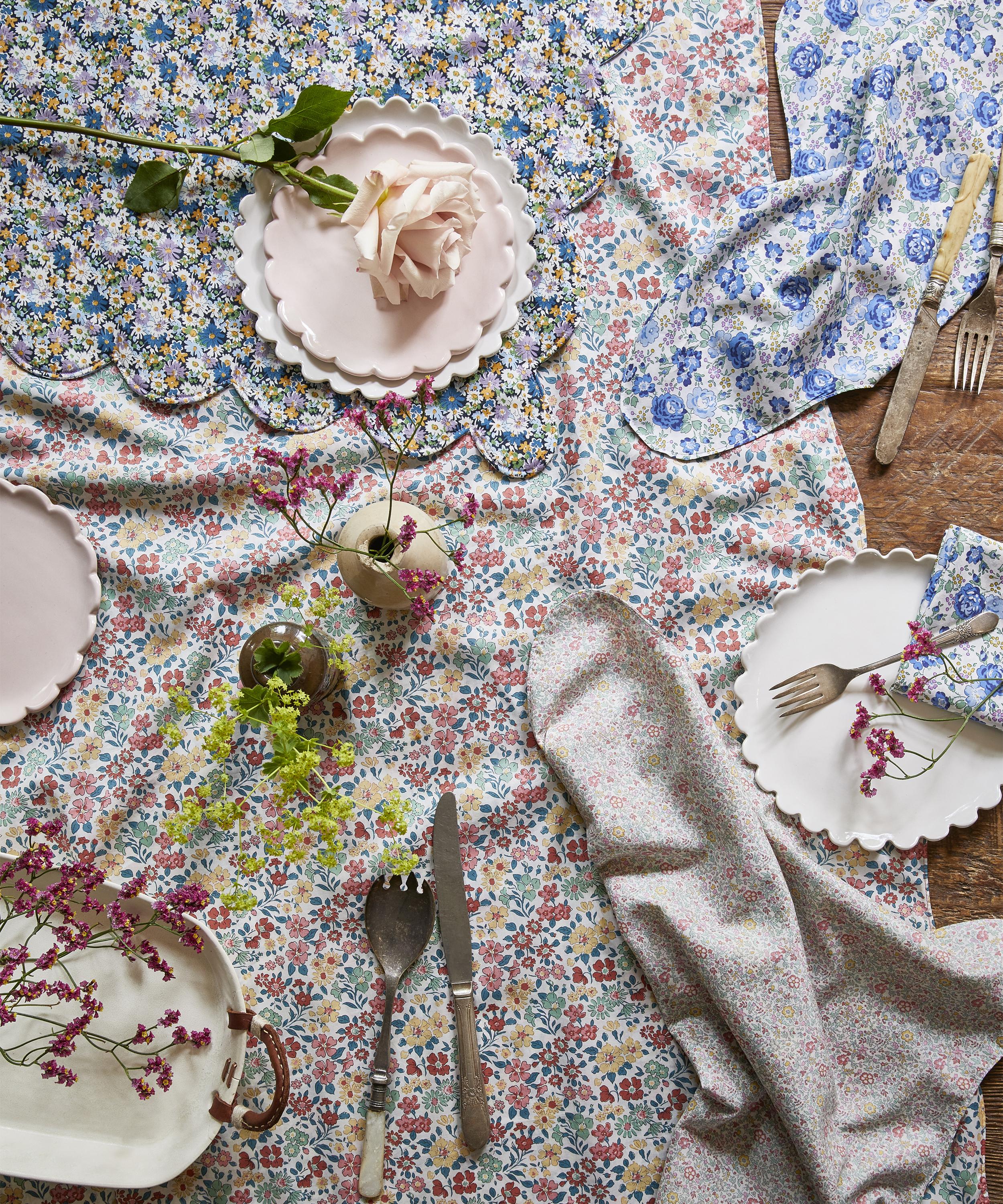 Somerset-born bedding brand Coco & Wolf is renowned for its Liberty print bedspreads, duvets and cushions, crafted from our inimitable Tana Lawn™ cotton, a modern masterpiece of fabric production that Liberty has been perfecting for over 100 years. This napkin is dressed in Liberty Fabrics’ Katie and Millie, and Annabella prints and is complete with a delicate, rippled edge. Pair it with a patterned tablecloth for enhanced print power.