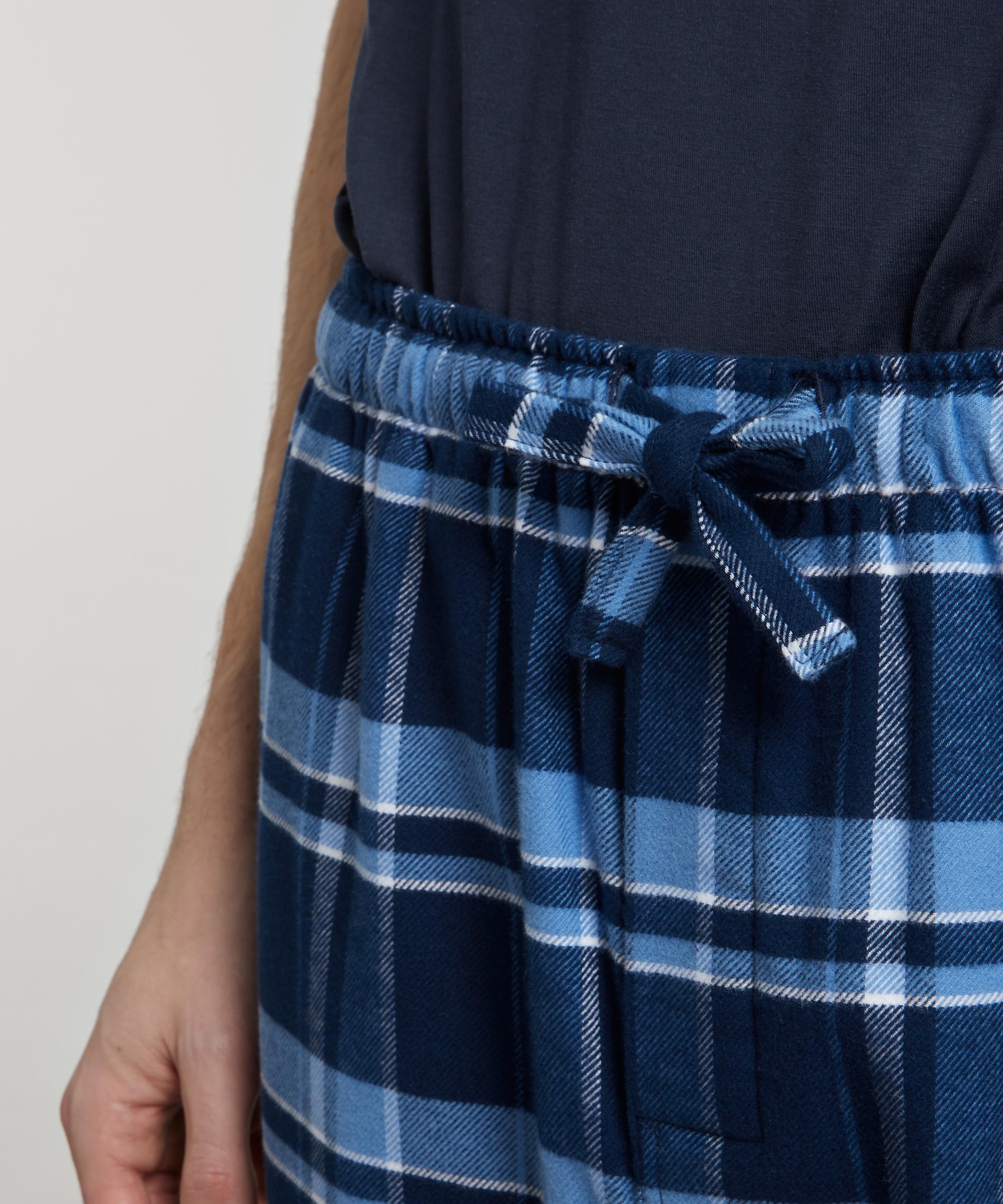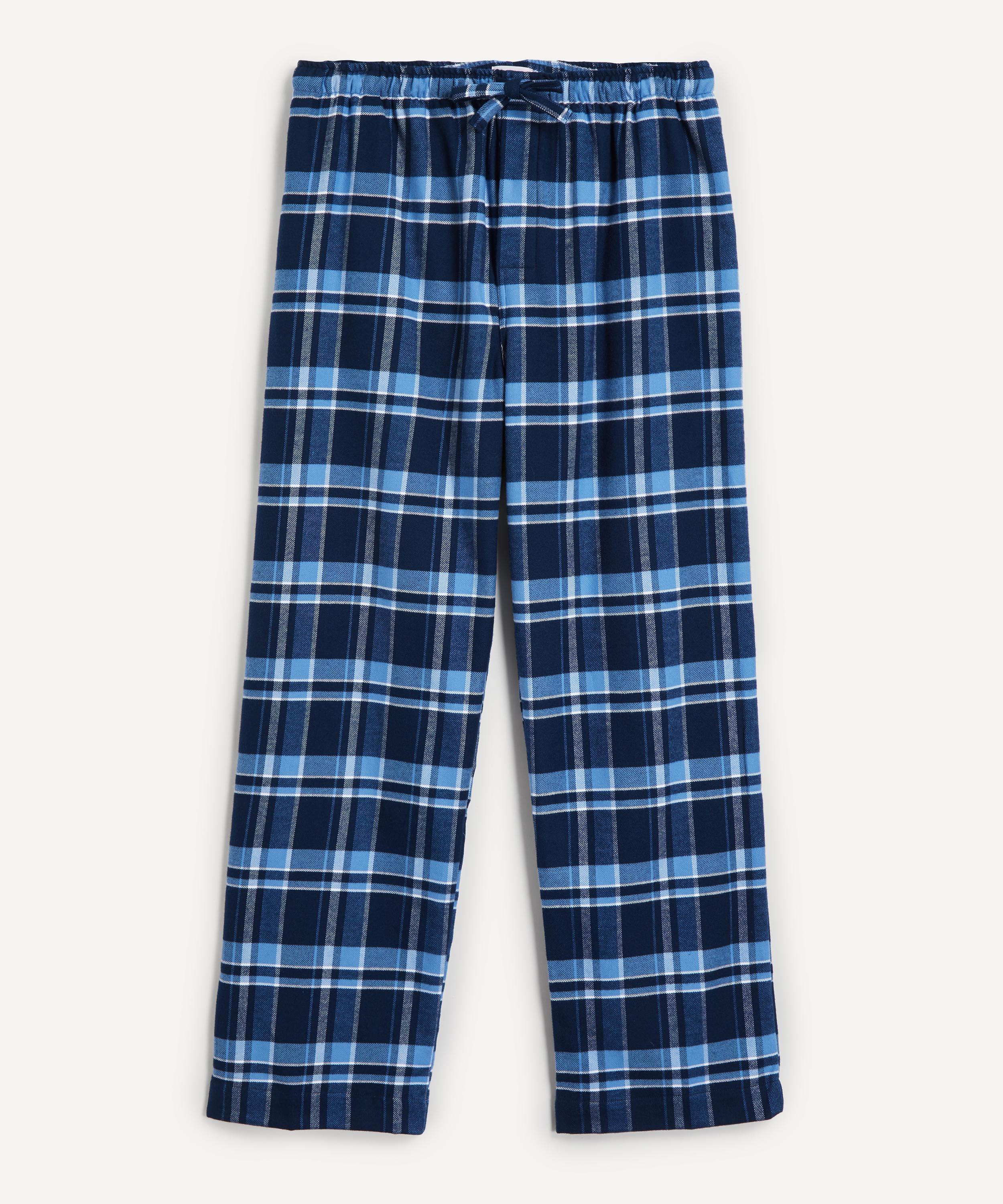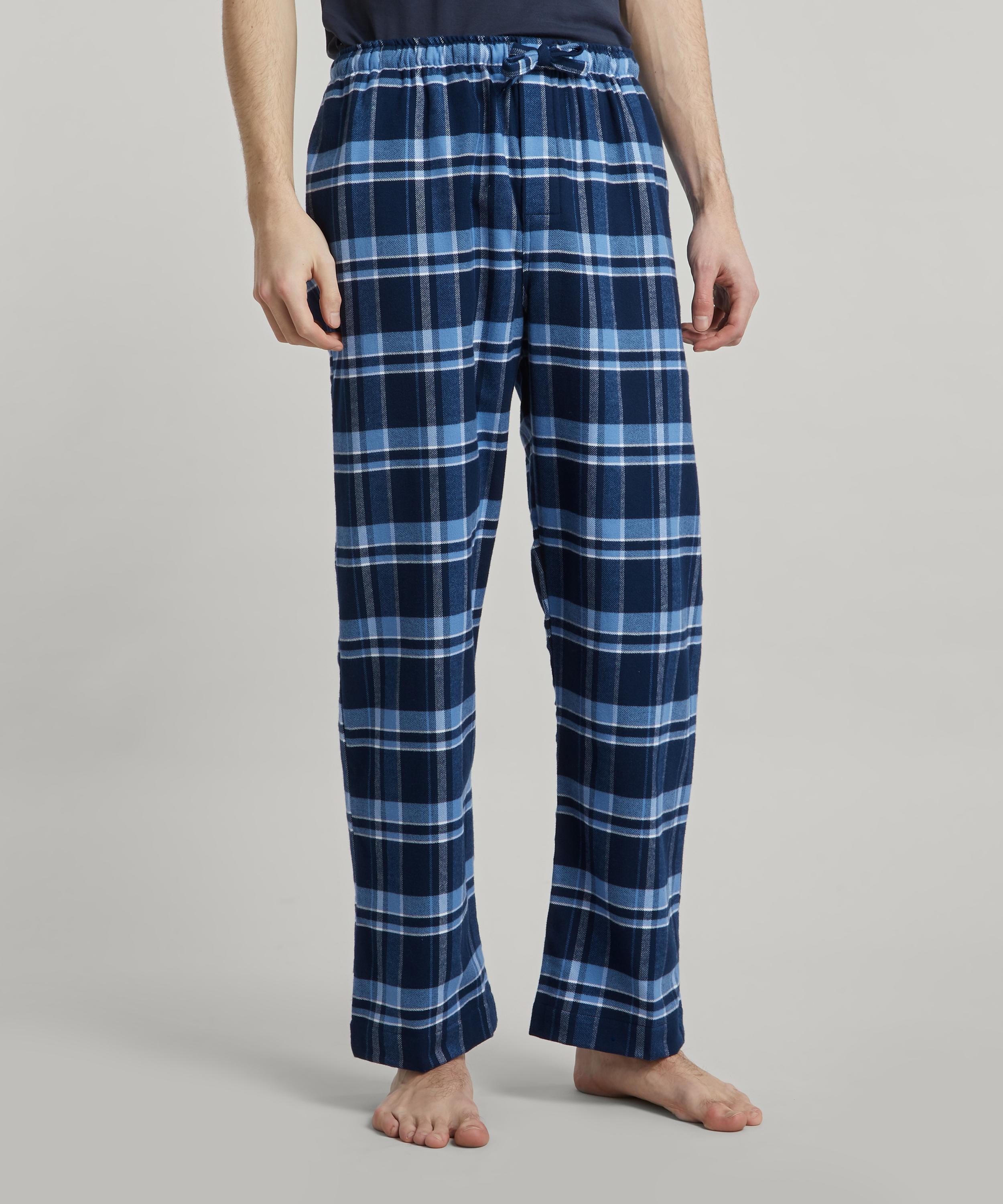 Made from a super-soft, brushed cotton, Derek Rose's Ranga pyjama bottoms have a bold navy blue check print.