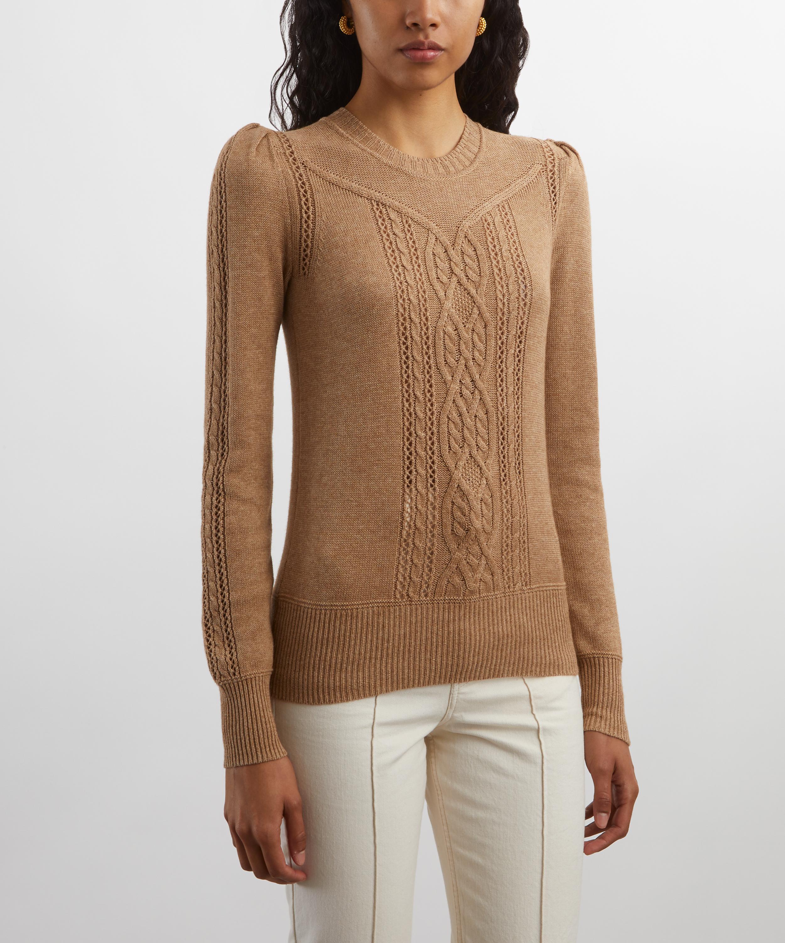 Knitted from a soft cotton-wool blend, the Kelia jumper features a classic cable-knit design with pleated shoulders, long sleeves, and a round neckline - offering a refined take on a timeless silhouette.