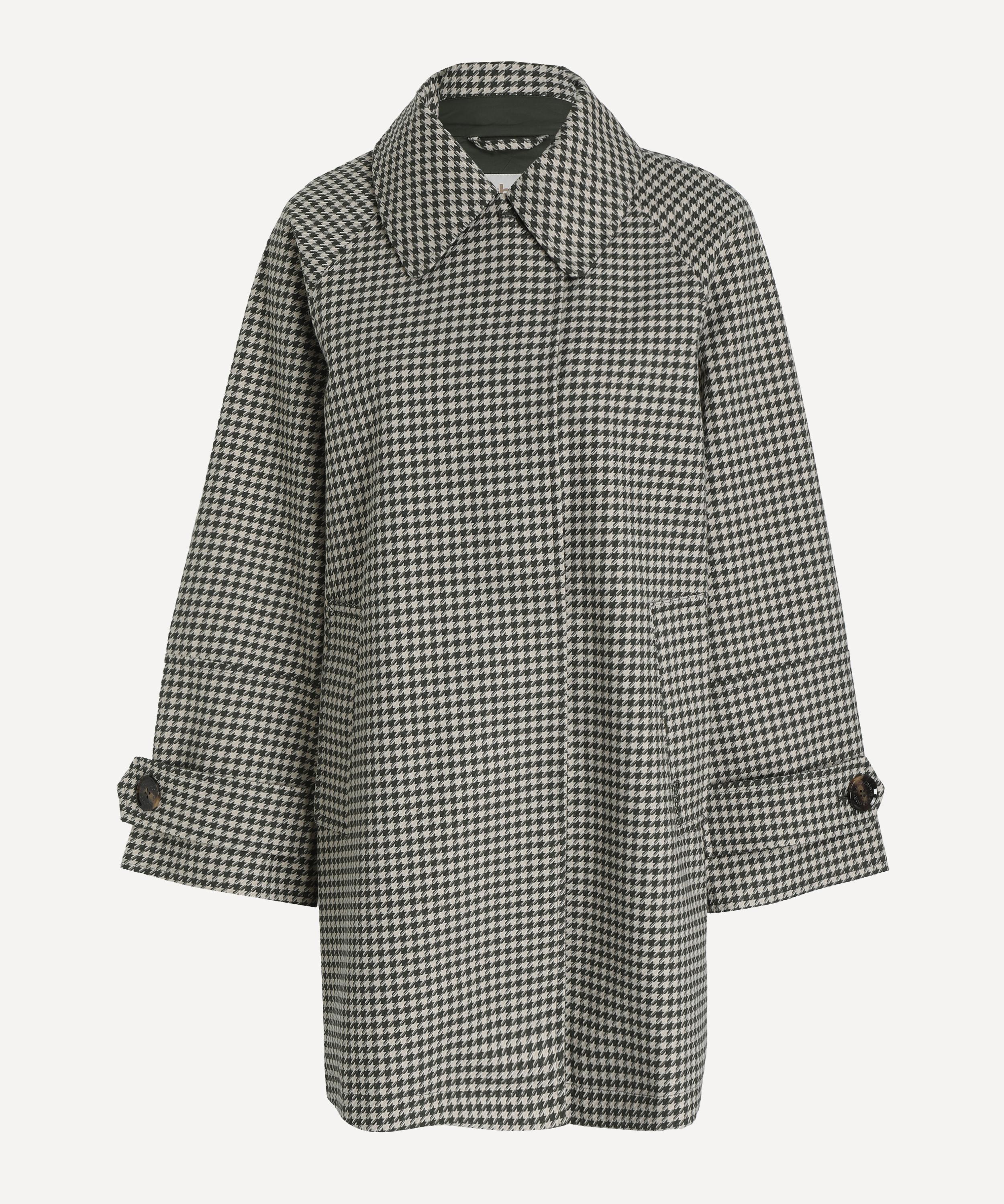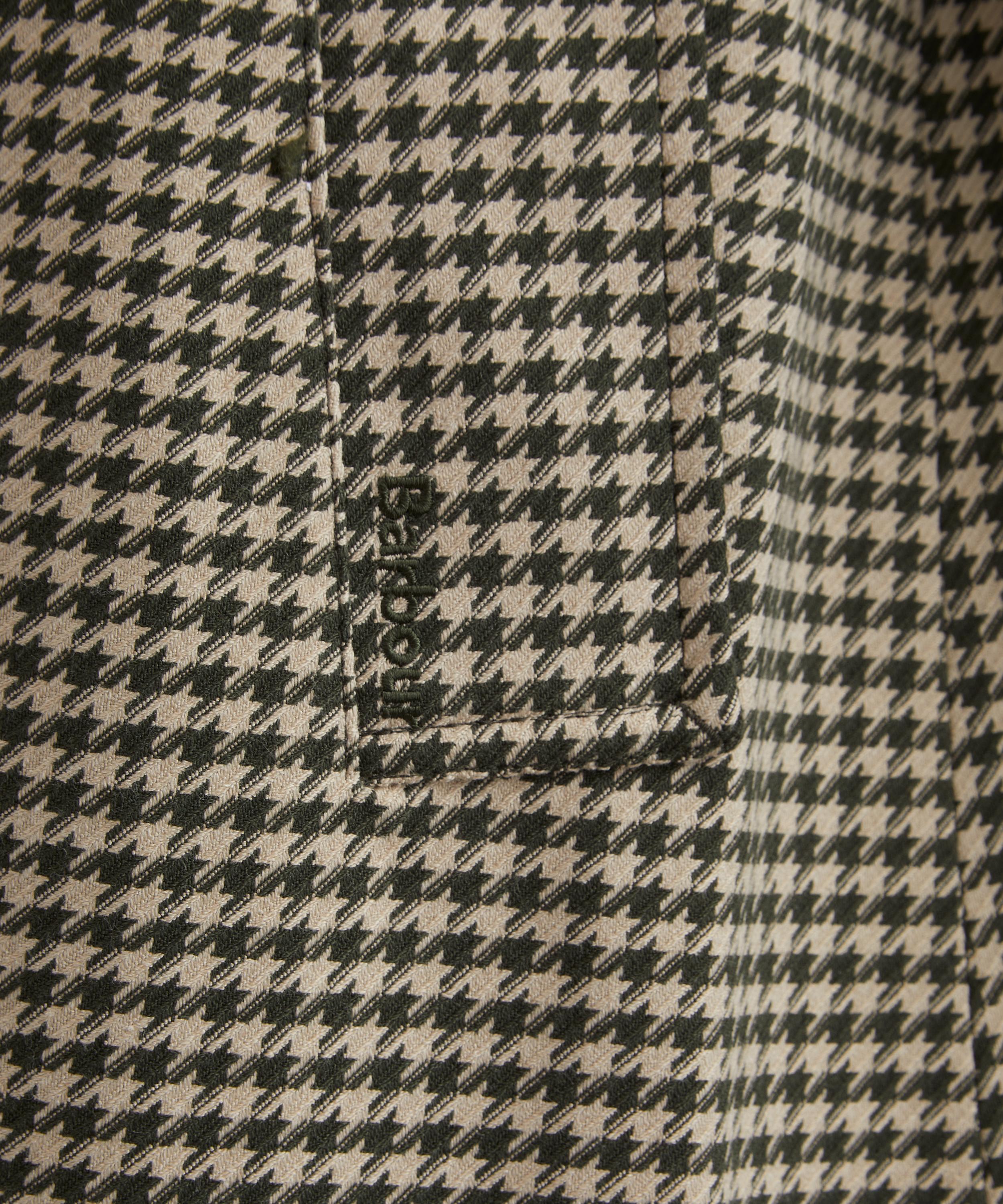 The Kennedy Houndstooth Showerproof Car Coat delivers a modern twist on the classic silhouette. Its striking check design, signature 50L button at the neck, concealed stud fastening, and generous welt pockets strike the perfect balance between style and practicality, while deep cuffs with button-tab detailing add a refined finish.