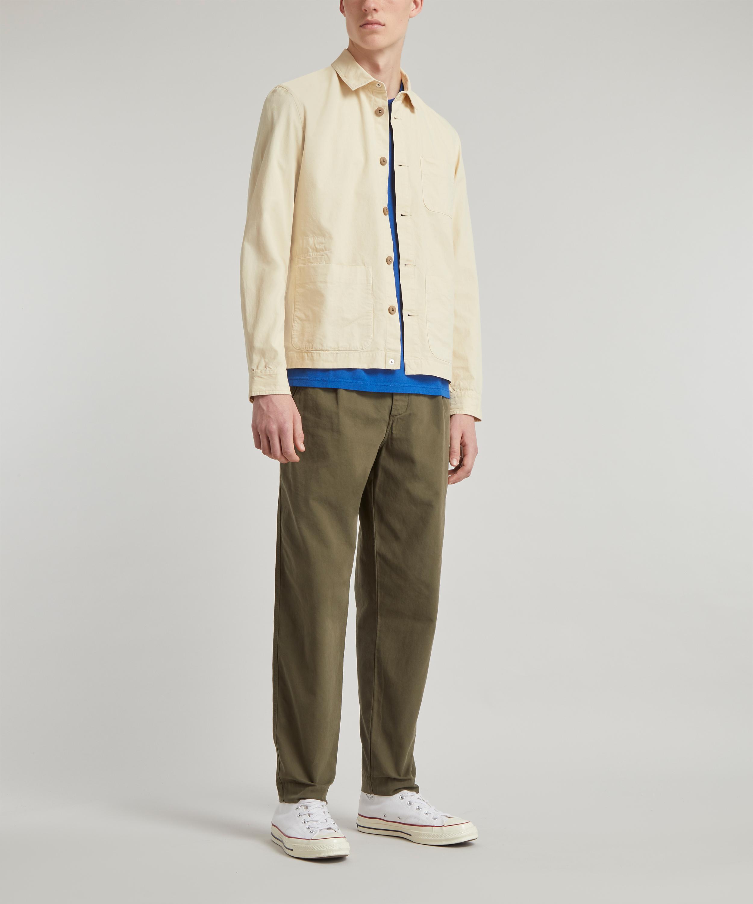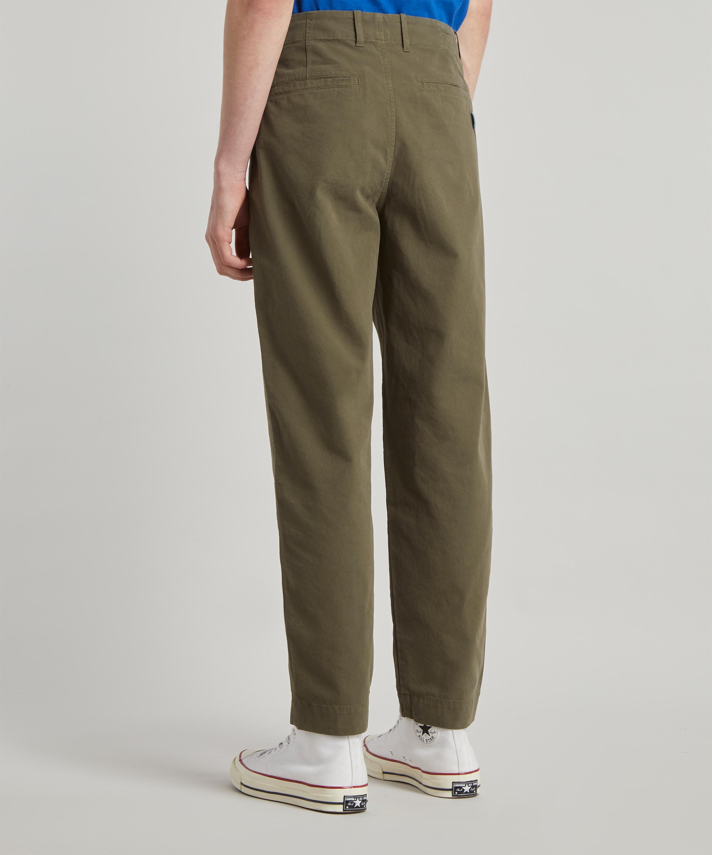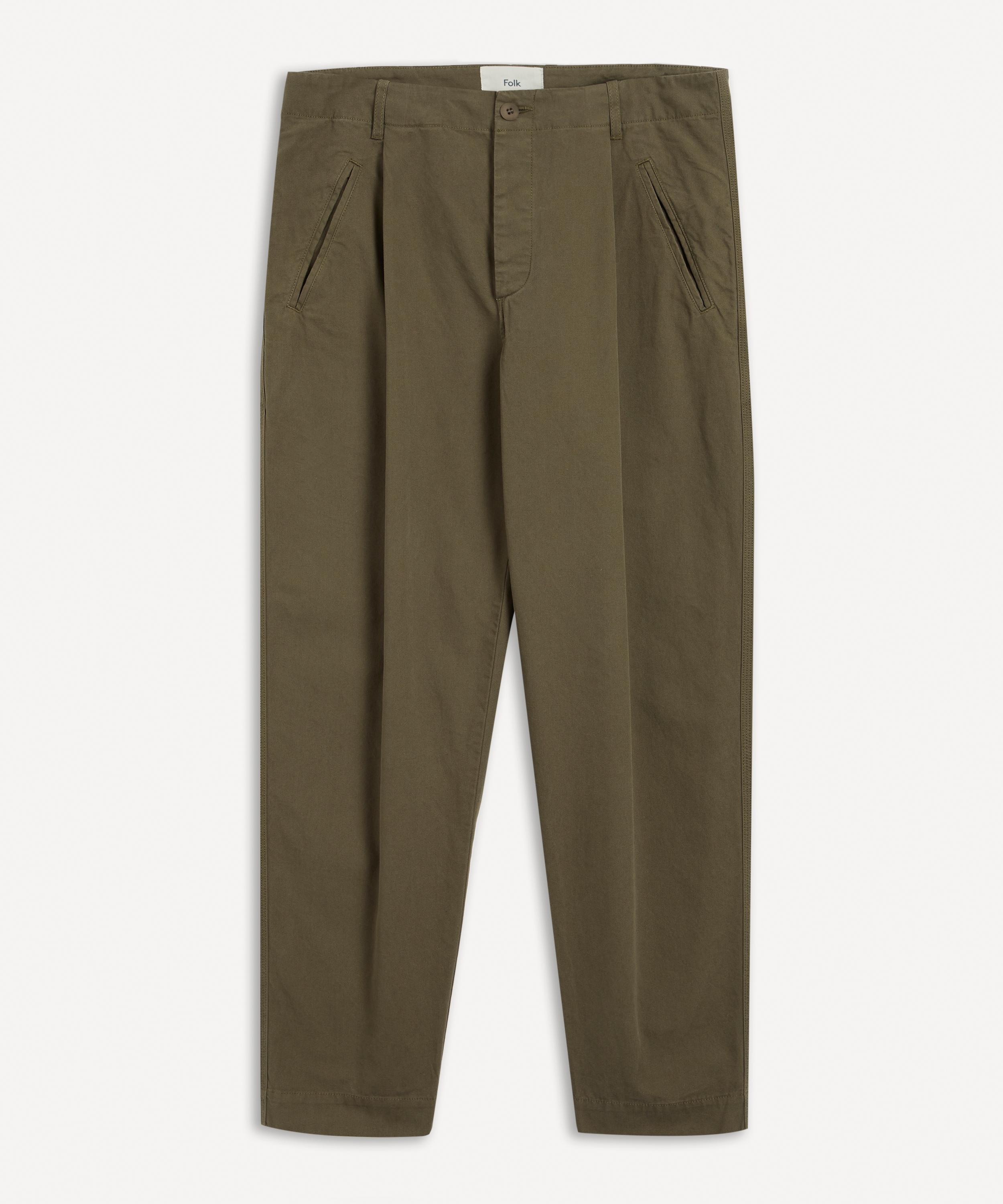 Boasting a relaxed, tapered silhouette cut to a cropped length, these pants are illuminated by a militiary-inspired khaki hue and built from a durable cotton canvas fabric. The pleat detailing to the front lends an elevated touch, meanwhile the concealed corozo button and fly closure weaves a functional finish. Unlined and completed with twin jet pockets, we love this pair partnered with a royal blue t-shirt, neutral jacket and white sneakers.