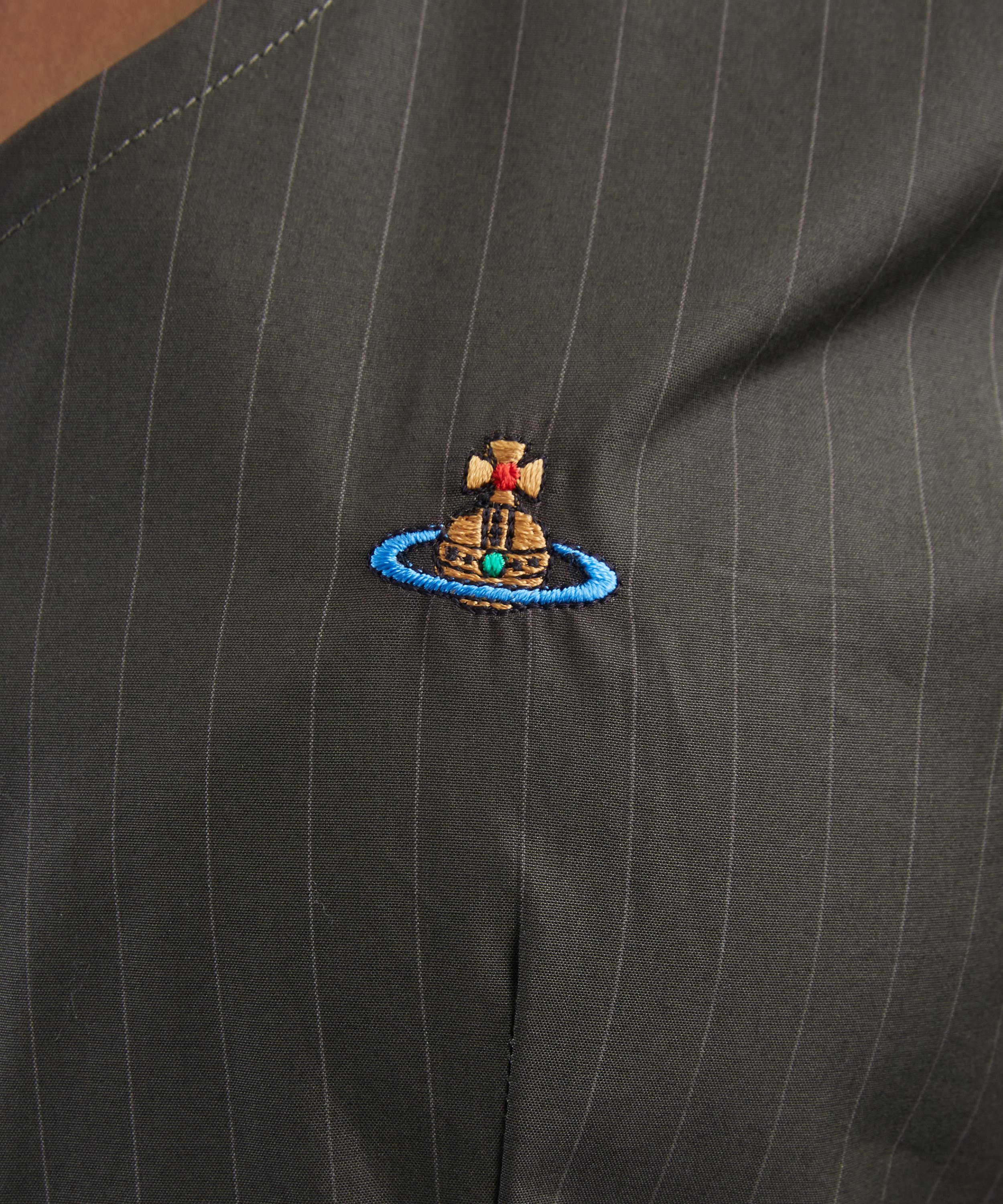 Crafted from cotton, this khaki shirt revives Vivienne Westwood’s archival cut‑out heart tailoring at the neckline. A frilled round collar and short puffed sleeves add a soft, feminine touch, while orb embroidery at the chest delivers a signature finish.