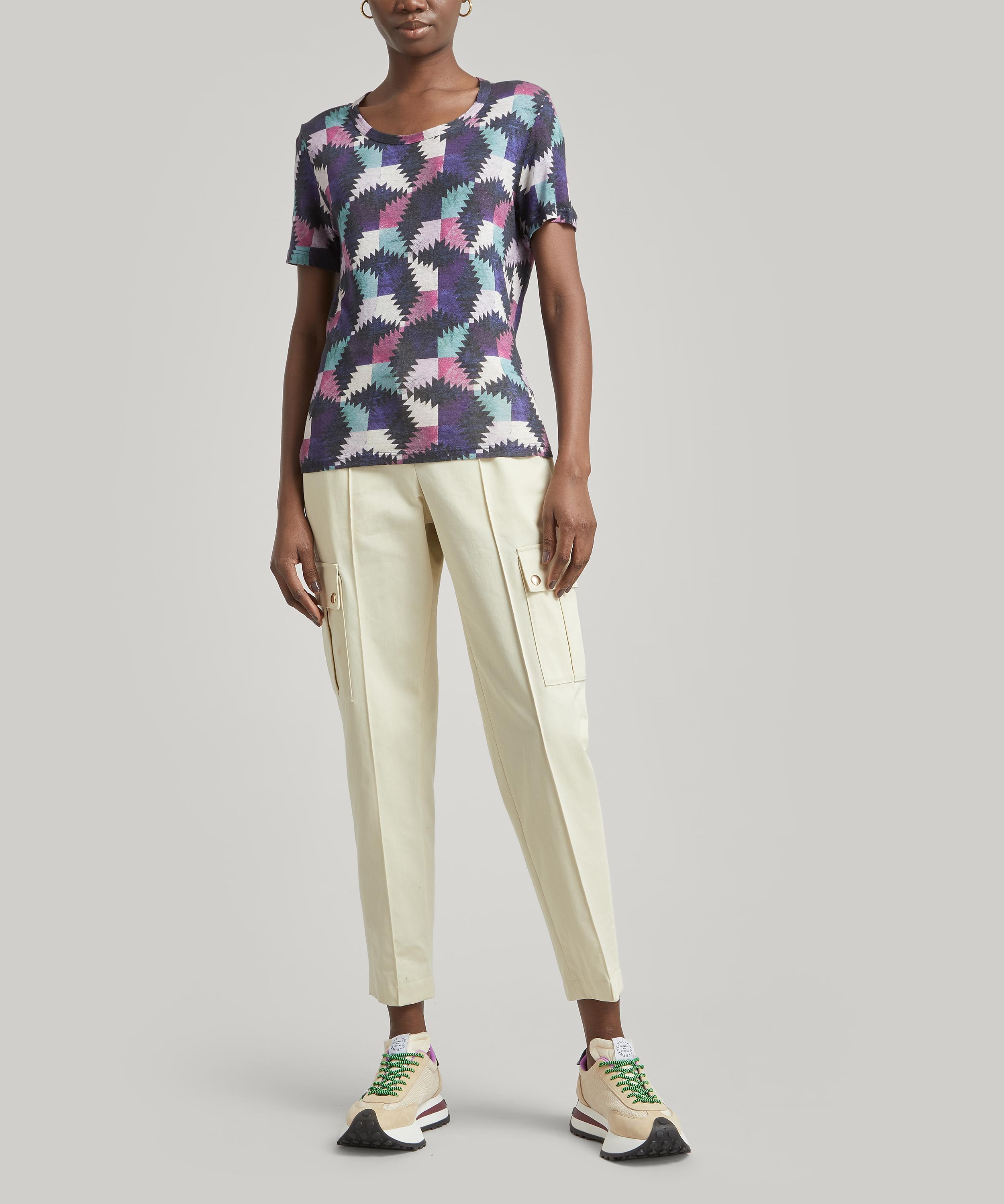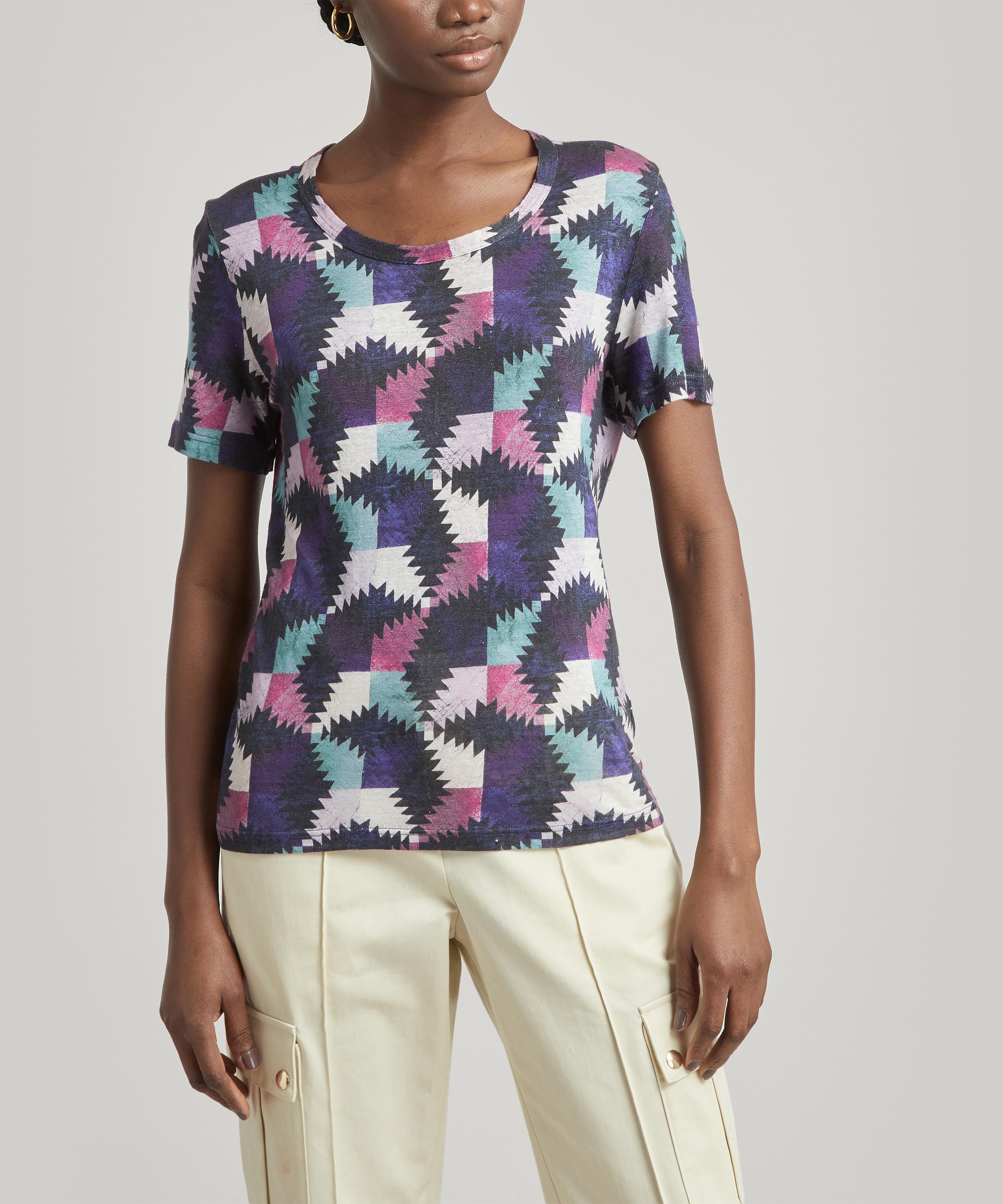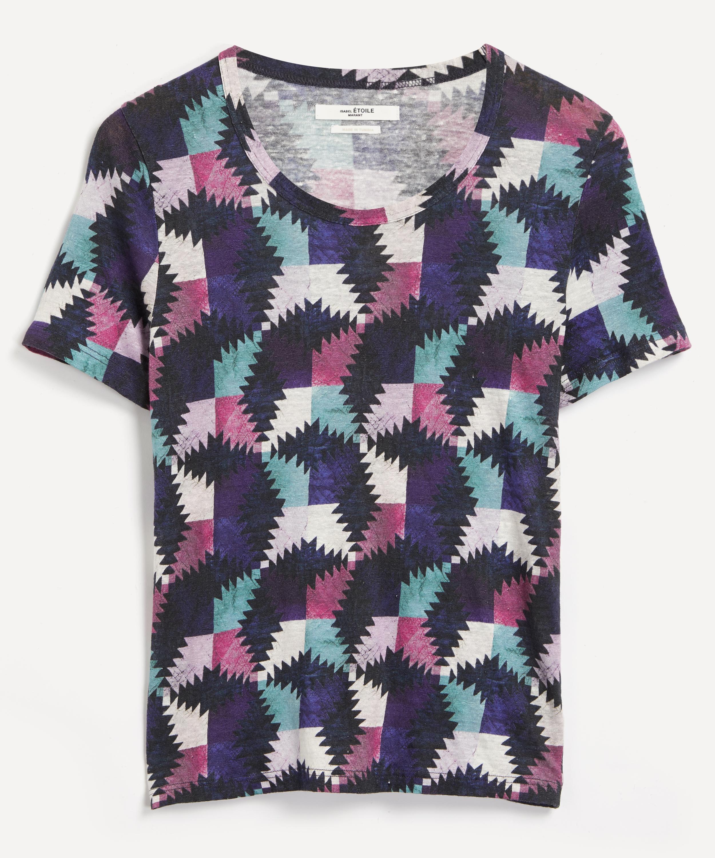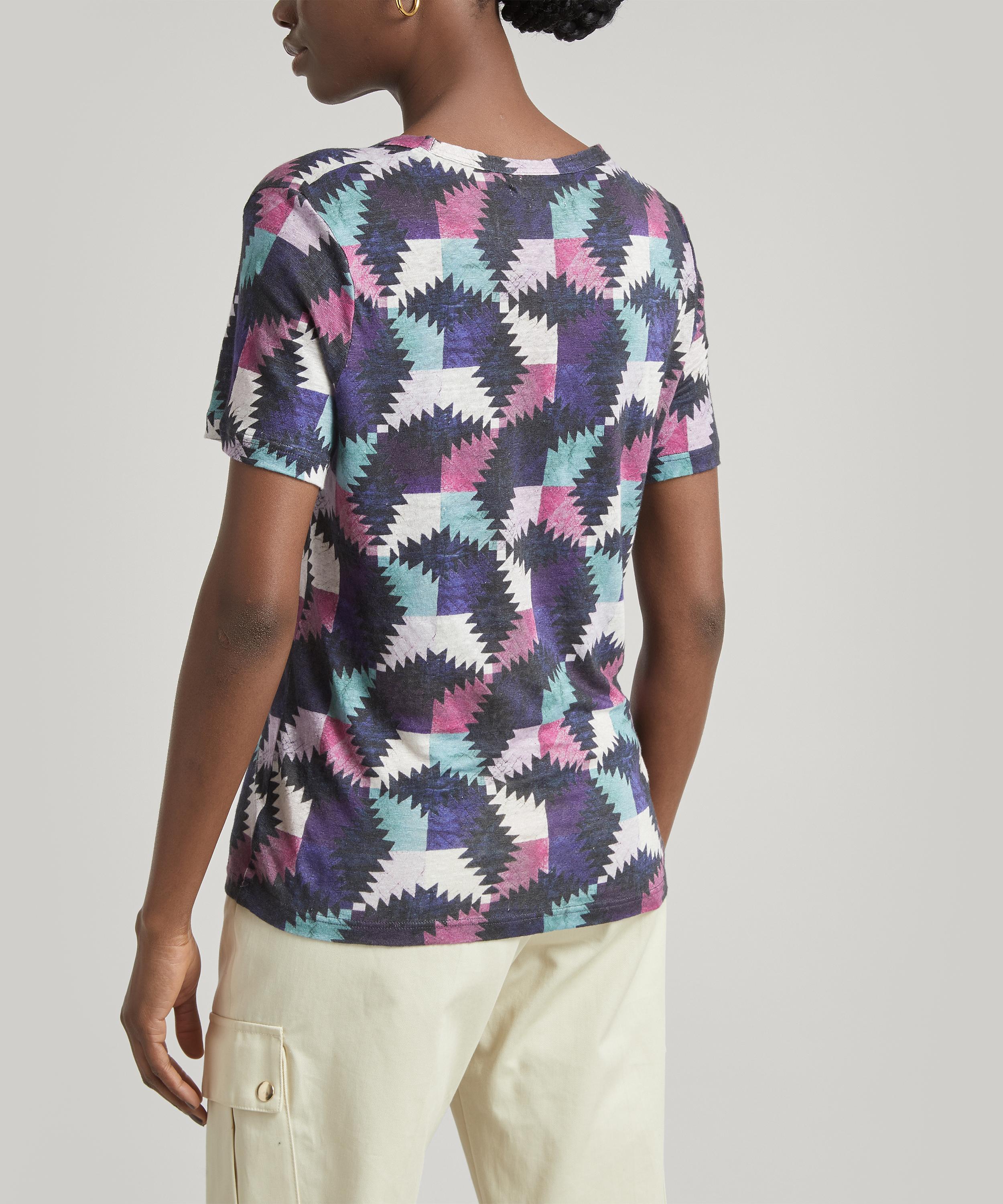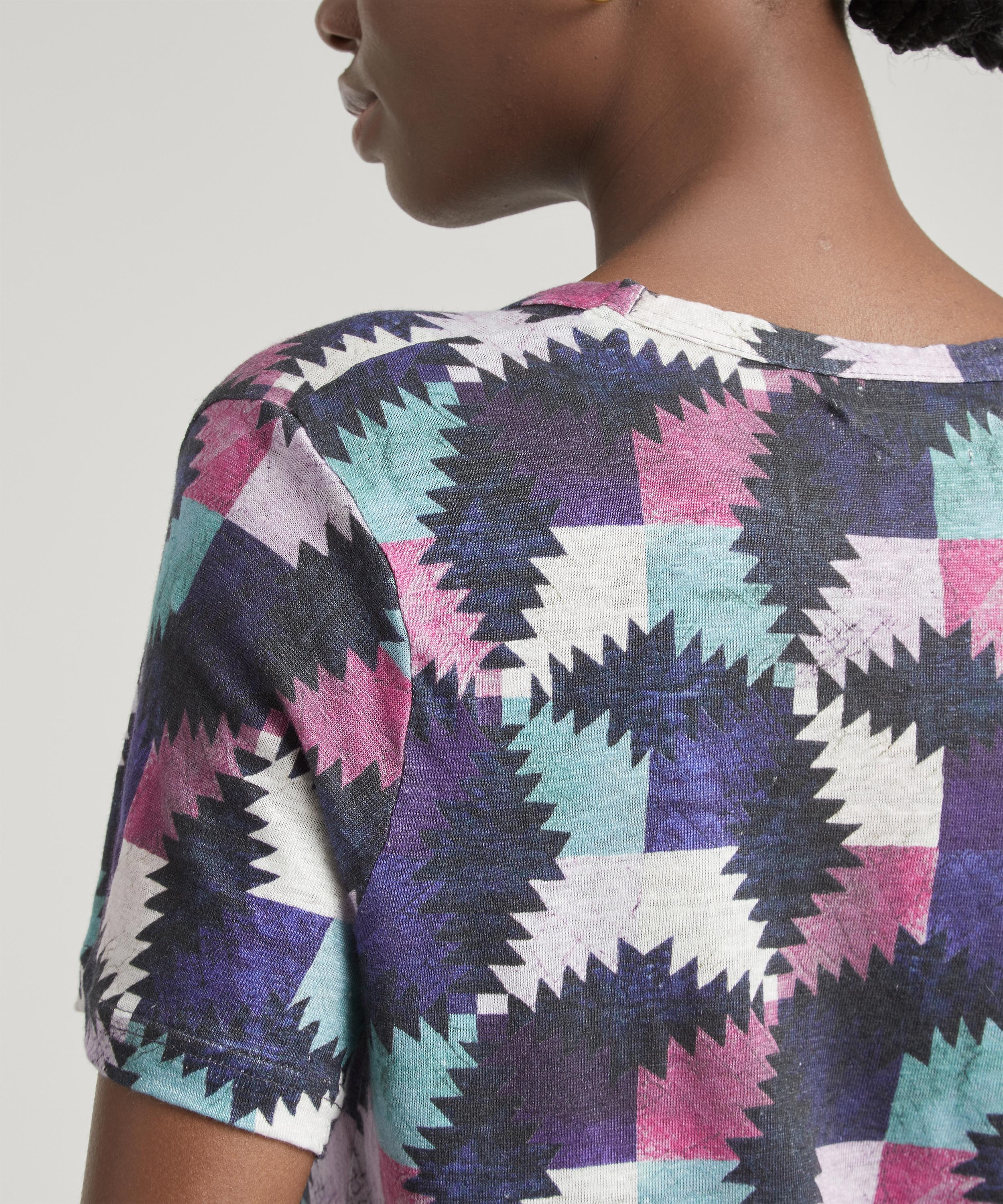Crafted in super soft linen, this short-sleeved t-shirt with a relaxed fit and a round neckline is imbued with Étoile’s nonchalant Parisian attitude. It’s an essential piece you won’t be able to live without, as its vibrant geometric pattern is perfect for adding a pop of colour to your daily edit - style it with a cream ensemble for maximum impact.