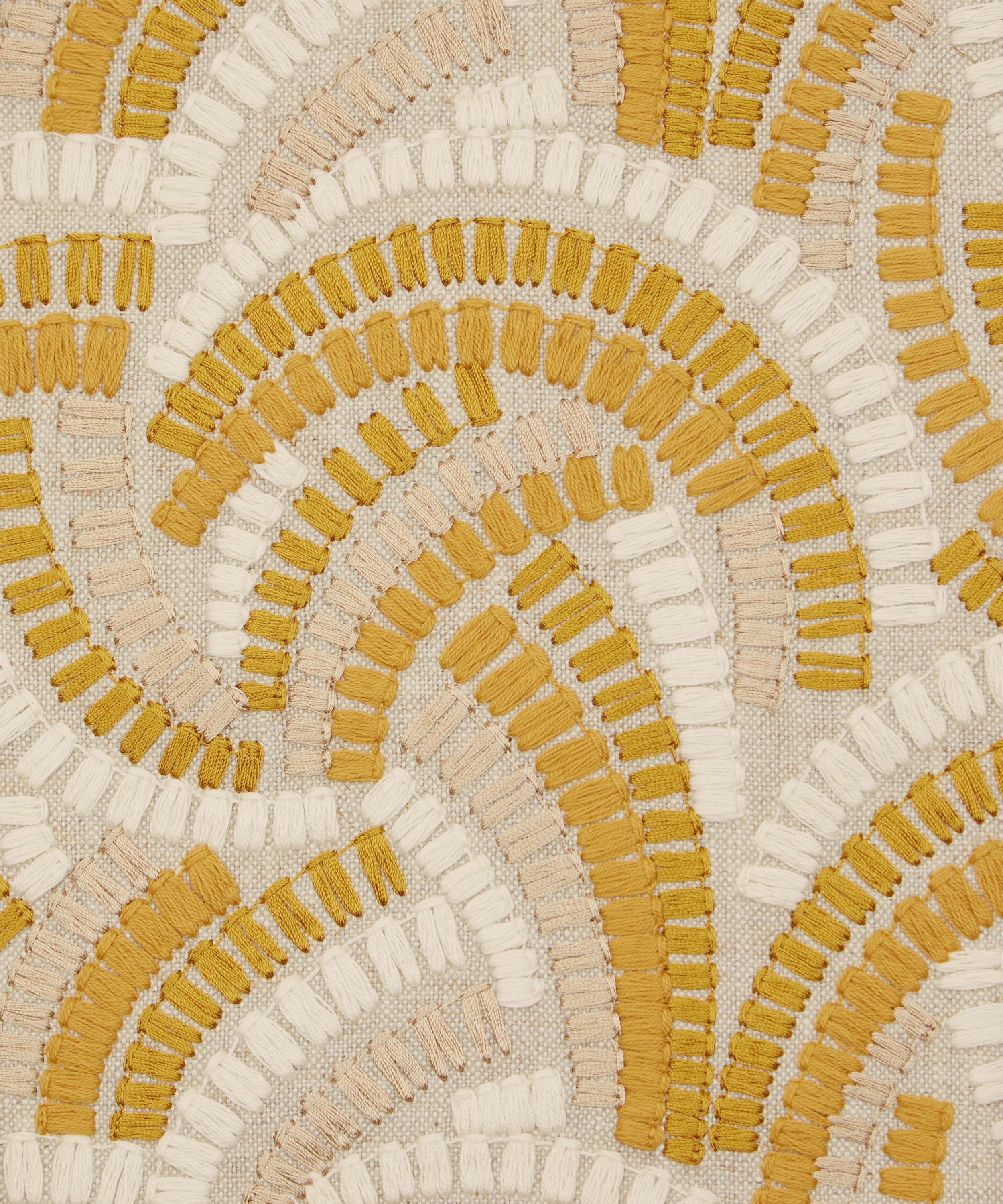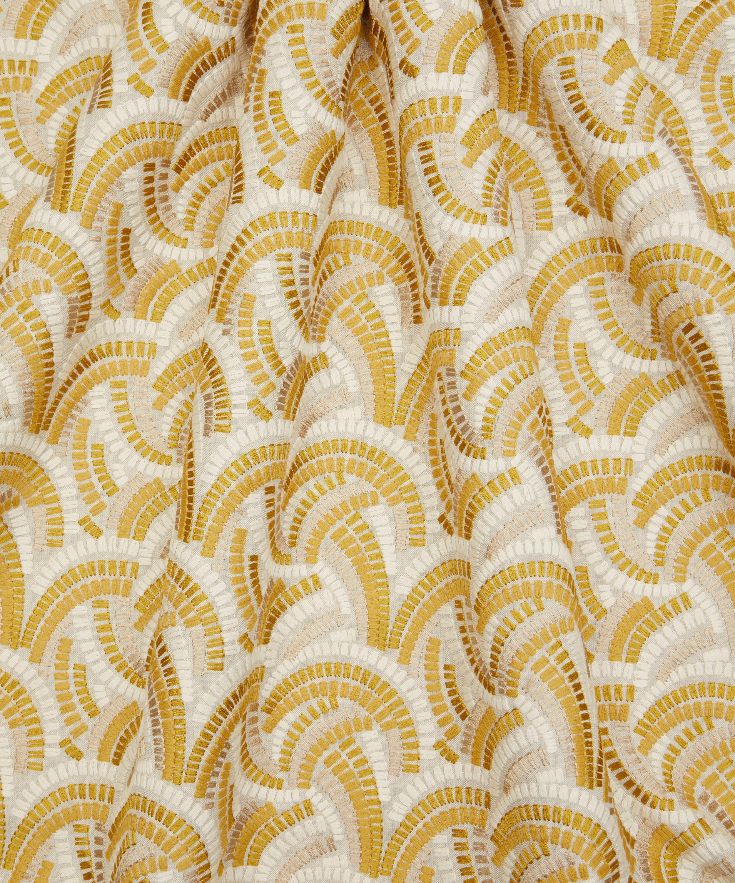 Beautifully illustrated with dynamic geometry and delicate precision, this wonderfully kinetic pattern’s rhythmic curves display an endless optical illusion of mesmerising movement. Embroidered in India with harmonious tonal colours, Kimono Knot is suitable for drapery, cushions, and accessories.