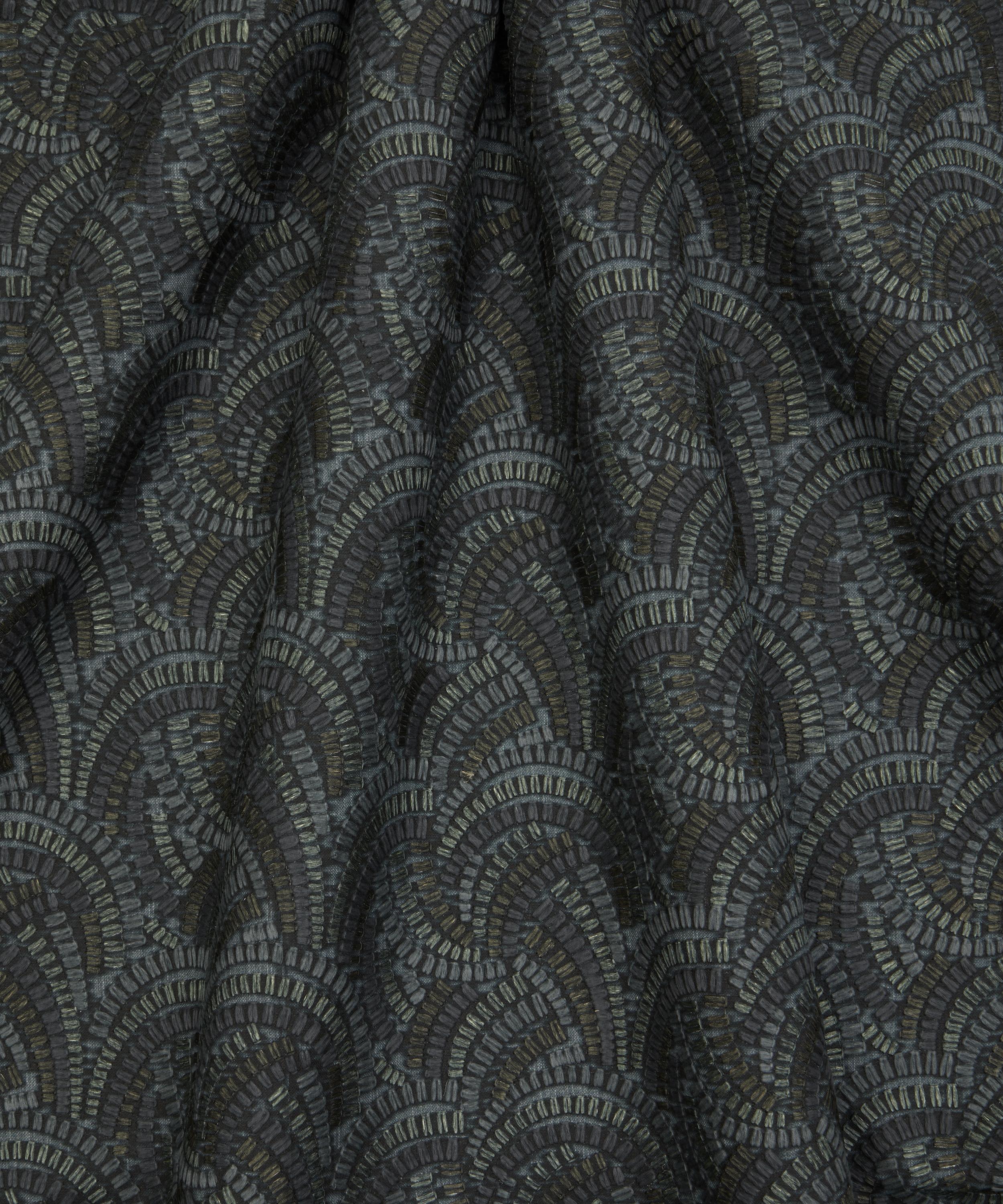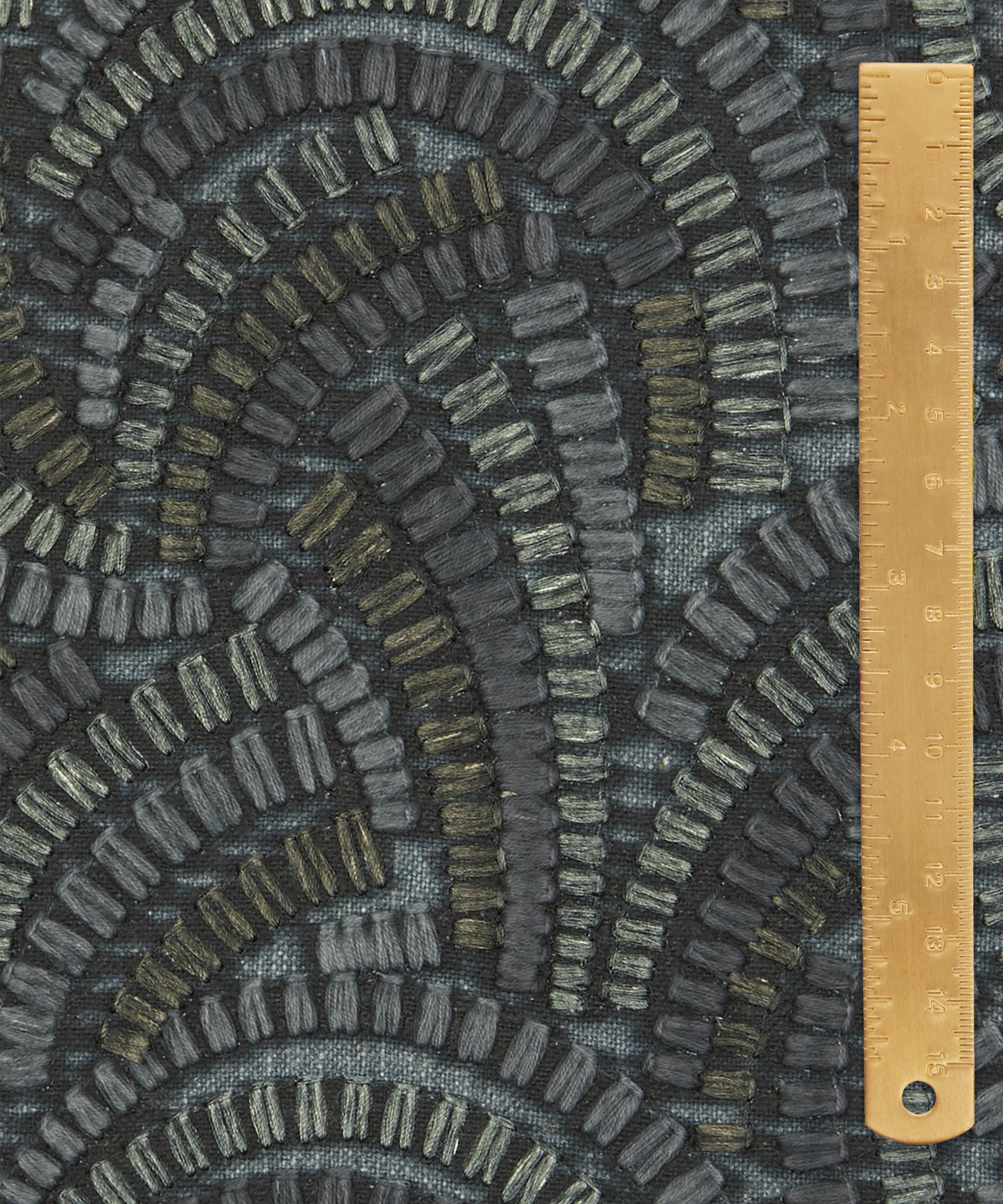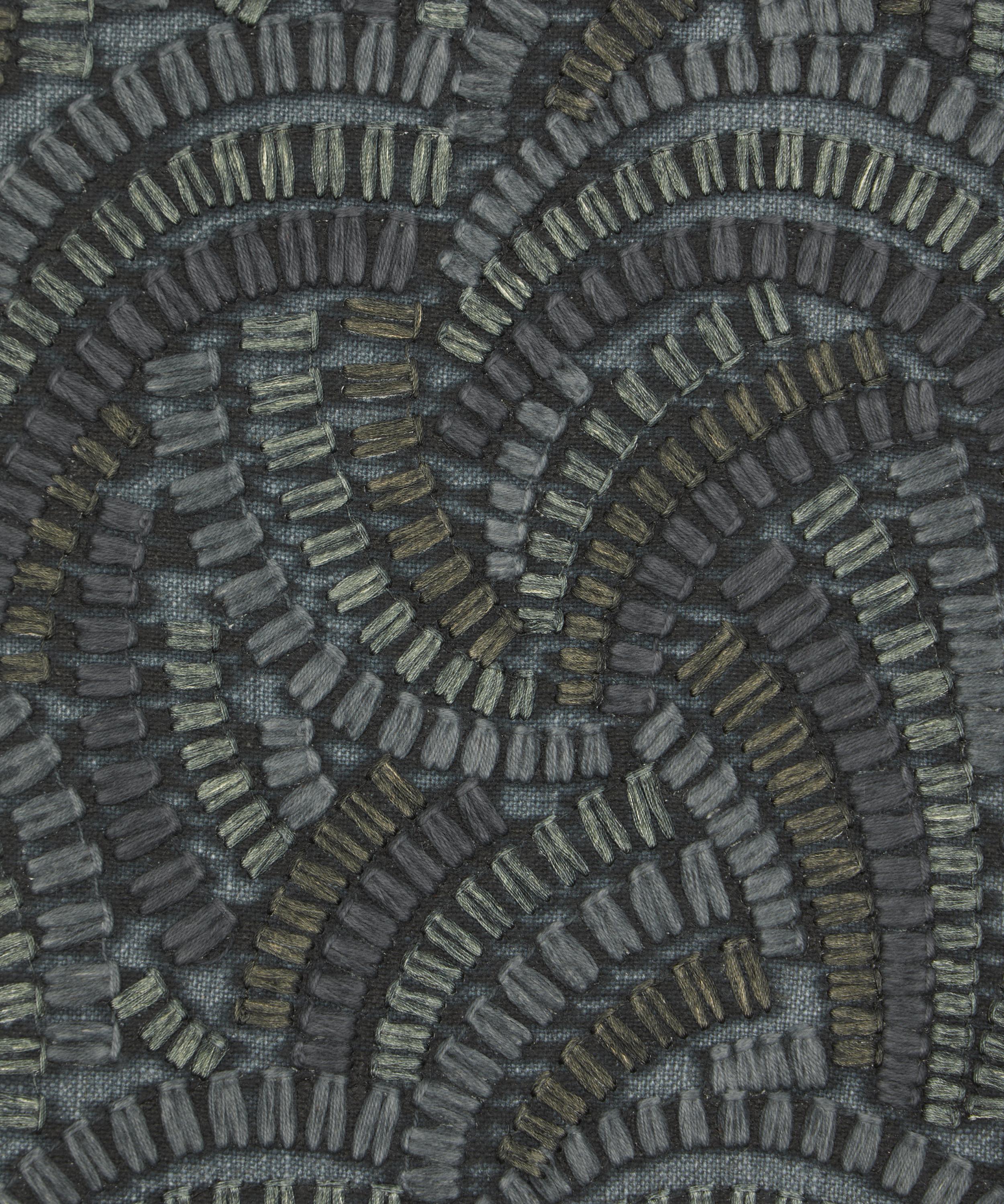 Beautifully illustrated with dynamic geometry and delicate precision, this wonderfully kinetic pattern’s rhythmic curves display an endless optical illusion of mesmerising movement. Embroidered in India with harmonious tonal colours, Kimono Knot is suitable for drapery, cushions, and accessories.