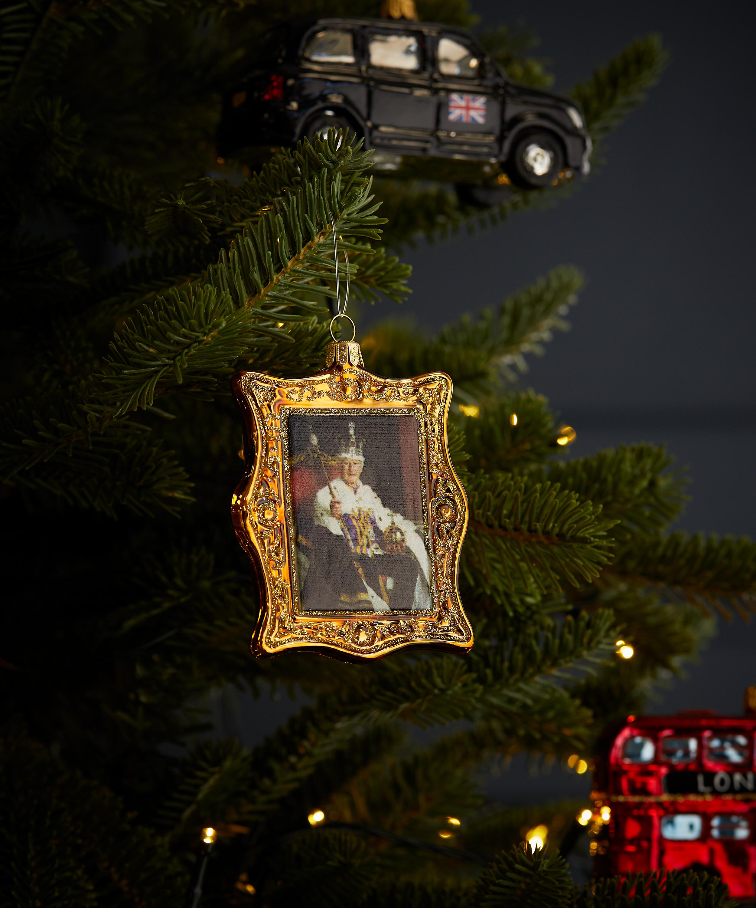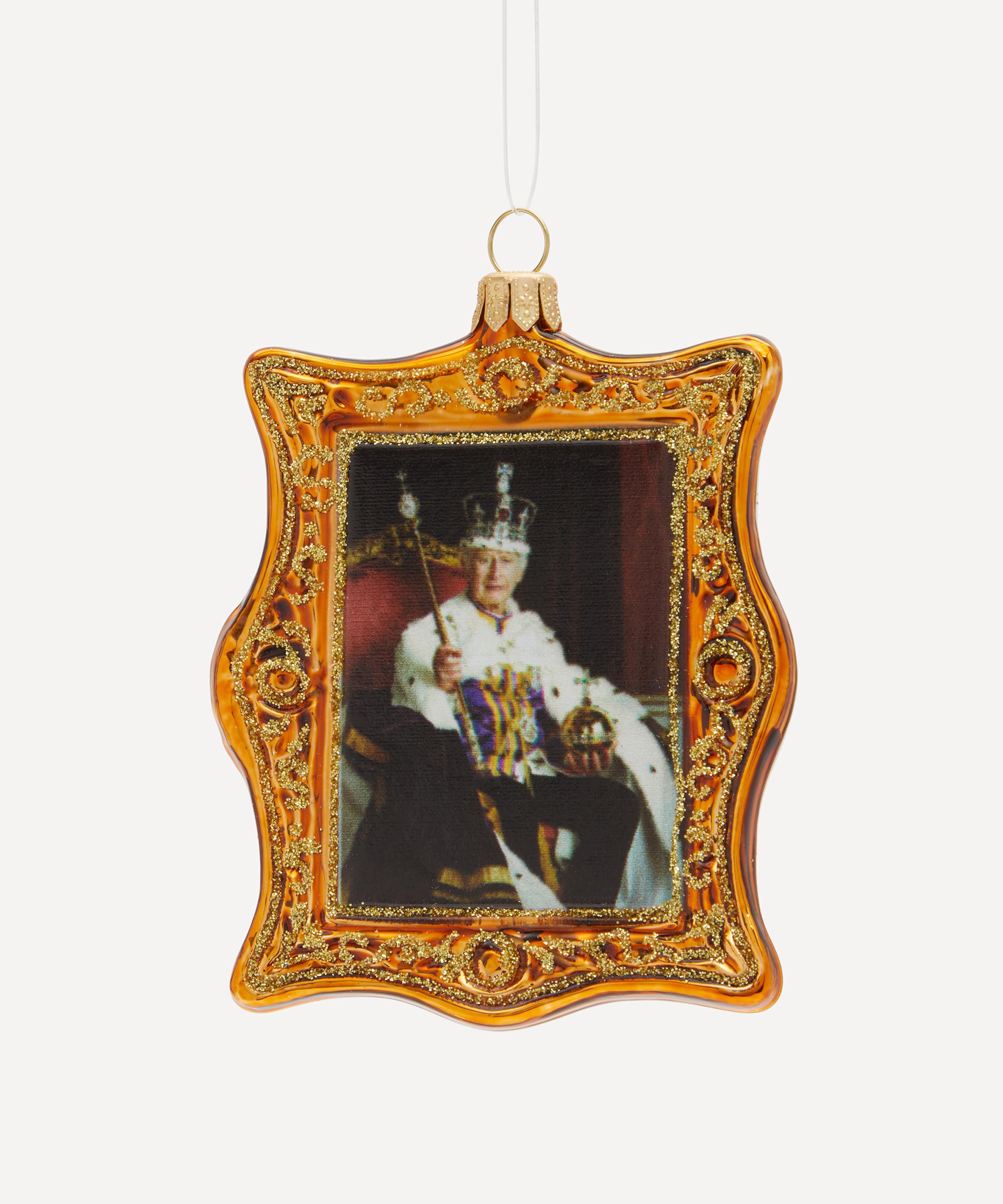 This bauble will inject some fun into your pine or fir this Christmas – the portrait shape is characterised by a printed image of King Charles with gold-tone accents that will sparkle under tree lights. Mix and match with different styles for a playful, modern take on seasonal styling for your space.