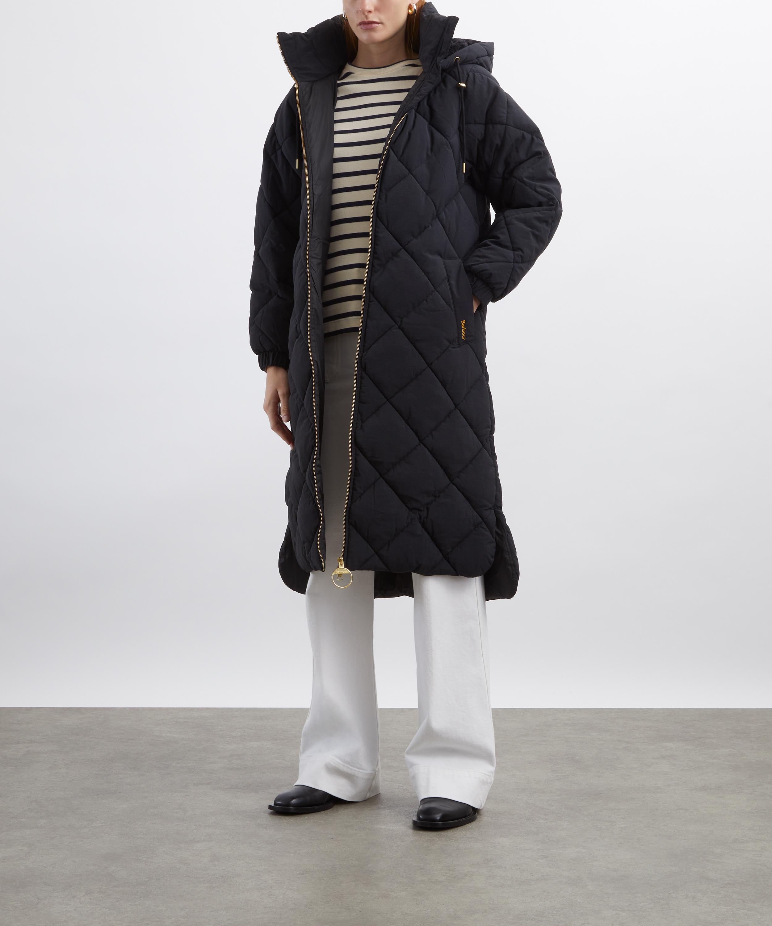 Designed with your comfort firmly in mind, the jacket is crafted from Barbour’s signature diamond-quilted cotton with an extended silhouette, oversized fixed hood, a two-way zip fastening and elasticated cuffs to lock in warmth.