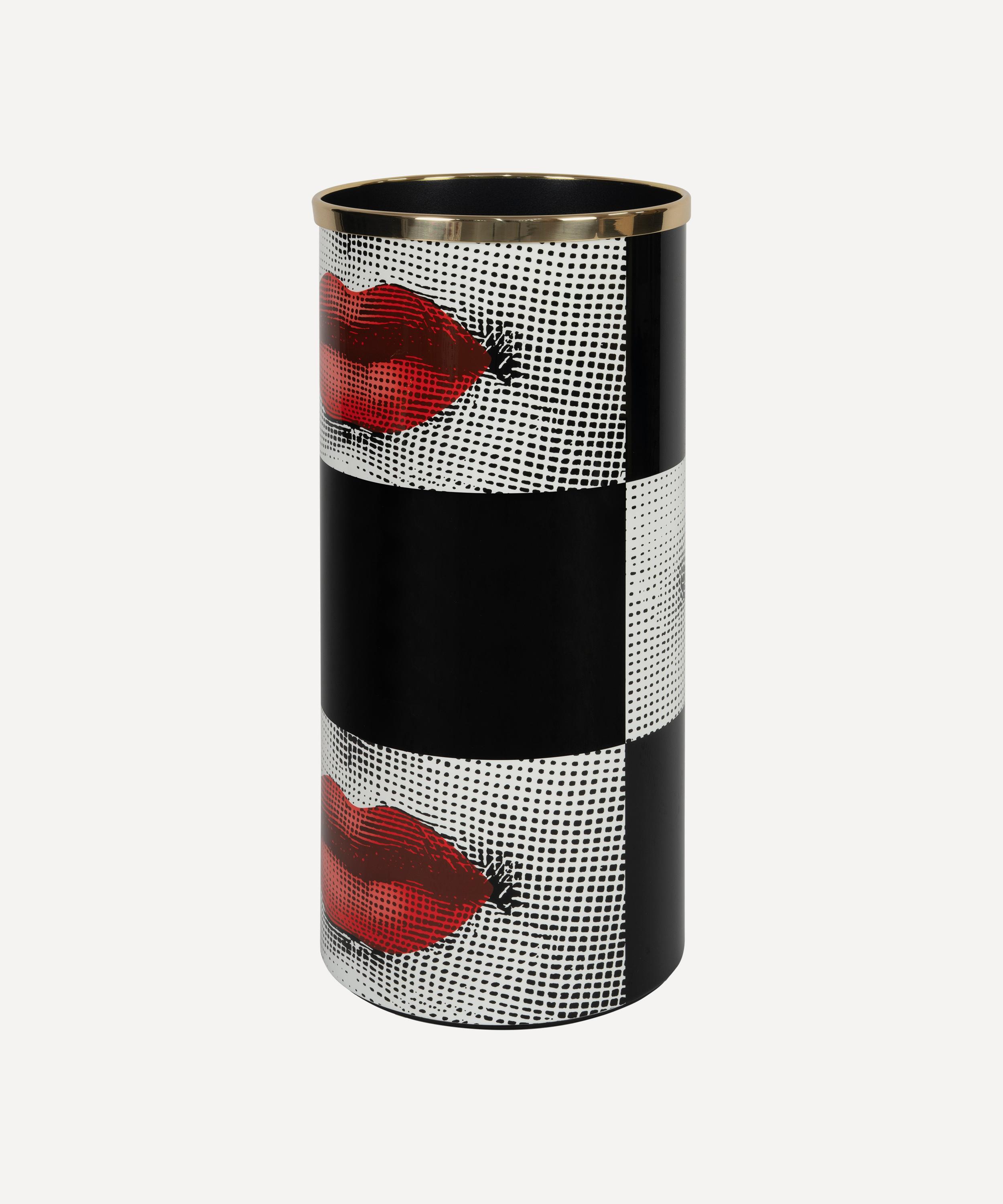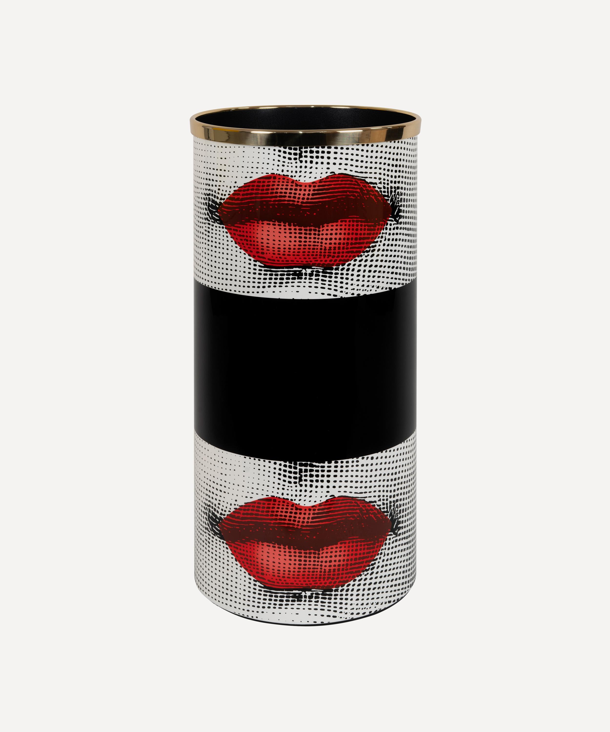 Breathe wit, imagination and ever-present eclectic style into your home with the Kiss umbrella stand from Fornasetti - designed for the daringly creative. Featuring the lips of Fornasetti's muse Lina Cavalieri, it has been expertly hand-silkscreened and lacquered in Italy with a brass top rim and feet, fusing the brand’s design-led surrealism with classic Italian geniality. Put it in the hallway for a grandiloquent interior pop.