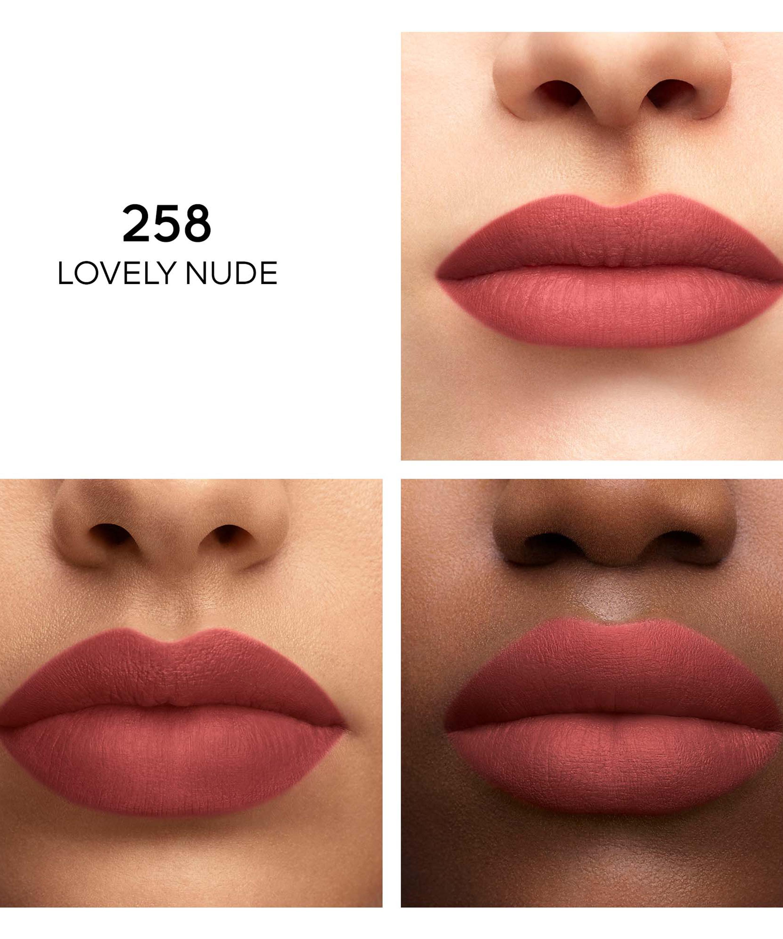 This smooth, creamy formula glides over lips, delivering a conditioning blend of hyaluronic acid, shea butter and rose petal extract to soothe, plump and hydrate - leaving lips with a second-skin non-drying veil of irrisistible, matte colour.