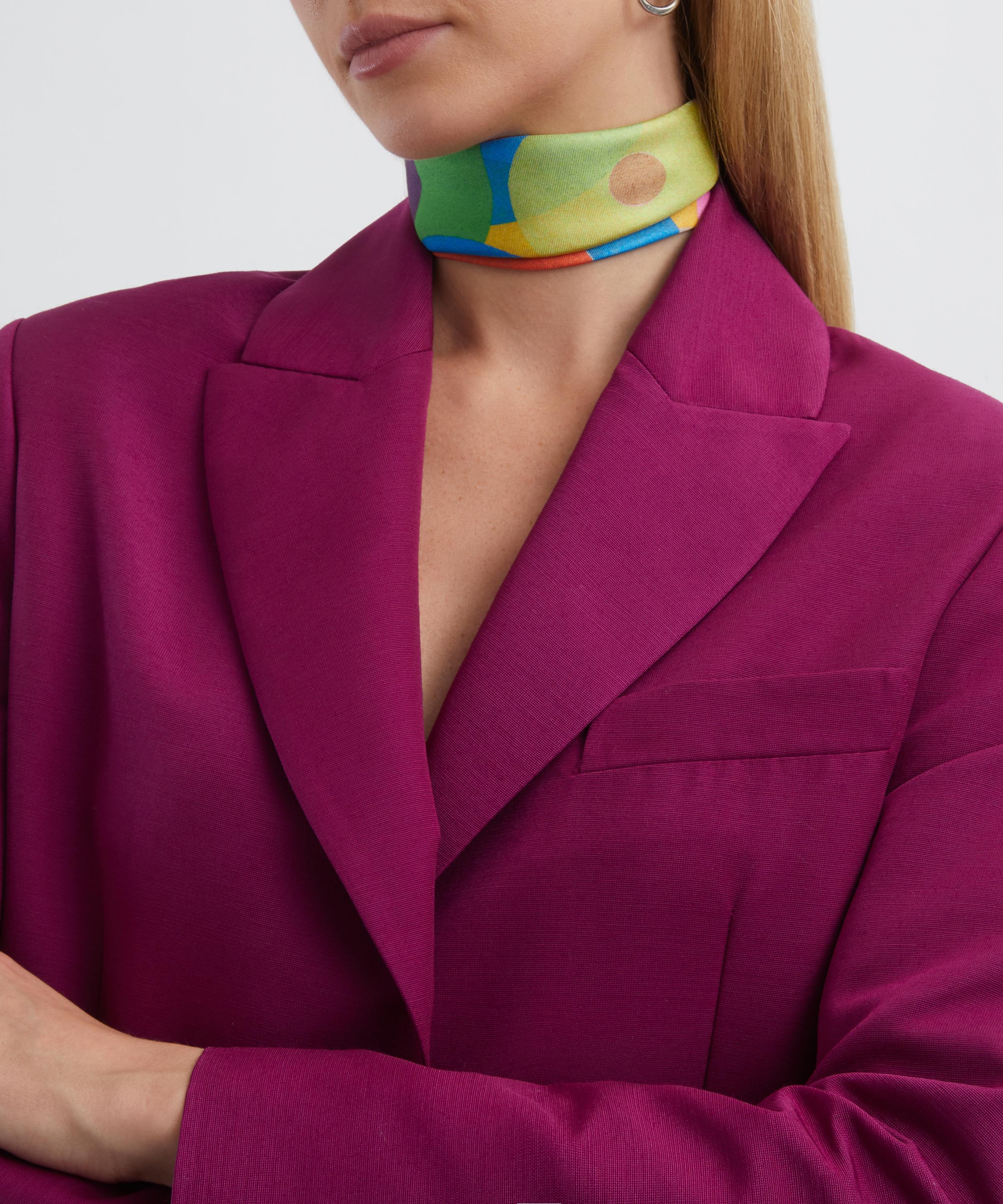 Meticulously crafted in Italy from a luxurious and ultra-soft silk fabric, it’s characterised by our showstopping Discus print – originally developed by experimental Dutch designer Karel Martens for a collaborative SS24 capsule collection, Liberty Fabrics designers transformed his iconic hand-printed monoprints into wearable textiles to honour his wonderfully rich use of colour and graphic composition. Designed to stand the test of time, this versatile accessory staple will breathe new life into your wardrobe with its rich colouration and texture. Try styling it as a traditional neck scarf to lock in warmth, wear it as a chic wrist band for a bold style statement, or use as a creative embellishment to a bag, the possibilities are endless.