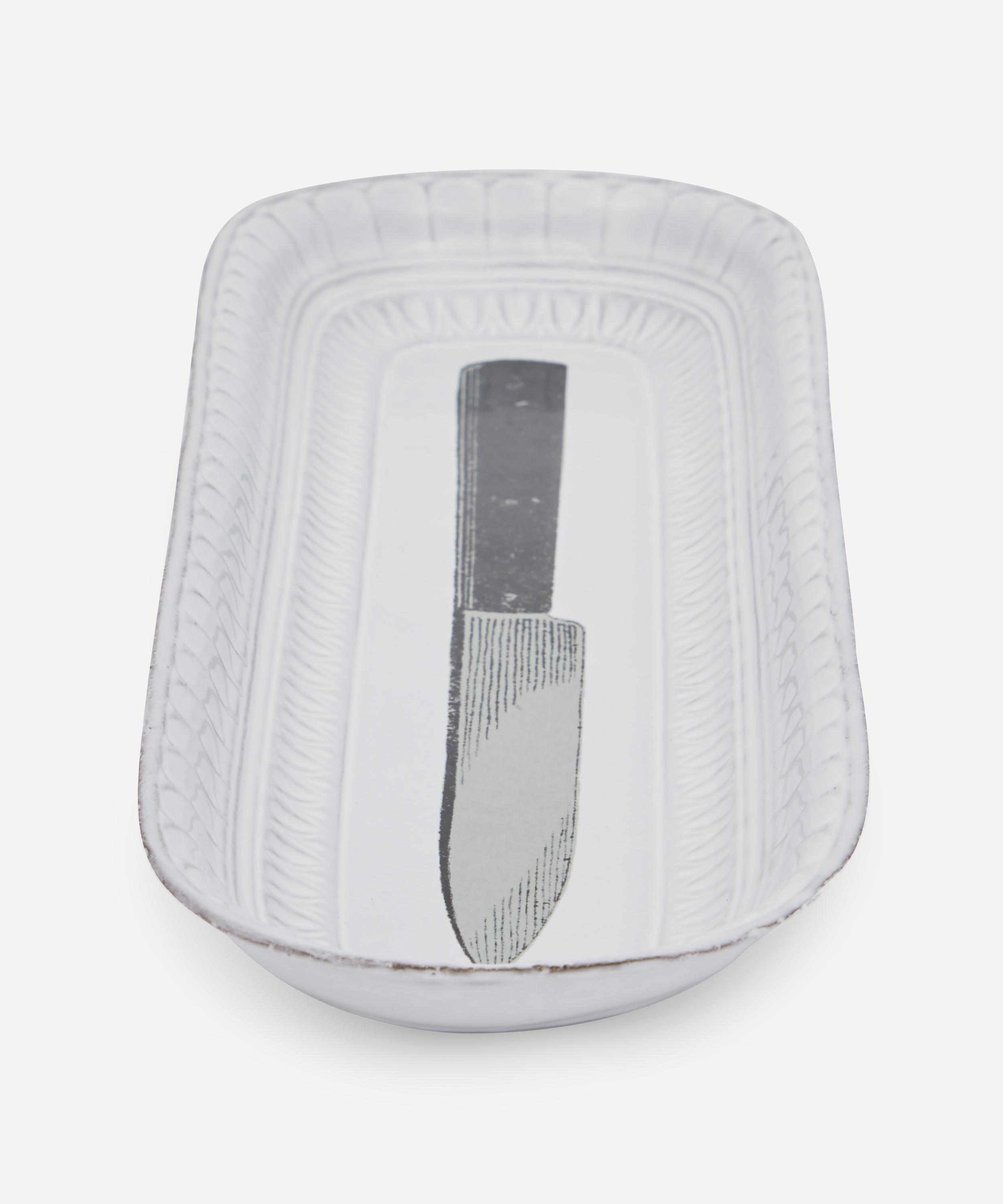 Serve up delicious appetisers on the Knife platter from Astier de Villatte, part of the John Derian collection.