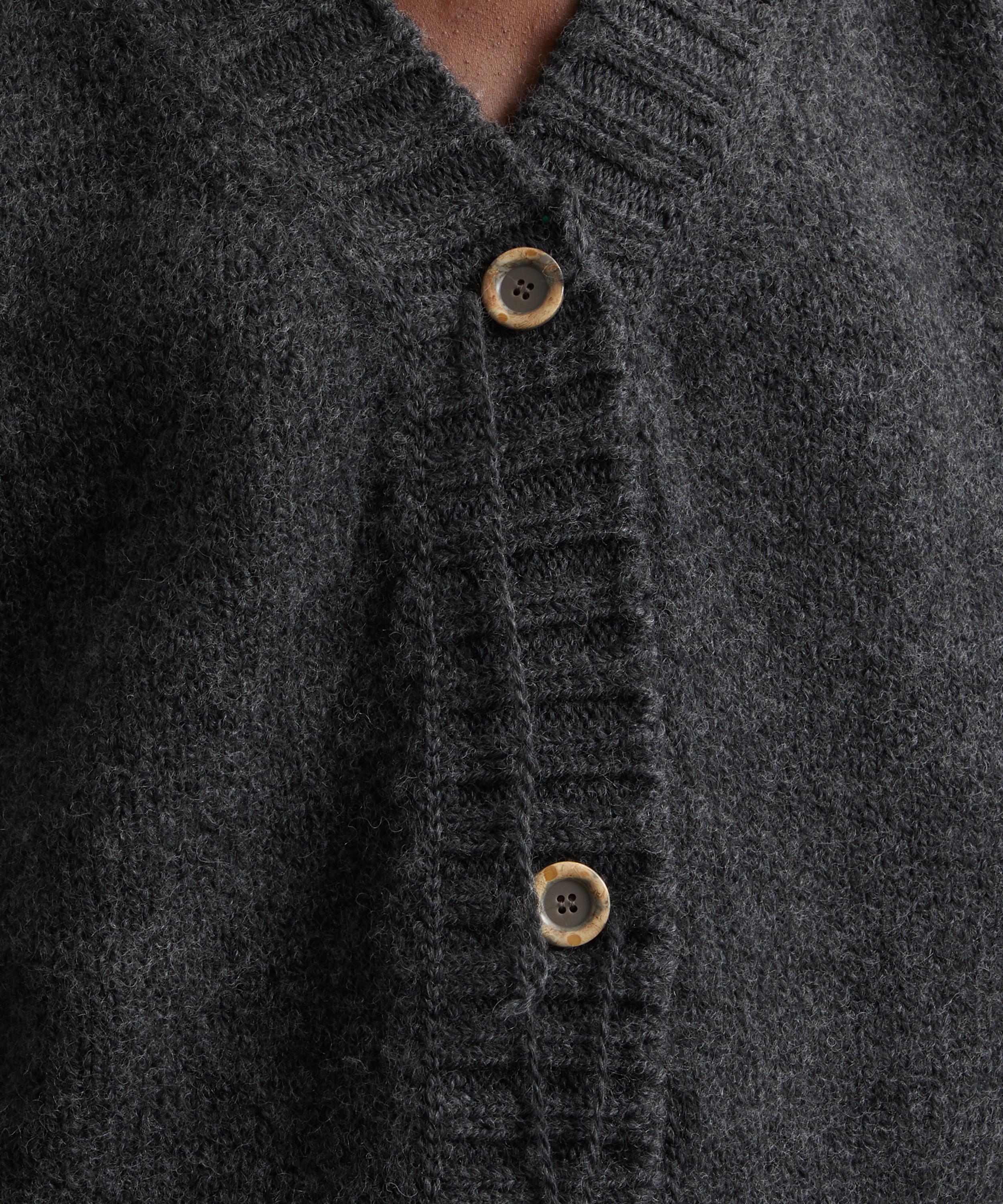 A contemporary take on a classic design, it’s crafted from soft, luxurious wool, cut to a relaxed fit and dropped shoulders. It’s finished with a button closure and loose thread details to the front.