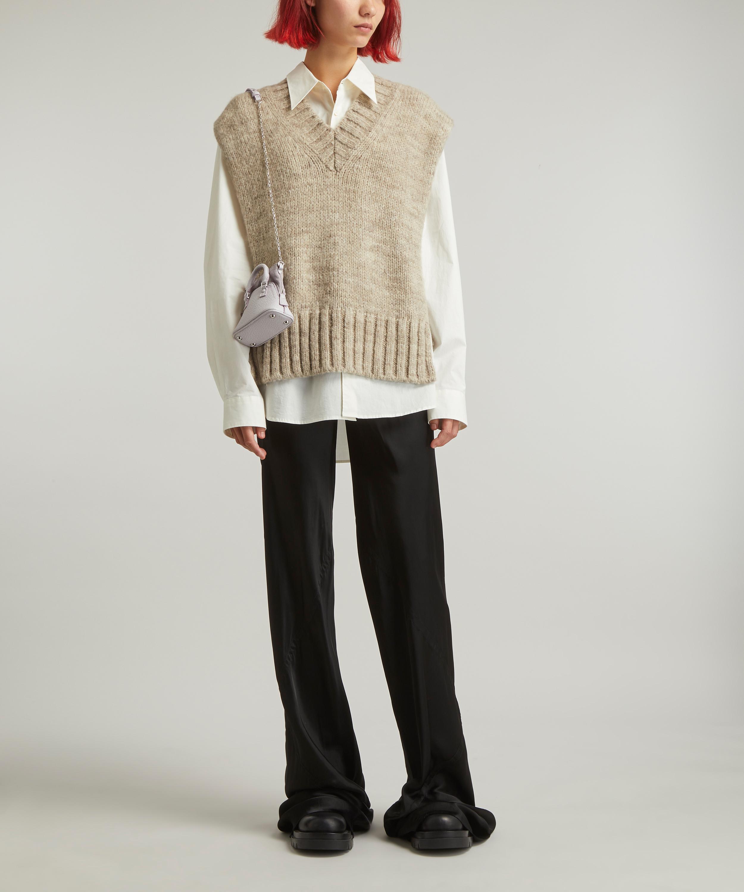 This Knitted V-Neck Tank Top from Maison Margiela demonstrates the avant-garde brand’s experimental approach to an everyday wardrobe essential.