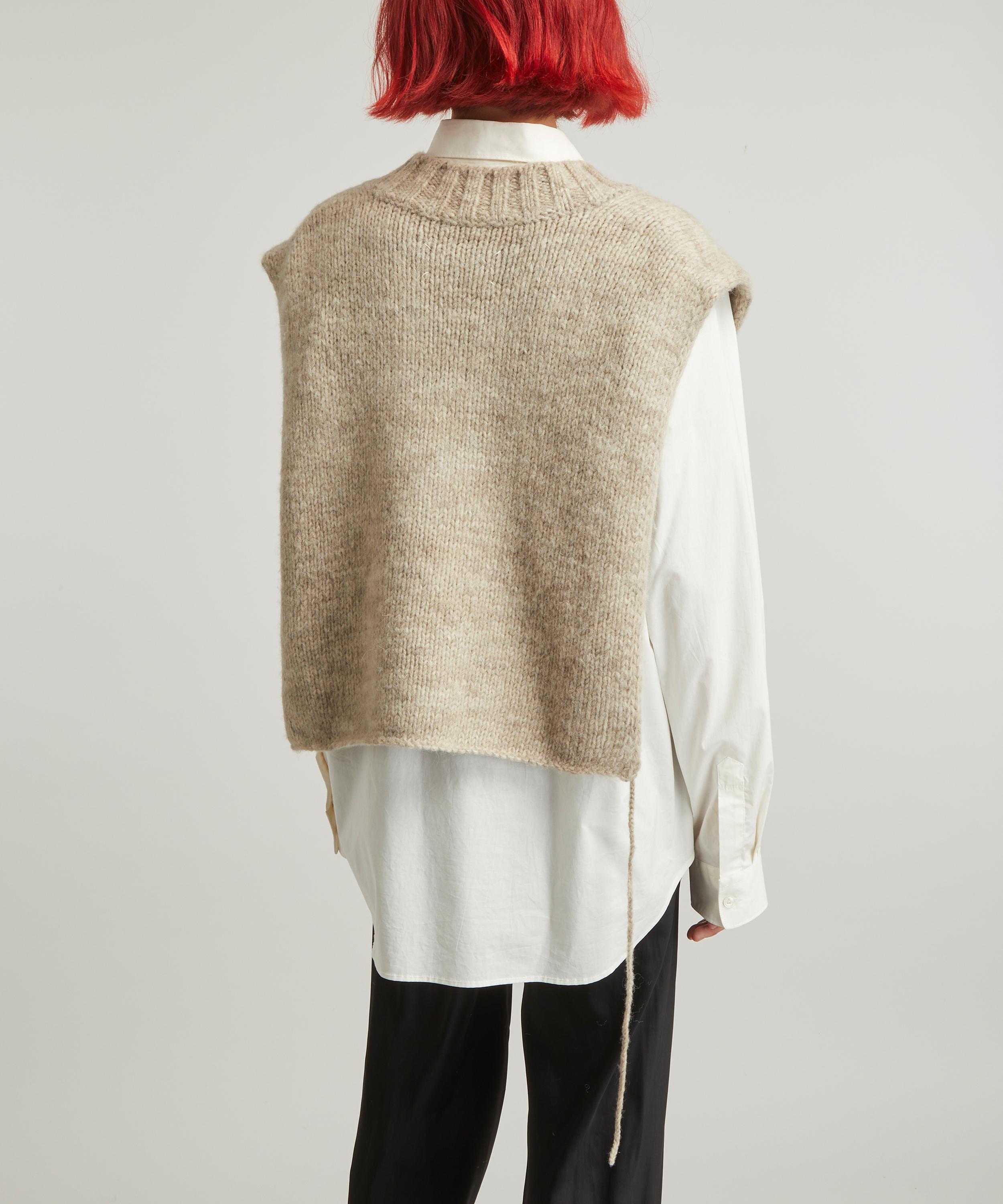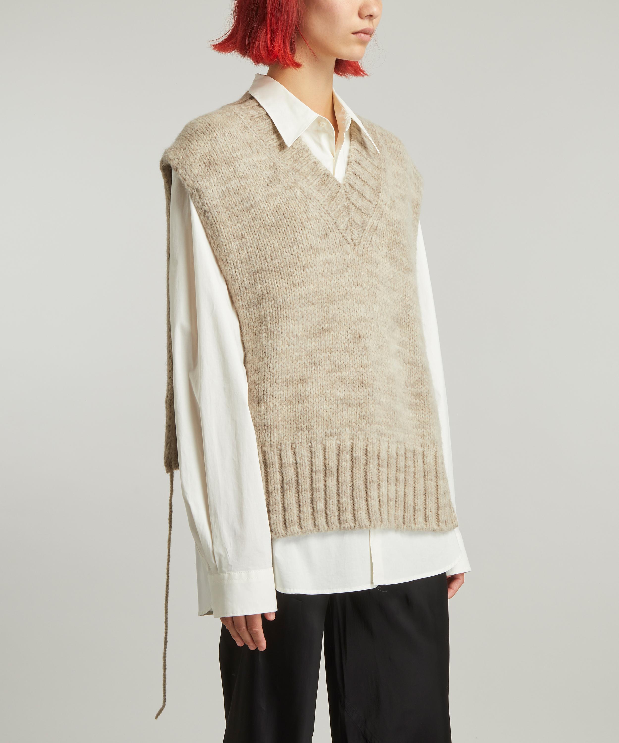 Knitted from a soft alpaca-blend for an oversized fit with open sides and loose thread detailing at the back, its V-neckline and hem are finished with chunky rib-knit trims.