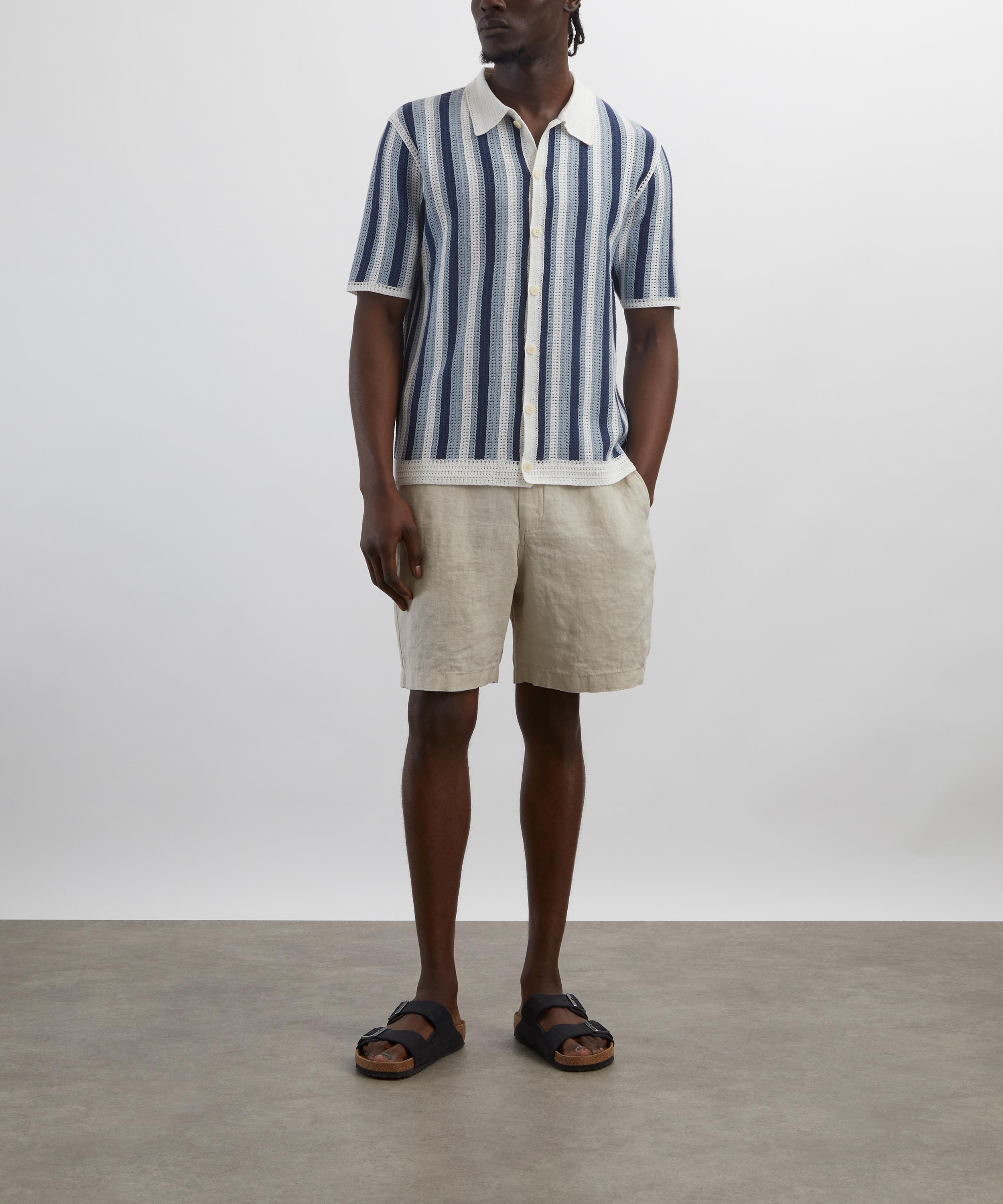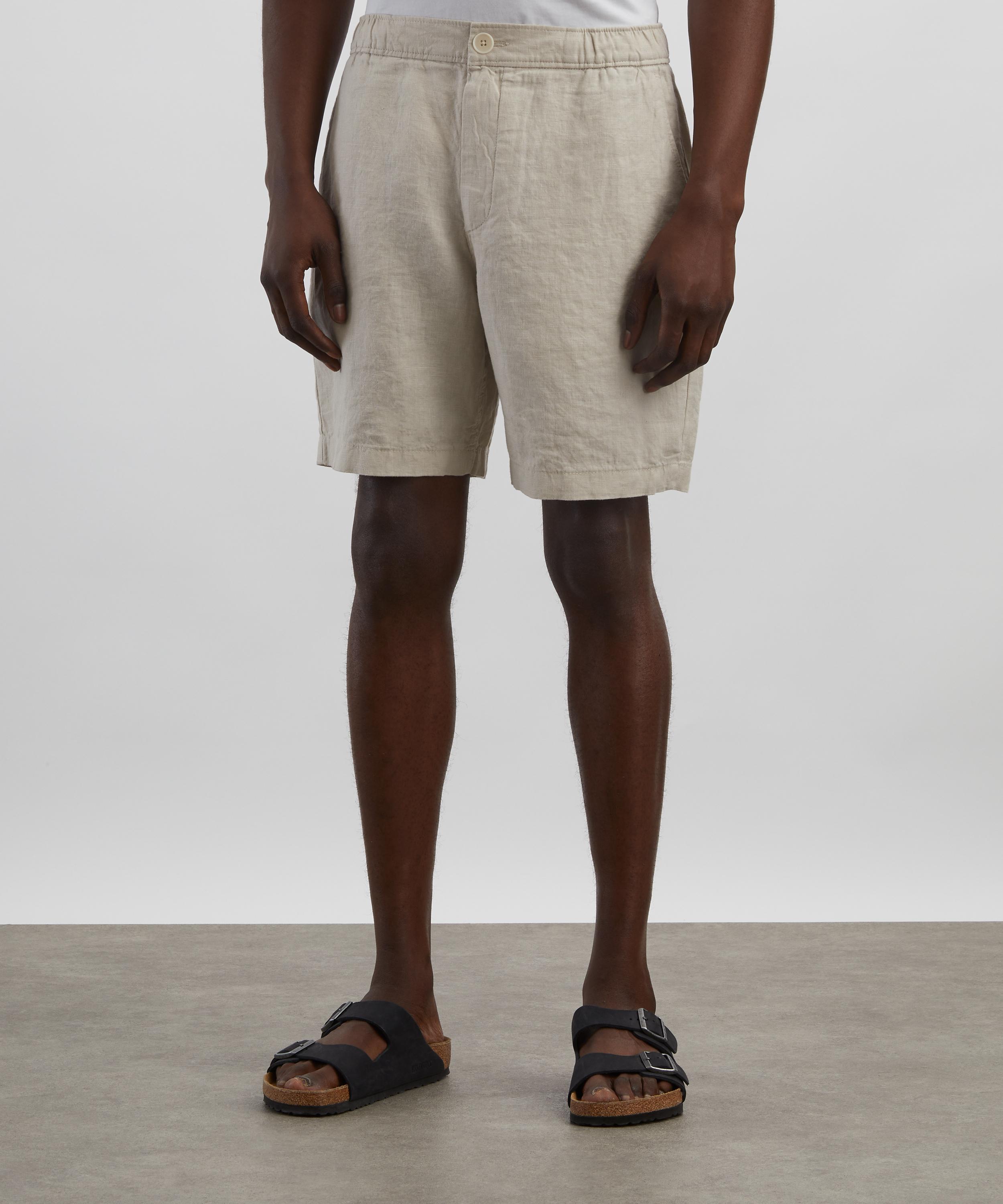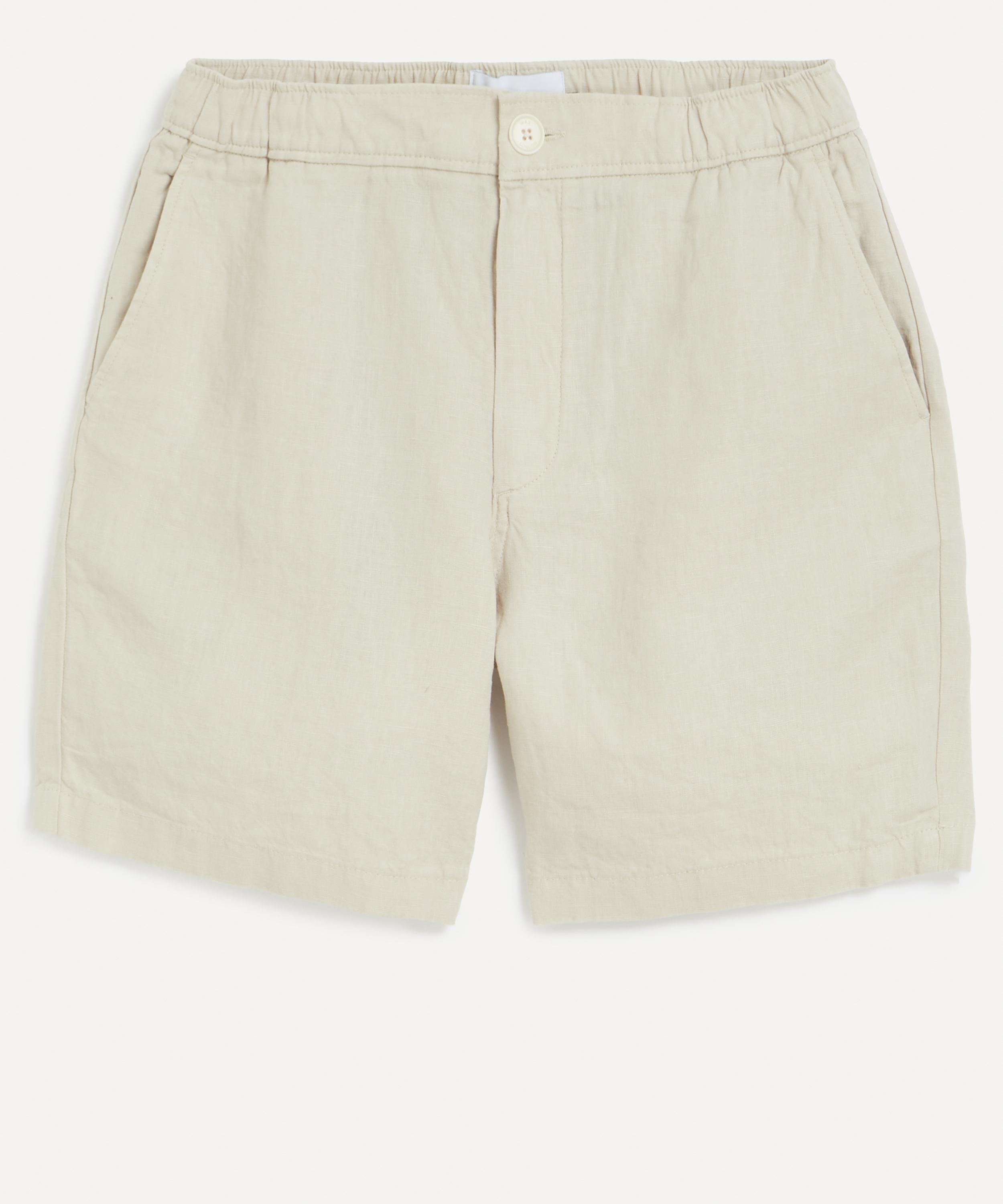 Cut from breathable linen in a washed beige hue, these shorts blend laid-back ease with polished detailing. The relaxed fit is complemented by back patch pockets, and an elasticated waistband for comfort.