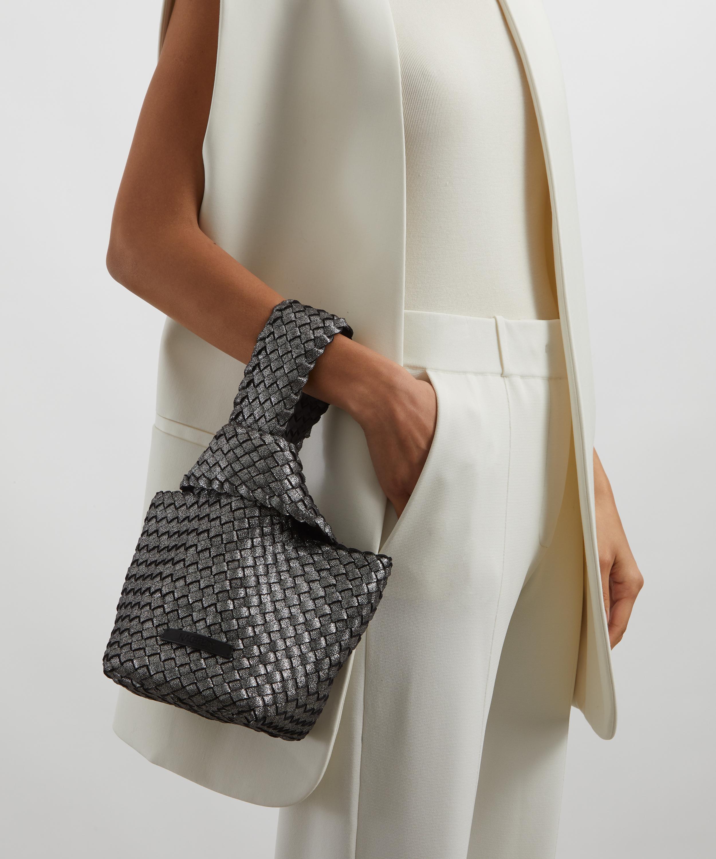 The Kyoto clutch bag boasts an effortless and playful silhouette, hand-woven from durable neoprene fabric by New York-based accessories brand Naghedi.