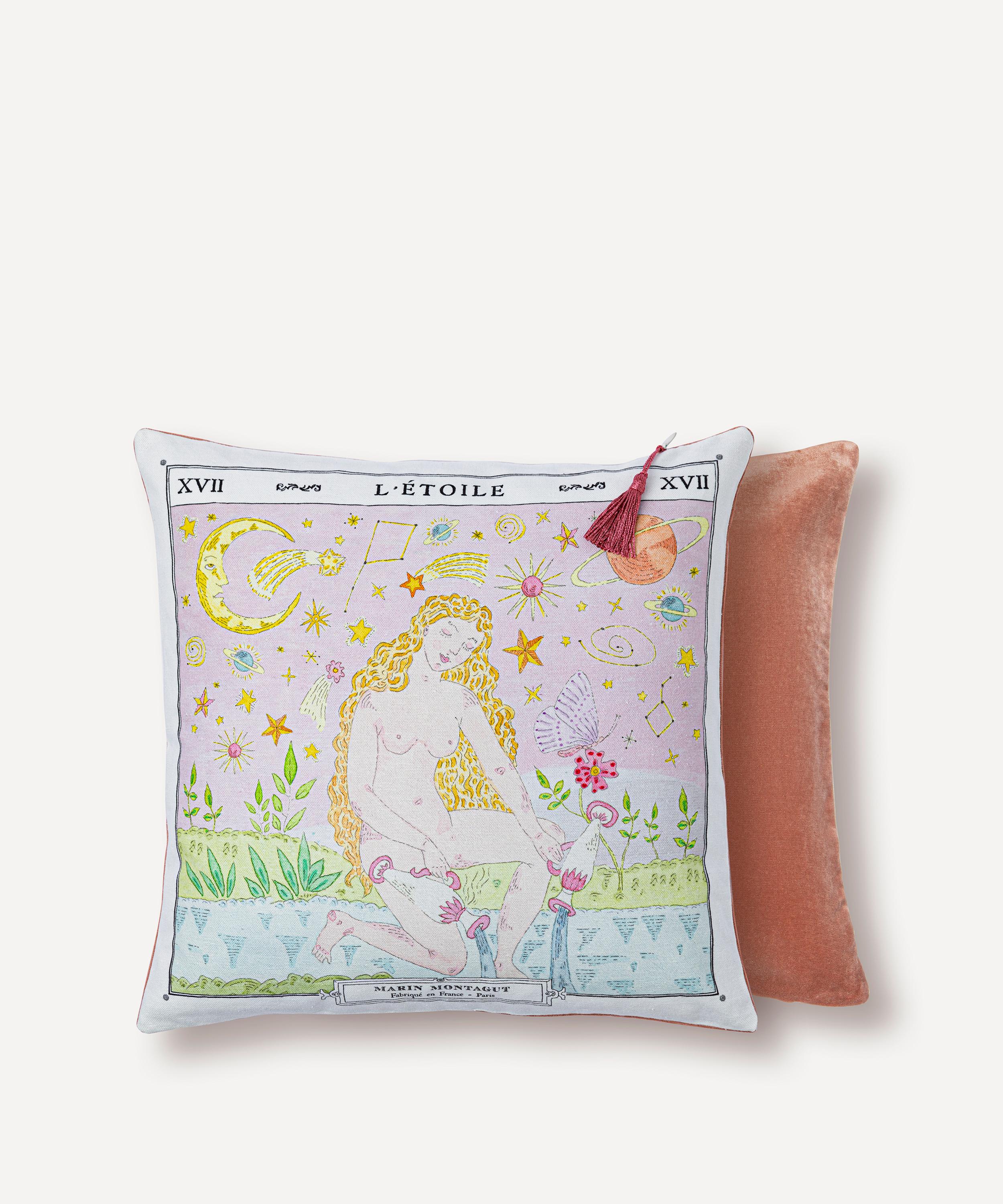 Suffuse your home with Parisian style and a touch of mystique with L'Étoile Cushion Cover from Marin Montagut, a charming interpretation of a card from the designer's tarot deck.