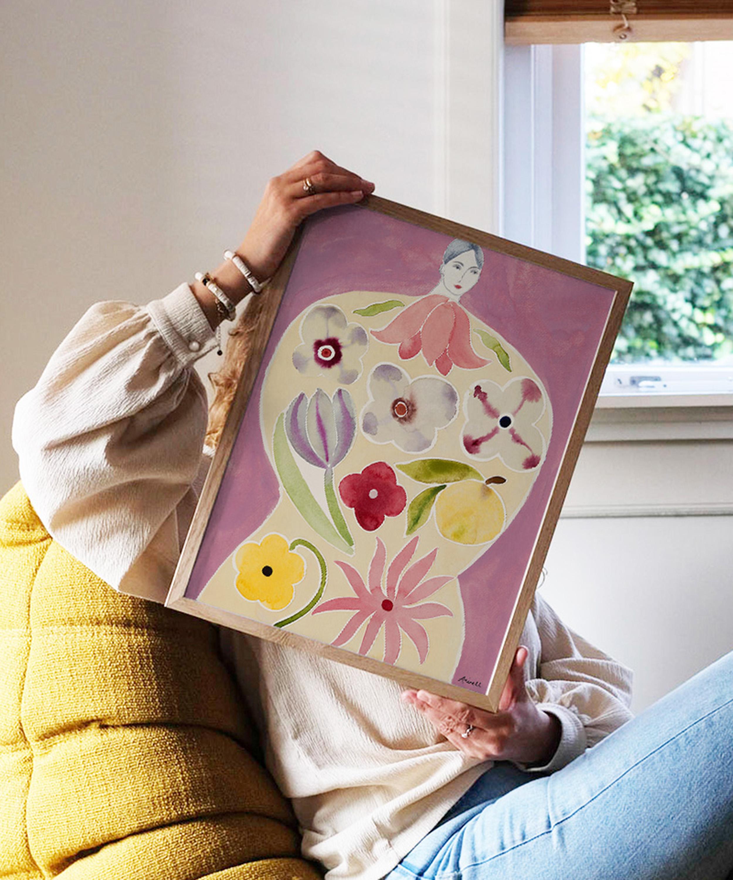 Offering an online emporium of premium posters and art exhibition prints, PSTR Studio seeks to enhance and restore unique vintage works and present unique pieces by brilliant upcoming as well as historically renowned artists. Apple Coat features a striking composition produced through the sophisticated giclée printing process on premium matte paper - ensuring exceptional colour accuracy and stunning, vibrant details. Anine Cecilie Iversen, known as La Poire, is a Copenhagen-based artist and graphic designer. Her vibrant watercolours and bold silhouettes draw inspiration from modern art, nature, and fashion to depict the vulnerability and grace of modern women. Hang it in an office, hallway or incorporate it into a gallery wall to bring delicate magic to your living space.