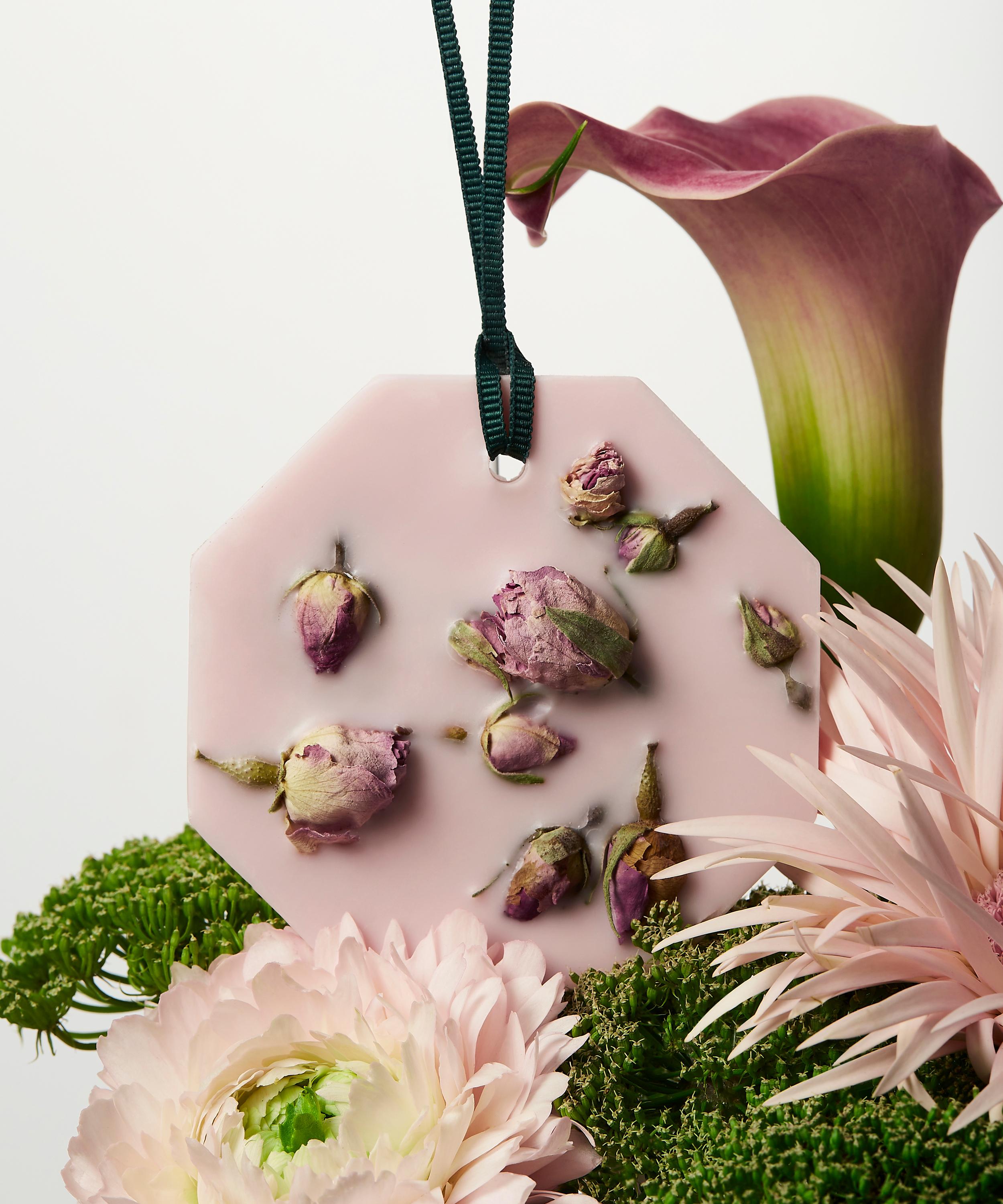 - Infused with pink rose buds