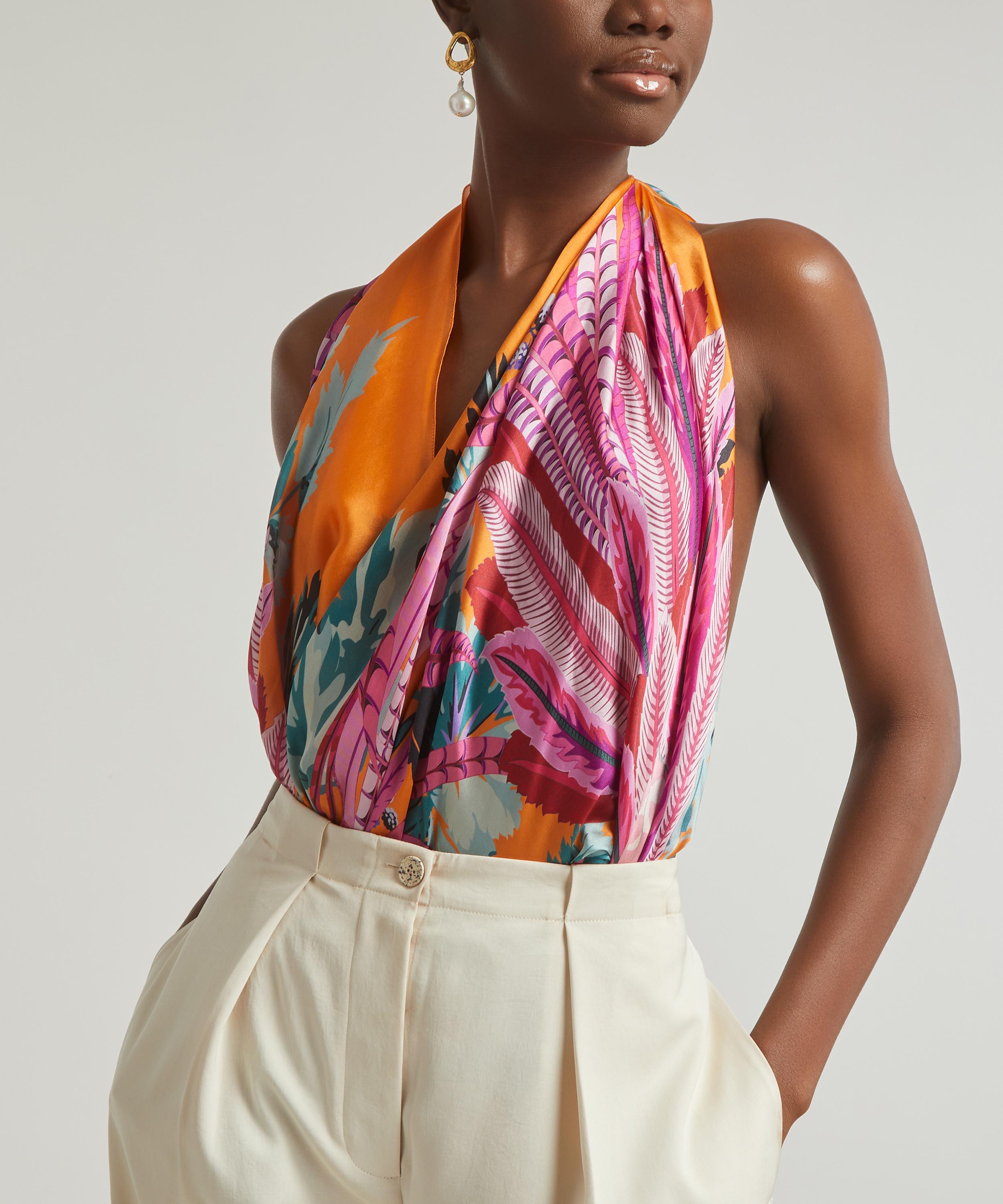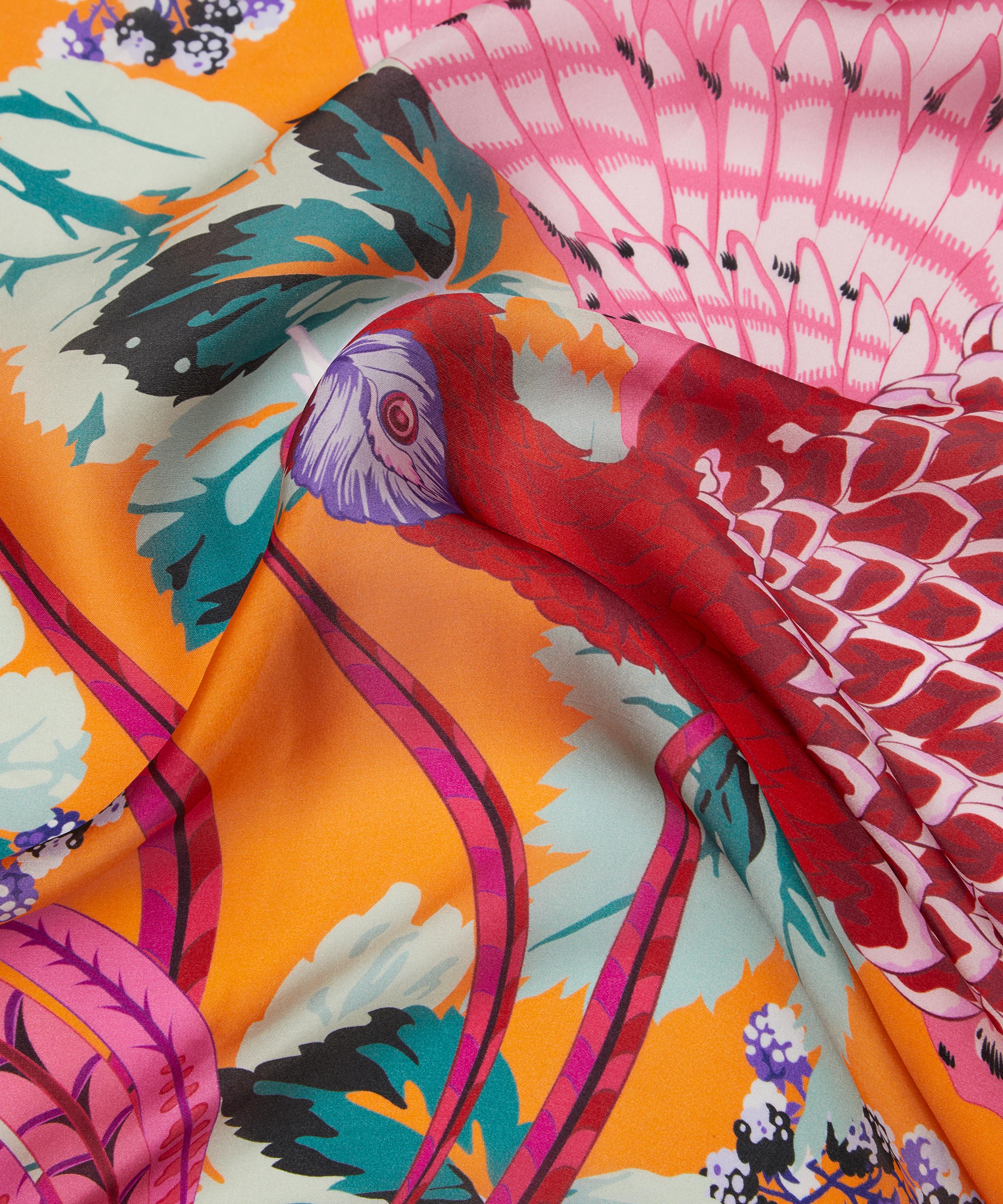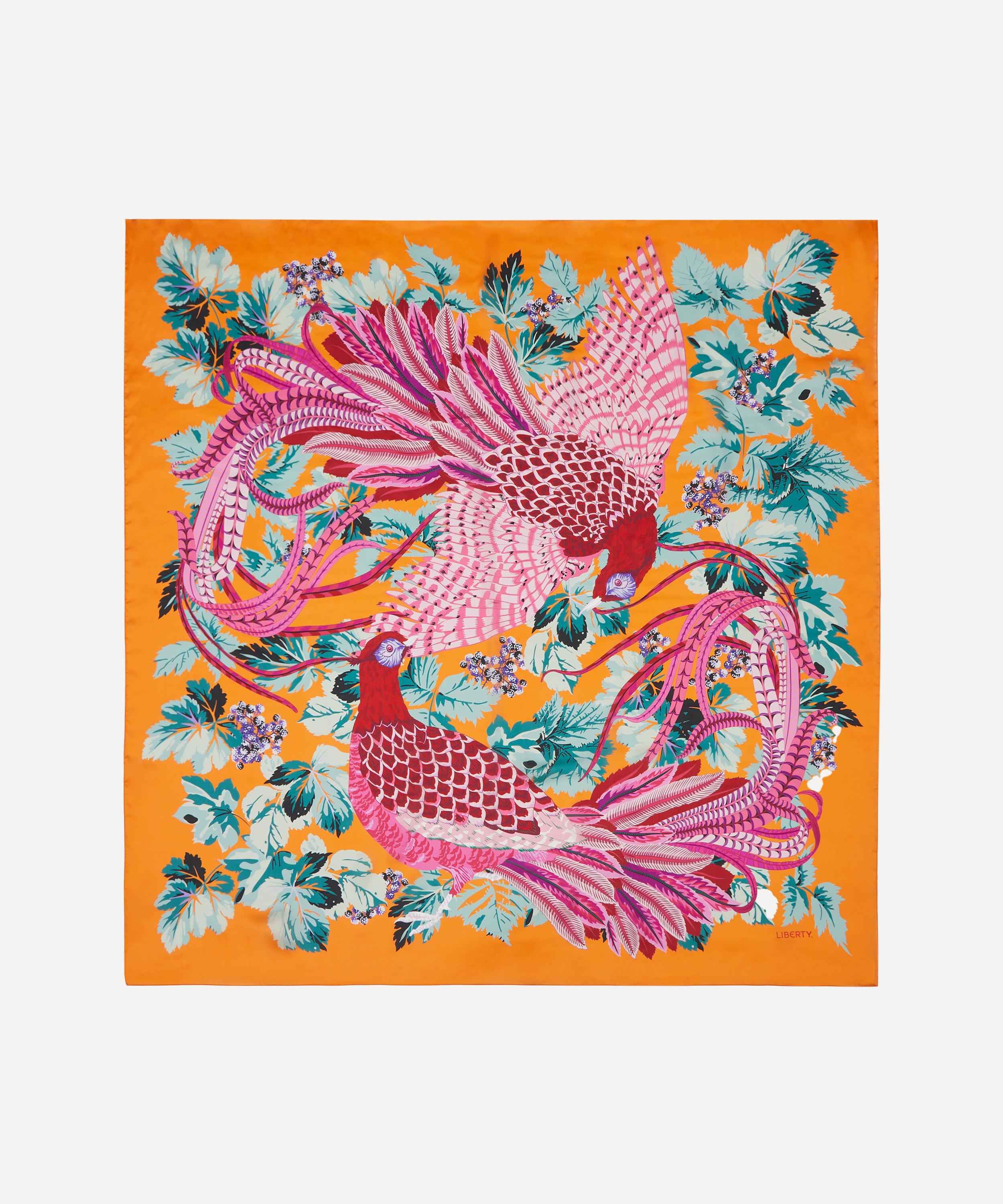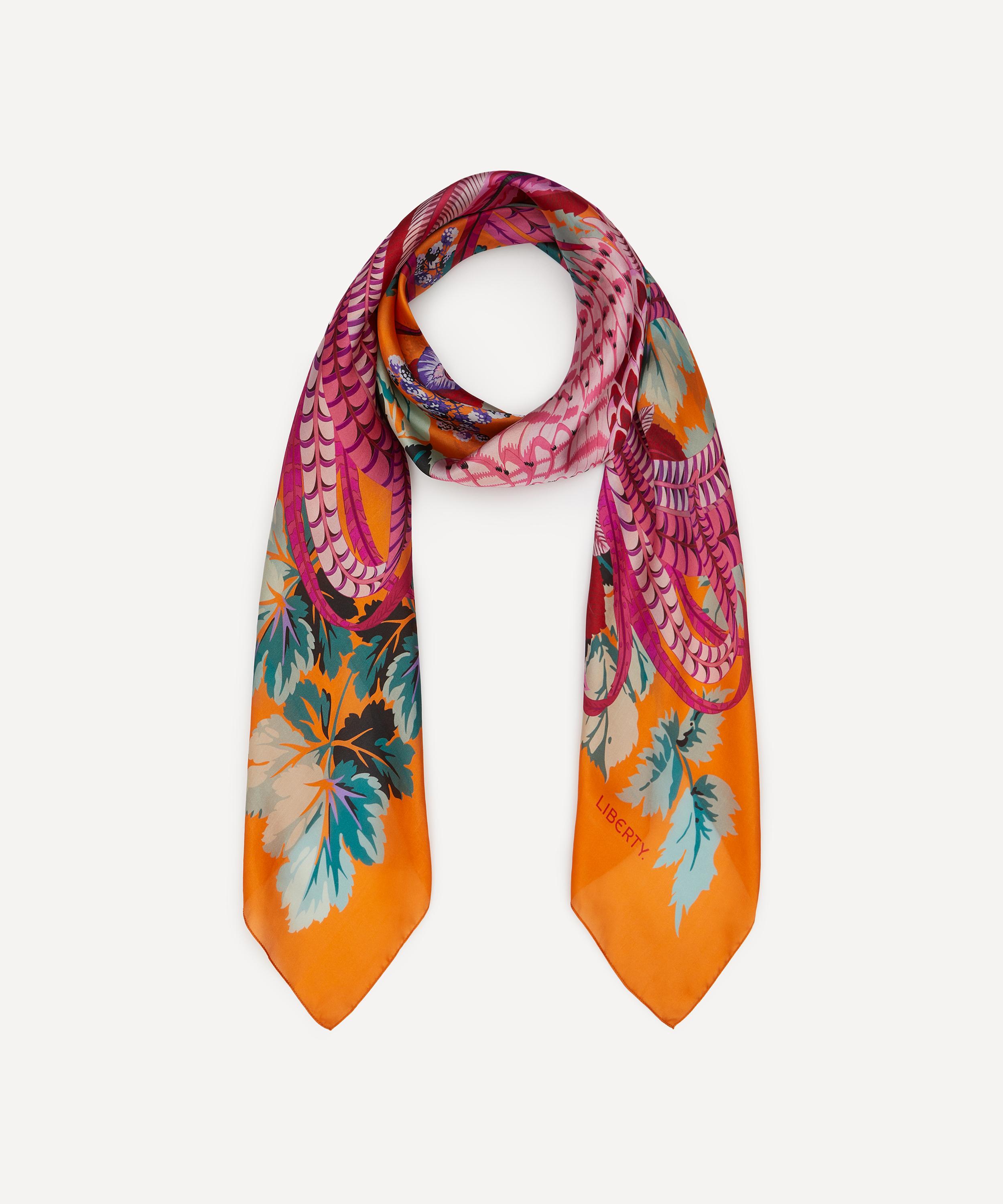 New for this season, this silk molare scarf features our sophisticated Lady Amphora print – drawn from a Liberty impression sheet originally created in 1967, it features a dense arrangement of foliage and berries, accompanied by patterned feather pheasants. Complete with pin hemmed edges, try draping it over neutral outerwear for a burst of contemporary colour, or knot it close to the neck to lock in warmth.