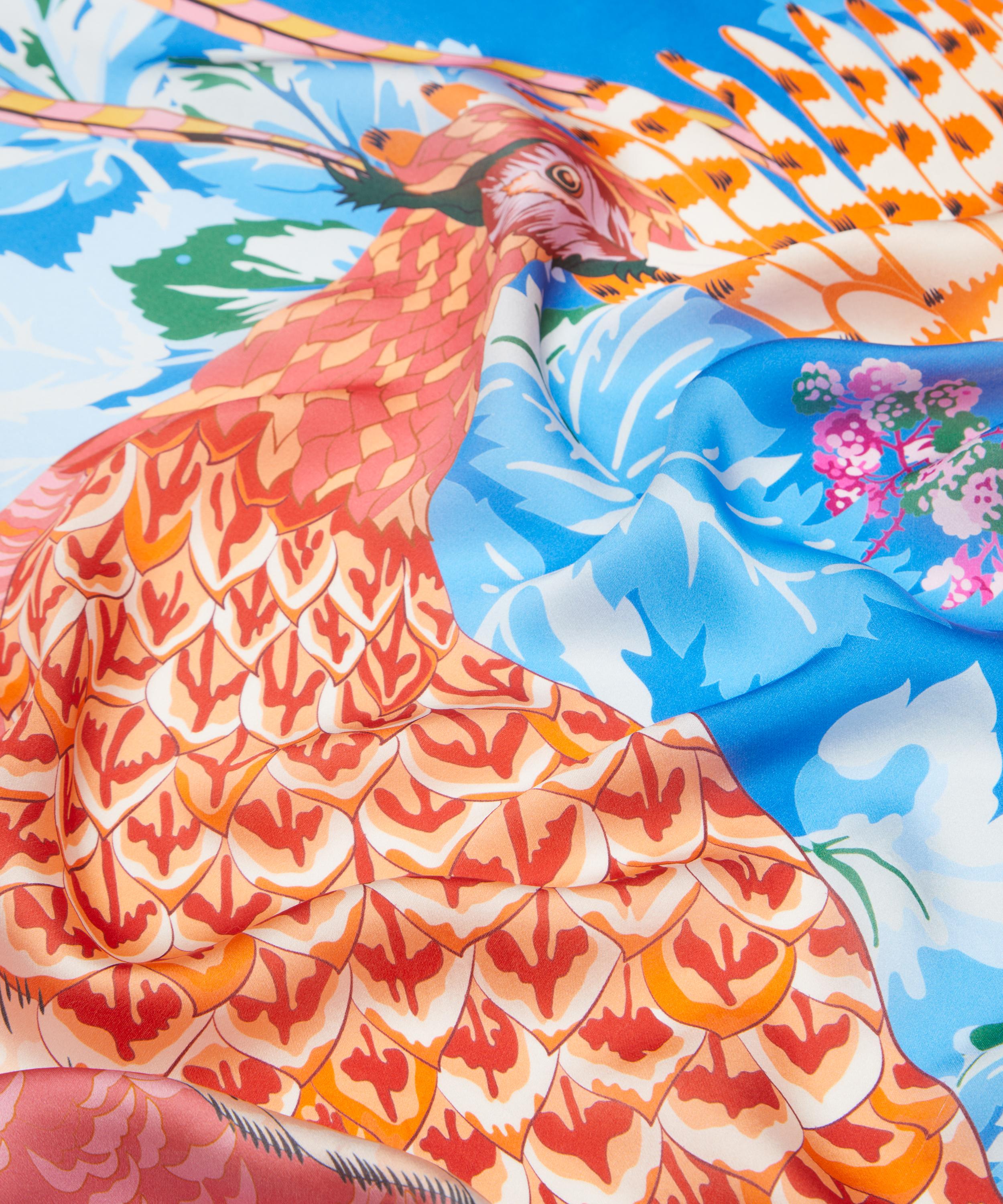 Meticulously crafted in Italy from an innovative and ultra-soft silk fabric with a pin hem finish, it’s characterised by our showstopping Lady Amphora print – boasting a dense arrangement of foliage and berries, accompanied by patterned feather pheasants. Designed to stand the test of time, this versatile, year-round staple offer seamless adaptability, try draping it over neutral outerwear for an elevated finishing touch, experiment with monochromatic looks, or knot it close to the neck to lock in warm, the possibilities are endless.