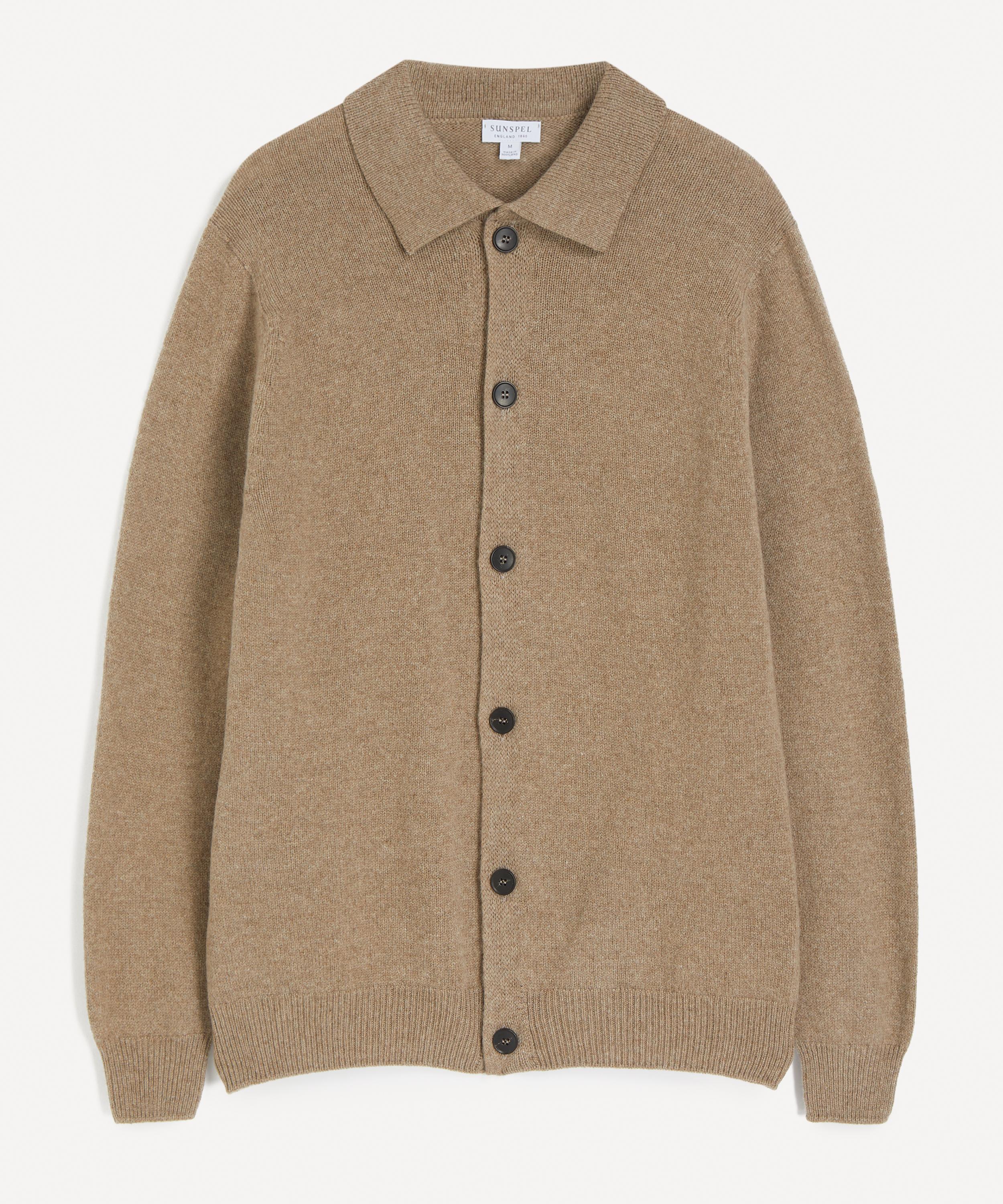Made in Scotland using yarn from one of the world’s oldest spinners based in Fife, this collared cardigan is seamlessly knitted for a clean finish. Cut to a regular fit with button fastening, it blends heritage British craftsmanship with everyday comfort.