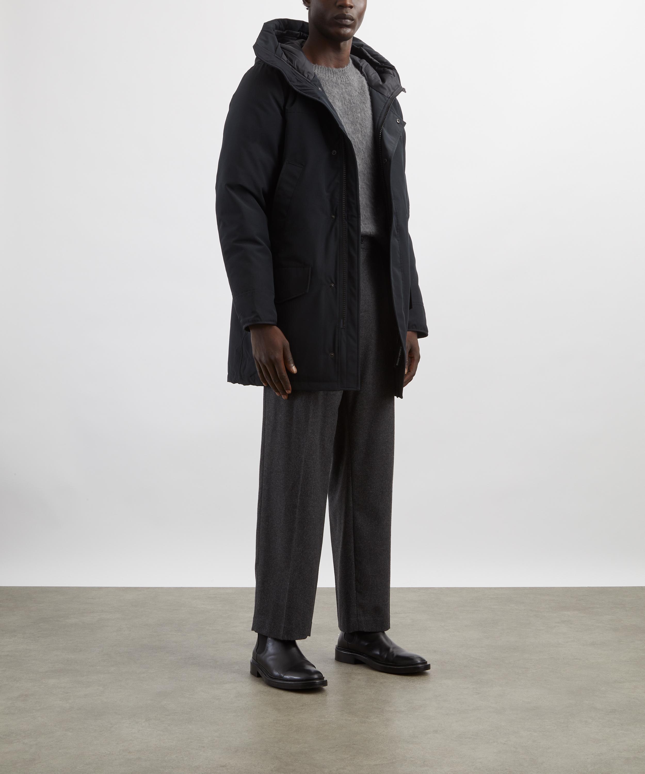 A clean and contemporary take on the enduring parka silhouette, it’s meticulously crafted from Arctic Tech® – a fabric that will develop a natural patina over time and carefully chosen to provide optimal cold-weather protection from nature’s most extreme conditions. It’s shaped to a longer length and features a down-filled adjustable hood, multiple pockets for practicality and internal backpack straps for easy carrying.