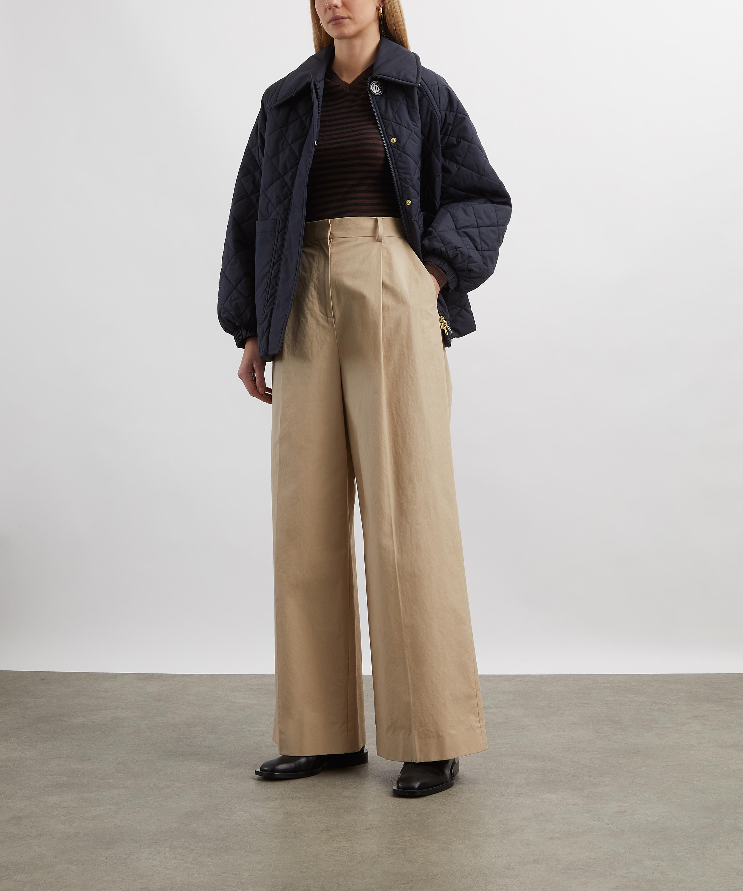 The Laoise Quilted Jacket updates a classic bomber silhouette with 2-inch box quilting and a relaxed fit. Oversized gathered sleeves with elastic cuffs, a centre-back hem detail, and a concealed stud fastening with a signature 50L button add both style and practicality, while unquilted patch pockets provide a modern finishing touch.