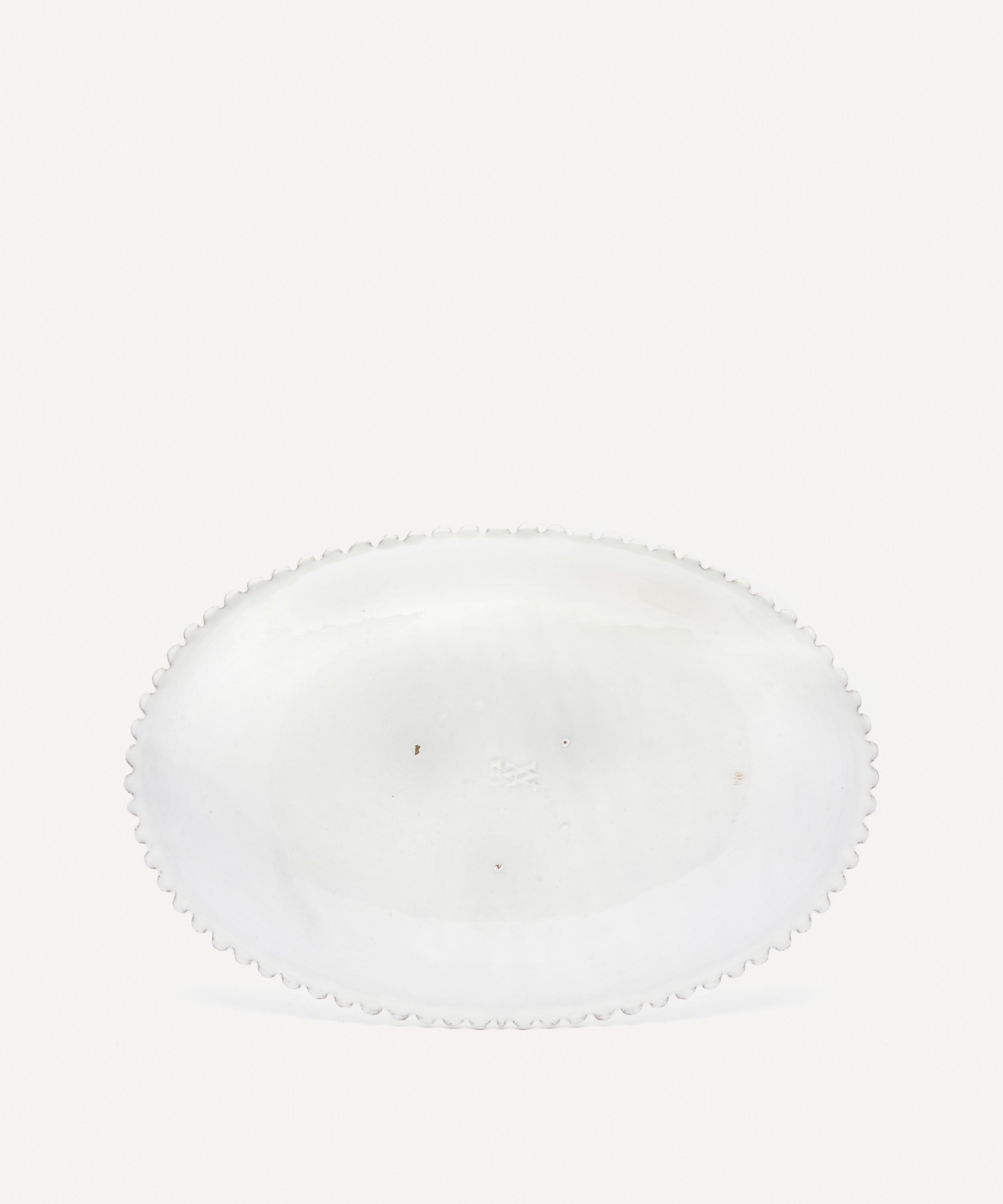 Votary of pre-industrial fabrication, Astier de Villatte is celebrated for being the one and only studio in Paris to hold and harbour the traditions of artisanal ceramic production. Restoring the ancestral systems of moulding and stamping, the Adélaïde platter is made using handcrafting techniques from the Middle Ages which involve moulding a handmade sheet of clay, double firing the ‘biscuit’ piece and glazing the product in white enamel – a lengthy process that involves a drying time of up to one month. Characterised by a knobbly rim and a high-gloss finish, the platter is engraved with the brand’s signature crest - depicting an interlacing A & V - alongside the initials of one of the 40 master artisans who created it. Each handmade piece tells a beautiful story, it romances and imparts a sense of nostalgia into its owner. Arrange with other glazed bowls and plates in the collection to breathe an air of authenticity into your dining collection.