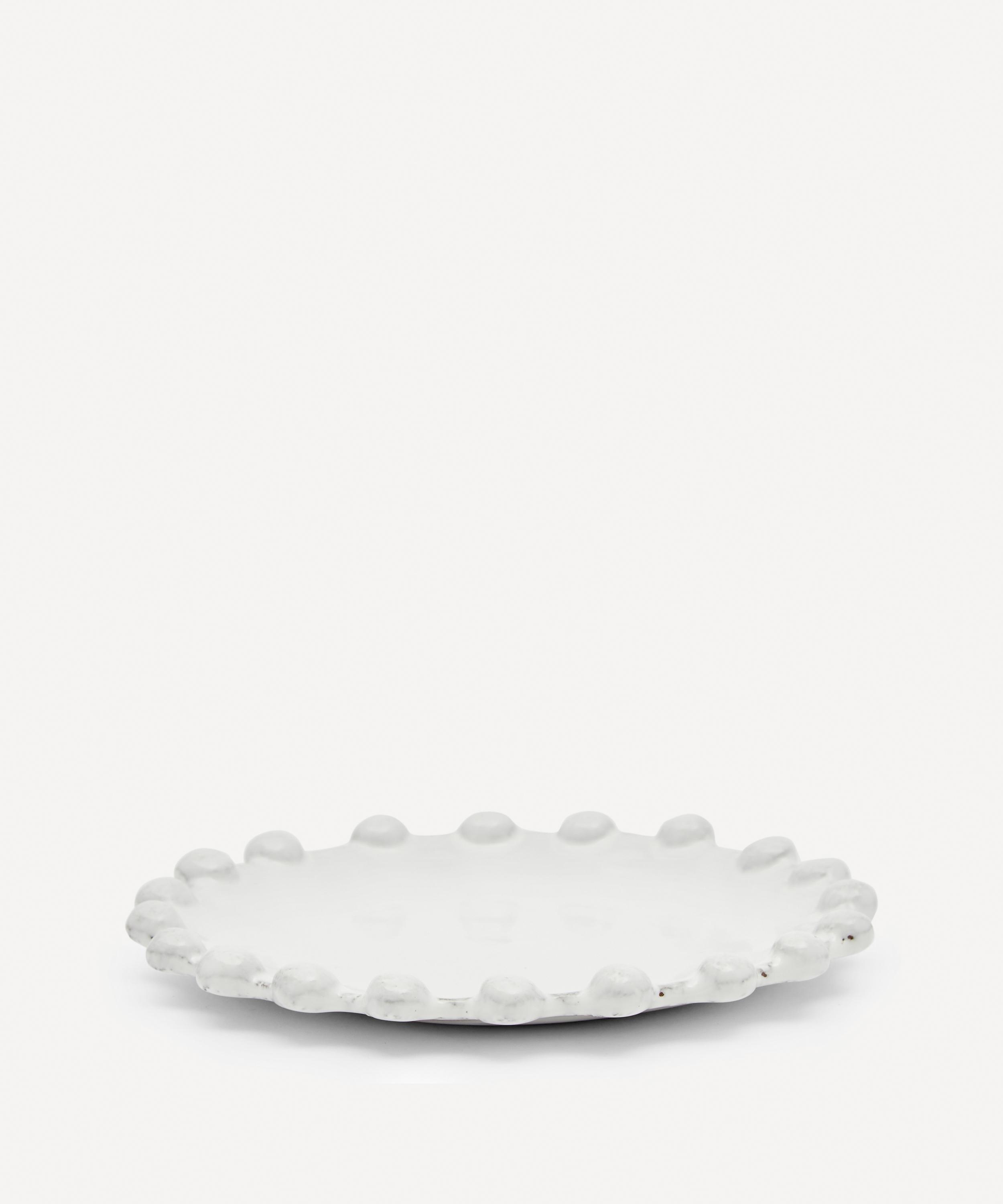 Votary of pre-industrial fabrication, Astier de Villatte is celebrated for being the one and only studio in Paris to hold and harbour the traditions of artisanal ceramic production. Restoring the ancestral systems of moulding and stamping, the Adélaïde saucer is made using techniques from the Middle Ages which involve moulding a sheet of handmade clay, double firing the ‘biscuit’ piece and glazing the product in white enamel – a lengthy process that requires a drying time of up to one month. Characterised by exposed clay and large spheres, the Adélaïde saucer is engraved with the brand’s signature crest - depicting an interlacing A & V - alongside the initials of one of the 40 master artisans who created it. Each handmade piece tells a beautiful story, it romances and imparts a sense of nostalgia into its owner. Pair with other pieces from the scallop-inspired range for a considered design aesthetic.