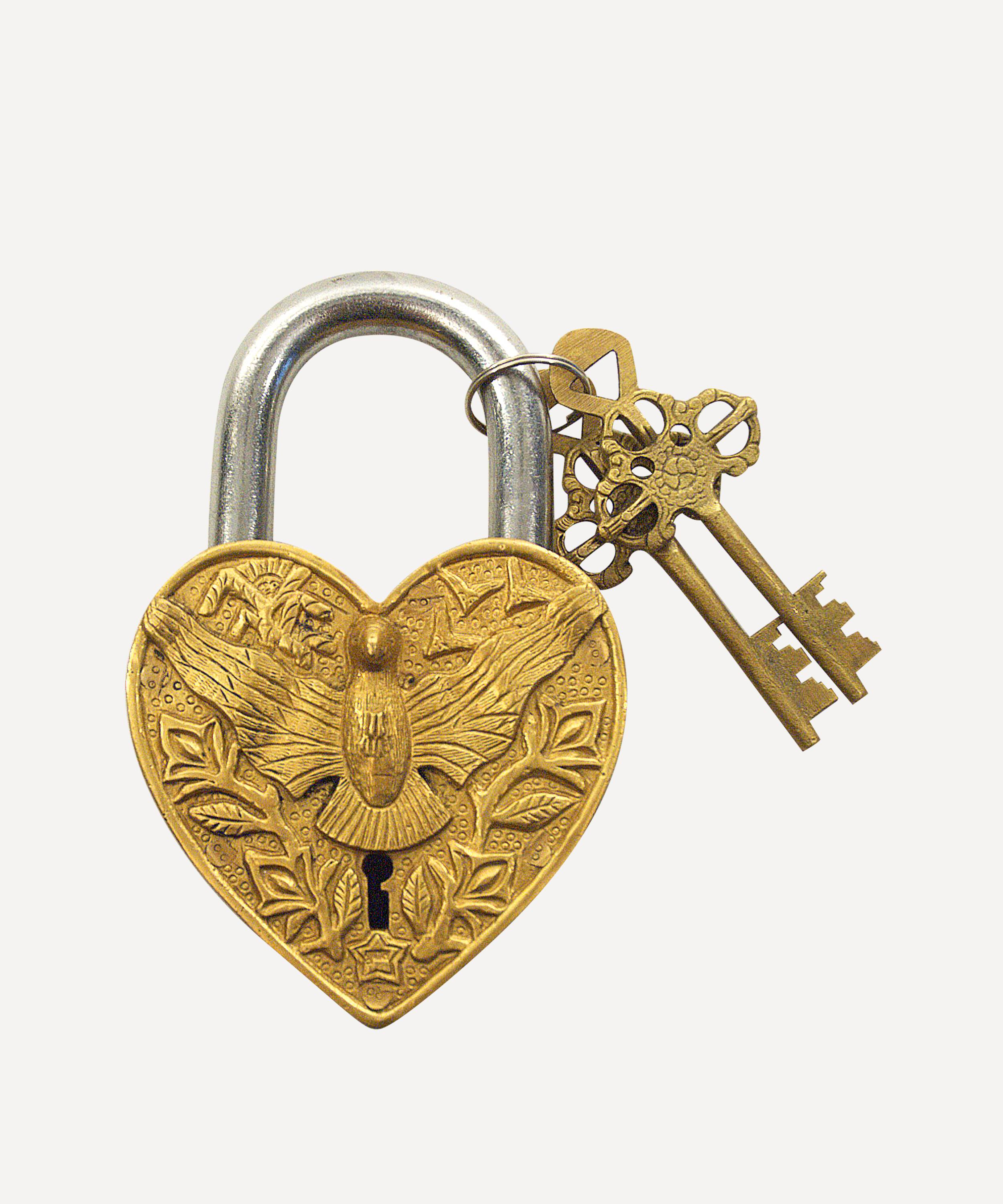 Meticulously crafted from durable patinated iron, this padlock features a wonderfully idiosyncratic, intricate design. Including two working keys, gift to a loved one as a thoughtful symbol your enduring bond.