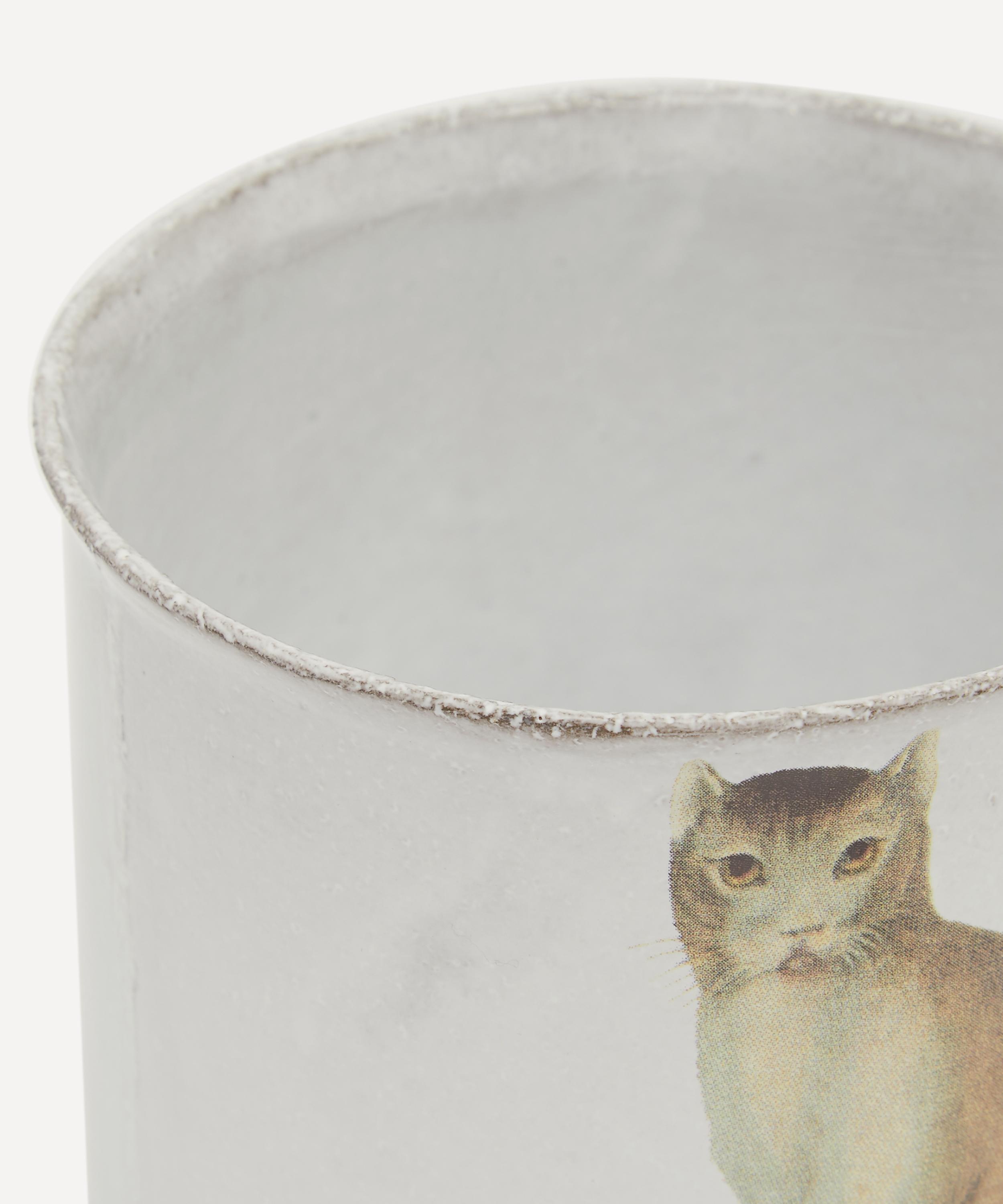 Votary of pre-industrial fabrication, Astier de Villatte is celebrated for being the one and only studio in Paris to hold and harbour the traditions of artisanal ceramic production. Restoring the ancestral systems of moulding and stamping, the large cat mug is made using handcrafting techniques from the Middle Ages which involve moulding a handmade sheet of clay, double firing the ‘biscuit’ piece and glazing the product in white enamel – a lengthy process that involves a drying time of up to one month. Characterised by John Derian's cat découpage, the large ceramic mug is engraved with the brand’s signature crest - depicting an interlacing A & V - alongside the initials of one of the 40 master artisans who created it. Each handmade piece tells a beautiful story, it romances and imparts a sense of nostalgia into its owner. Arrange with other characterful mugs in the collection to breathe an air of authenticity into your dining collection.