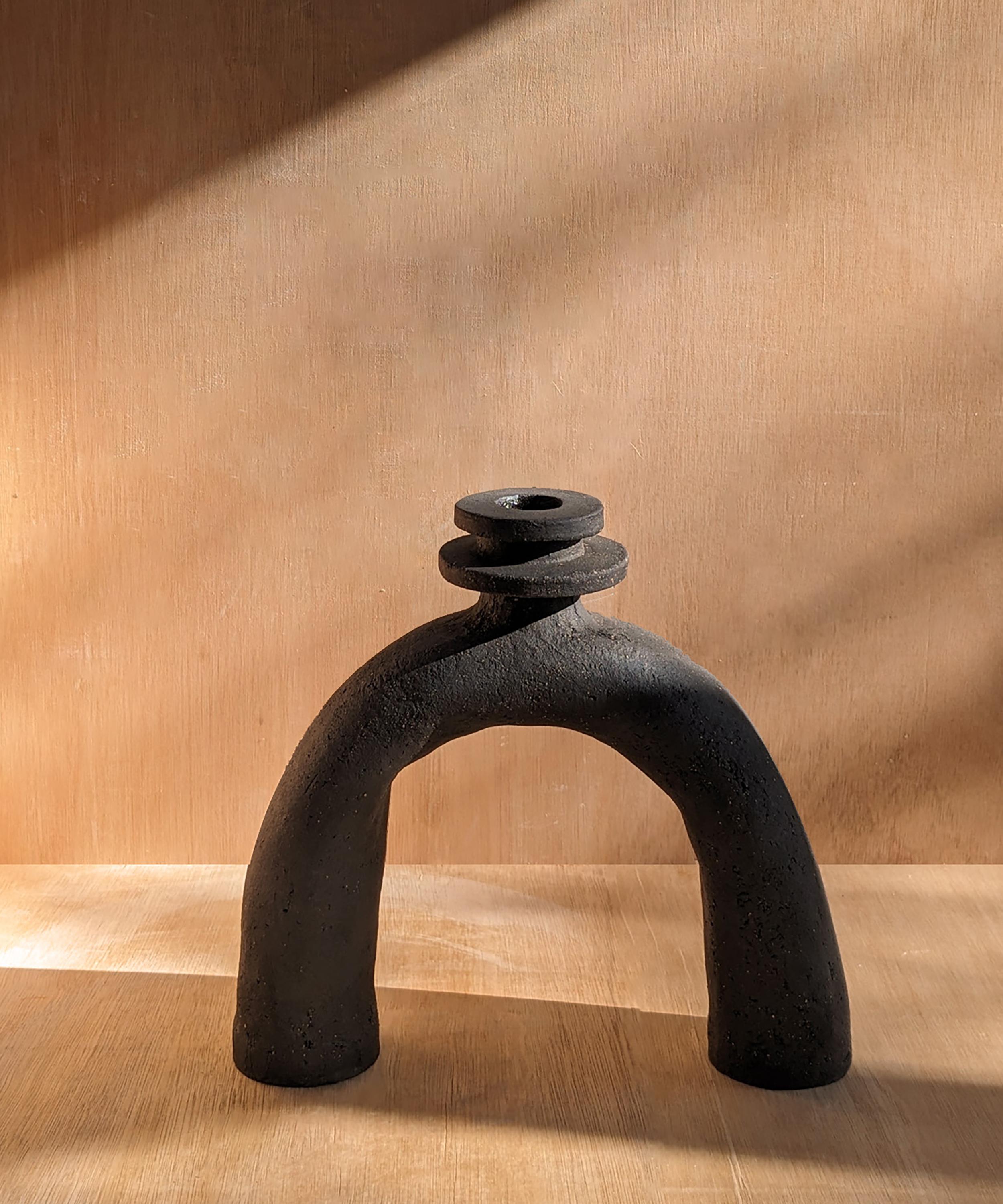 Made from a textured Vulcan black clay and glazed inside with a 'Nori' gloss glaze, this versatile piece doubles as a vase for a polished and practical addition to your shelfscape or mantlepiece.
