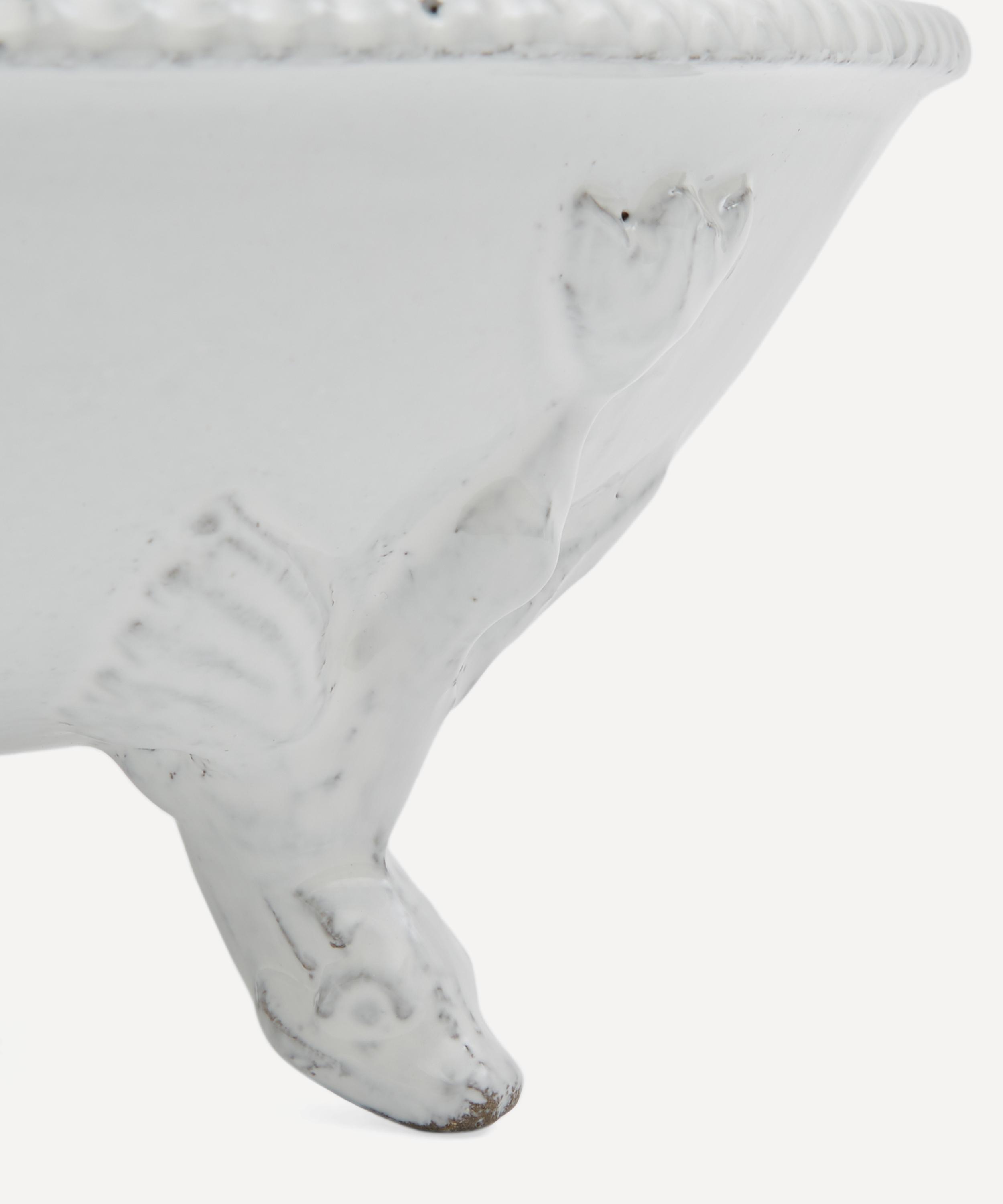 Votary of pre-industrial fabrication, Astier de Villatte is celebrated for being the one and only studio in Paris to hold and harbour the traditions of artisanal ceramic production. Restoring the ancestral systems of moulding and stamping, the Dragon vegetable dish is made using techniques from the Middle Ages which involve moulding a sheet of handmade clay, double firing the ‘biscuit’ piece and glazing the product in white enamel – a lengthy process that requires a drying time of up to one month. Characterised by exposed clay and intricately sculpted details, the dish is engraved with the brand’s signature crest – depicting an interlacing A & V – alongside the initials of one of the 40 master artisans who created it. Each handmade piece tells a beautiful story, romancing and imparting a sense of nostalgia into its owner. Display it with additional pieces from the Dragon range to breathe an air of authenticity into your table setting.