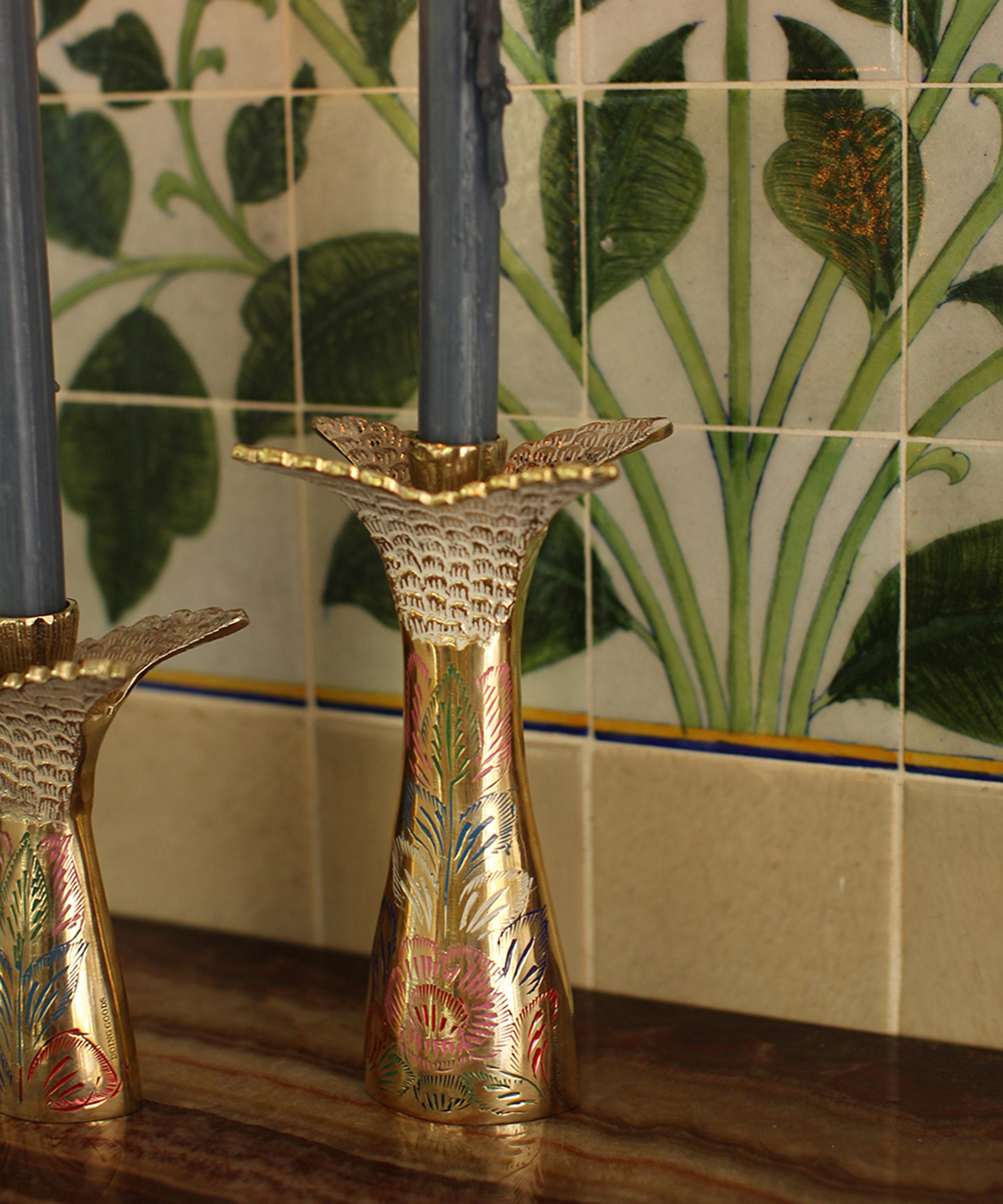 This candle holder from Doing Goods is made from gleaming gold-tone brass and depicts a sculptural fish tail with floral detailing for an intricate finish. Crafted by artisans from a workshop in India, it embodies the Netherlands-based brand’s passion for global treasure-hunting and supporting local communities. Place it on a mantel or sideboard for a dash of ornate, glimmering elegance.