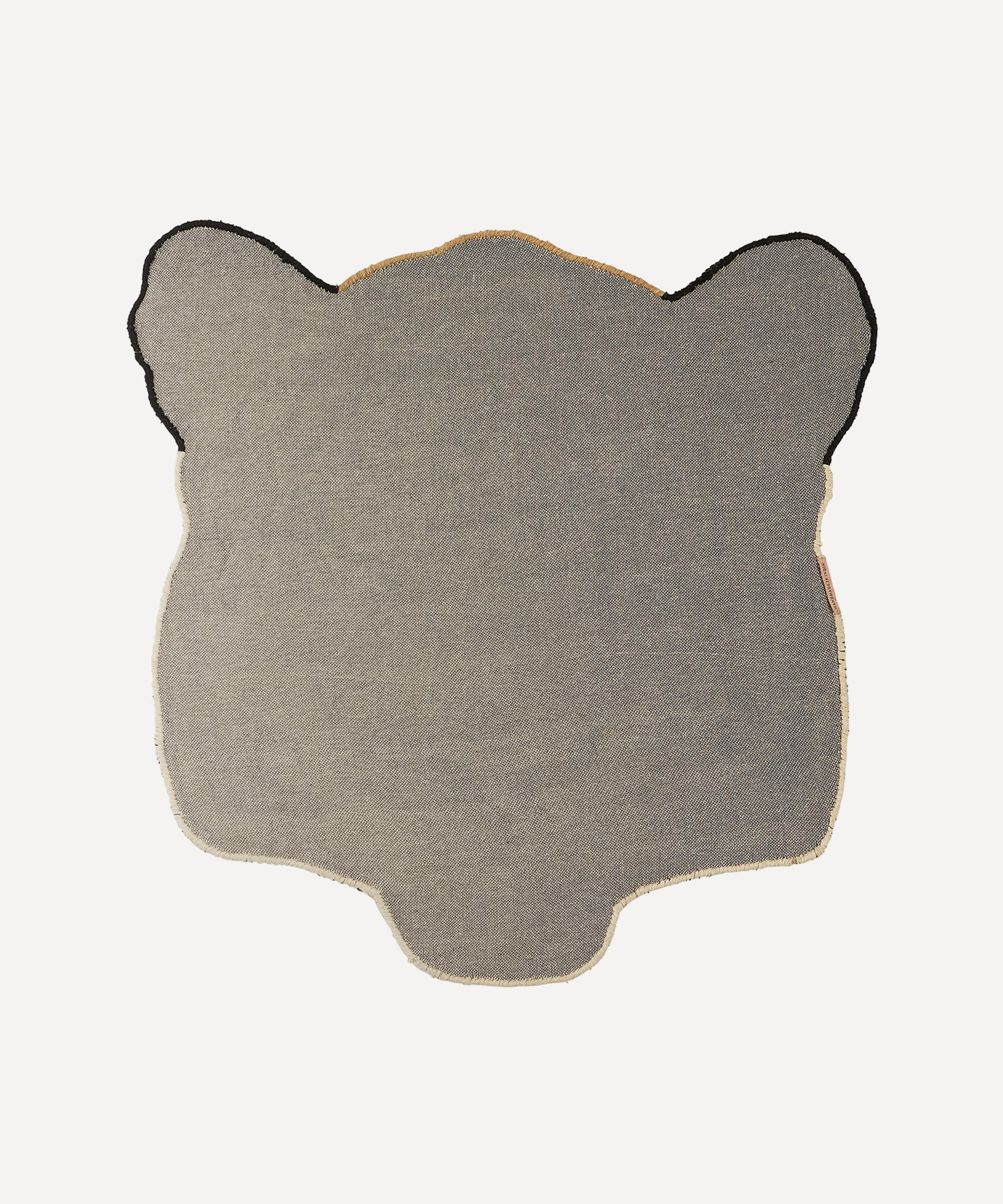 The large Raja tiger head rug from Doing Goods is a vibrant, joyful piece for your home.