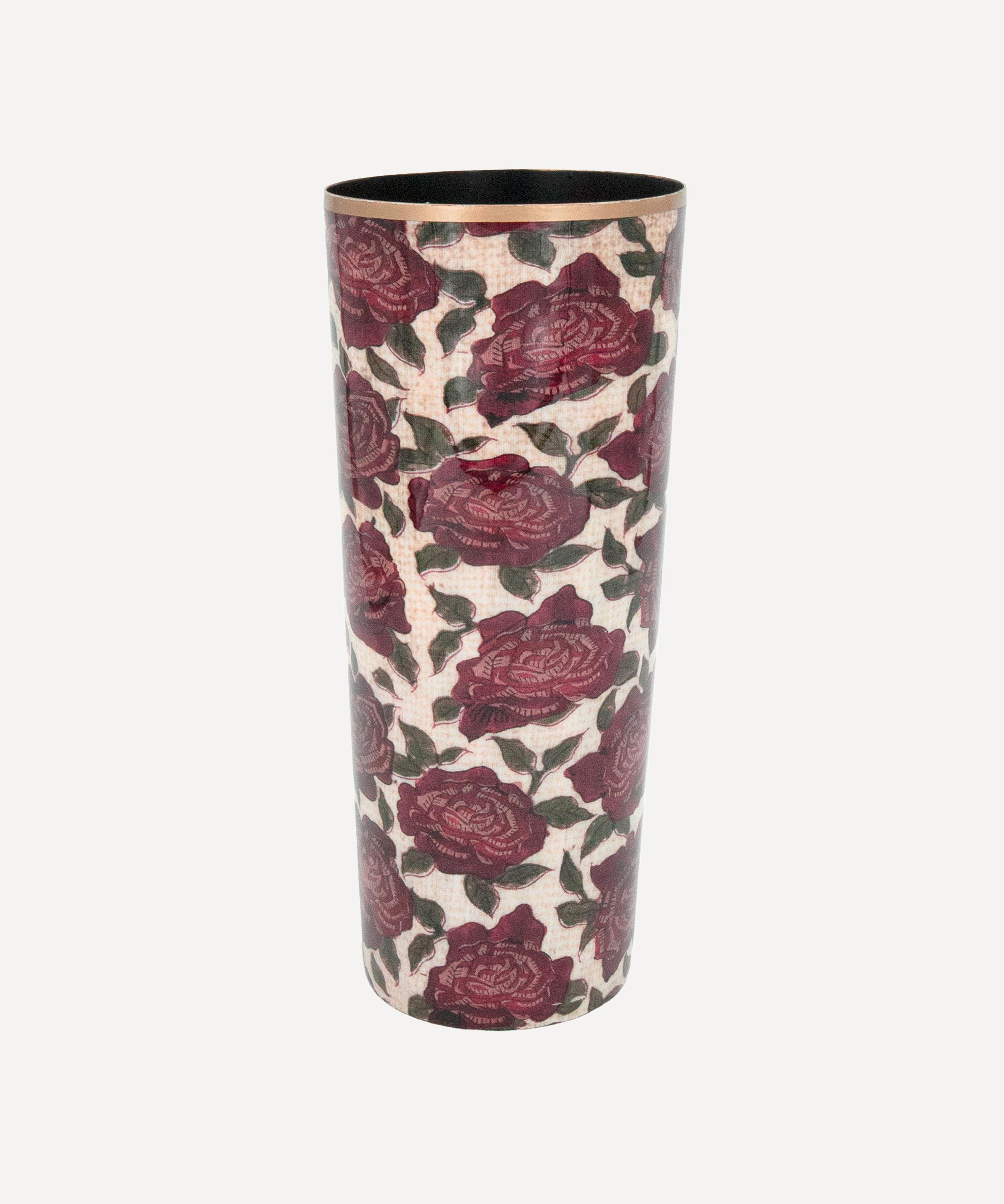 Meticulously crafted from durable enamelled iron, this vase features wonderfully idiosyncratic floral repeat design spanning the entirety of its silhouette. Delicately finished with a hand-gilded edge, style with fresh or dried blooms for a delightfully eclectic accent to your workspace.