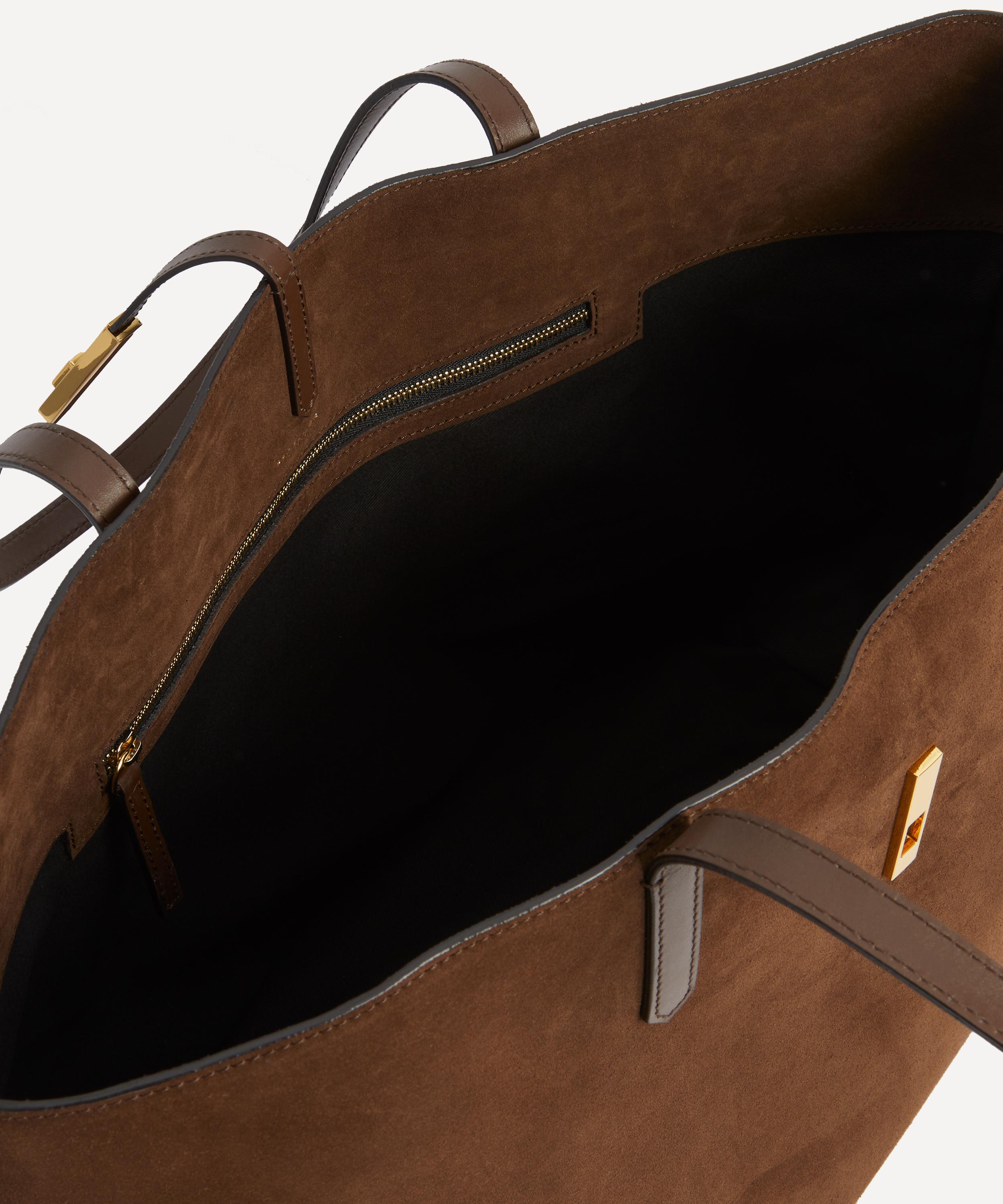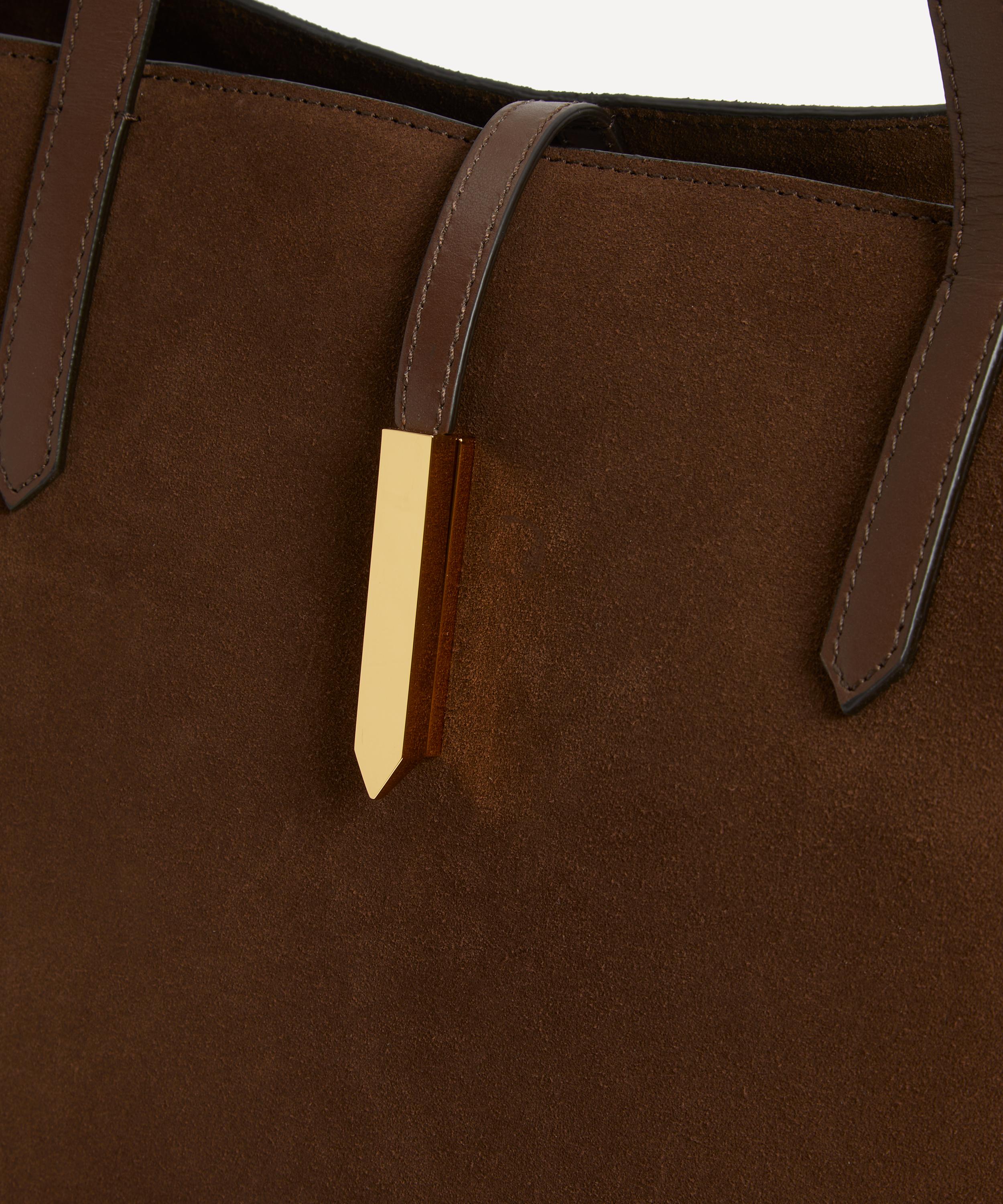 Handcrafted with integrity from suede leather, this midi hobo bag is defined by a triangular silhouette with smooth corners and elongated arrow-shaped lock to the top. It features two adjustable top handles, a roomy main compartment and an internal zip pocket - perfect for on-the-go, wear it over the shoulder, in the crook of you arm or held by hand.
