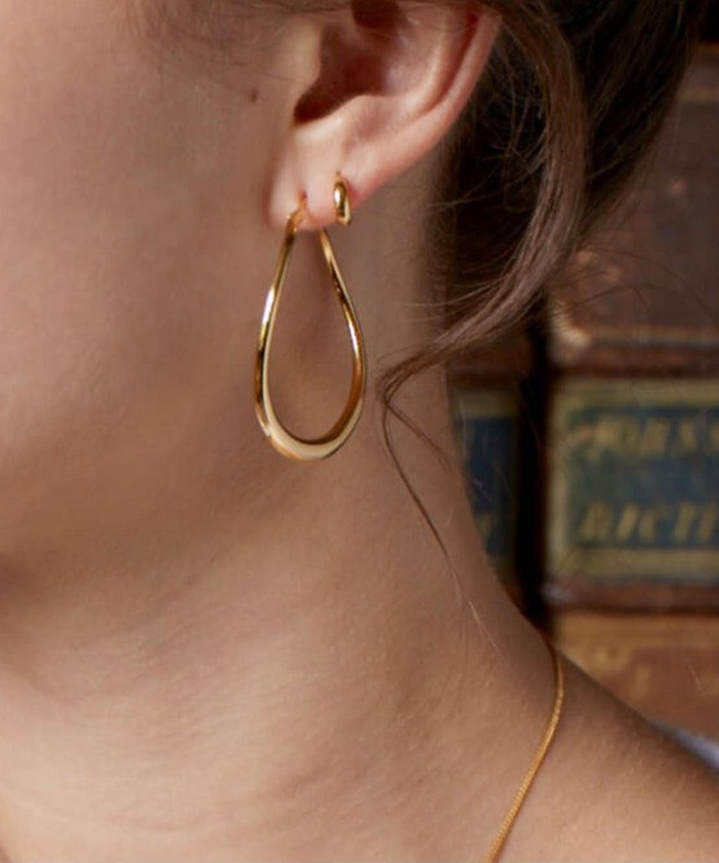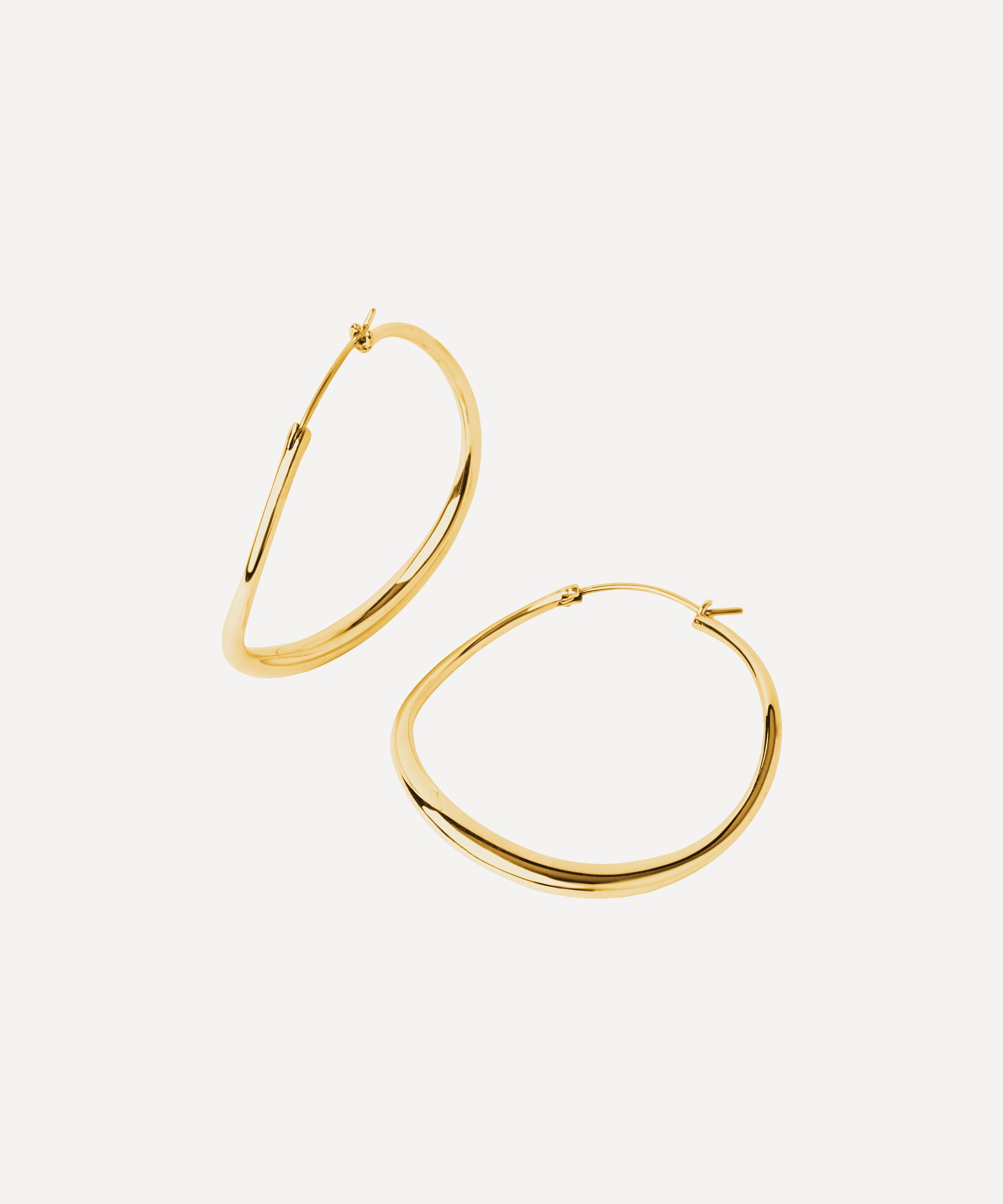 These large gold hoop earrings from Dinny Hall have a simple, sculptural glow, inspired by the ripples of pure natural water.