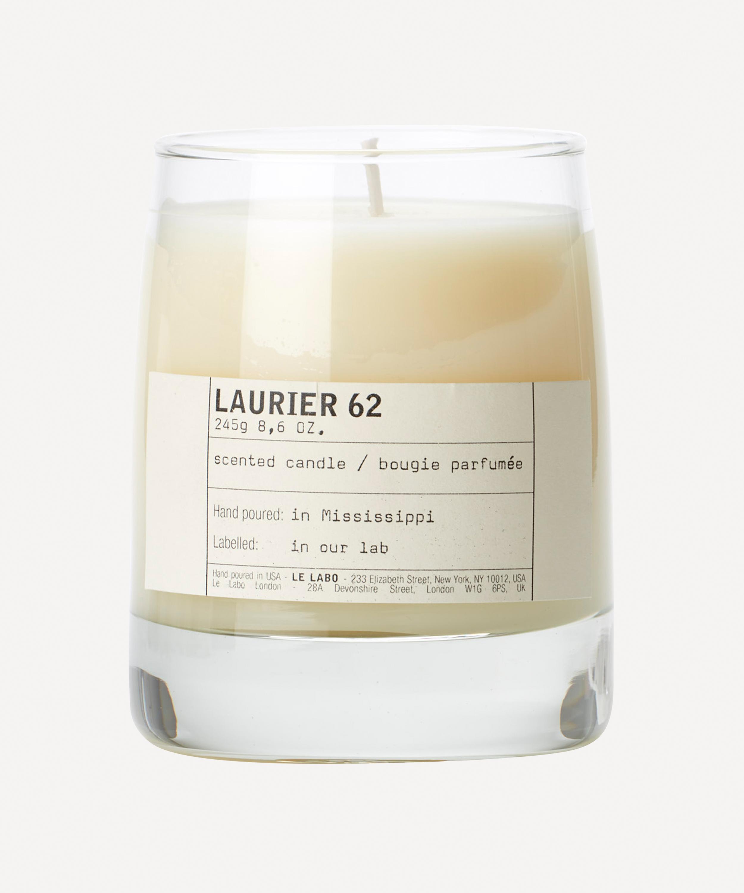 Made with hand-poured soy-blend wax, Le Labo's Laurier 62 scented candle brings a powerful perfume to your living room, with a total of 62 notes including laurel, rosemary, eucalyptus, thyme, cumin, clove, amber, patchouli and sandalwood.