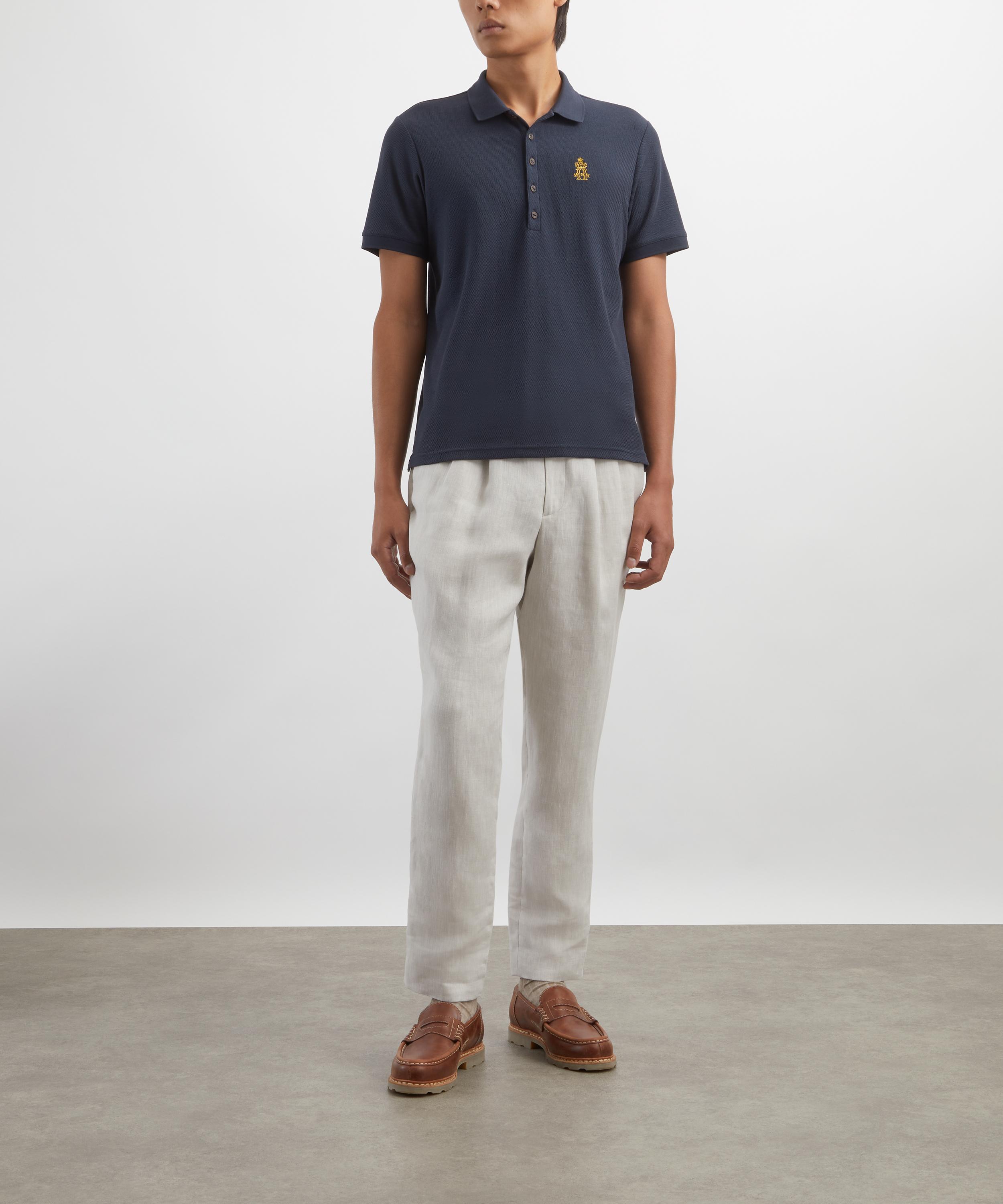 Timeless and tailored, the Lavenham Trousers feature a high waist, front pleats, and a distinctive elongated waistband strap. Crafted in linen for breathable elegance, with triple fastening, back jet pockets, and tonal embroidery honoring 150 years of Hurlingham Polo heritage.