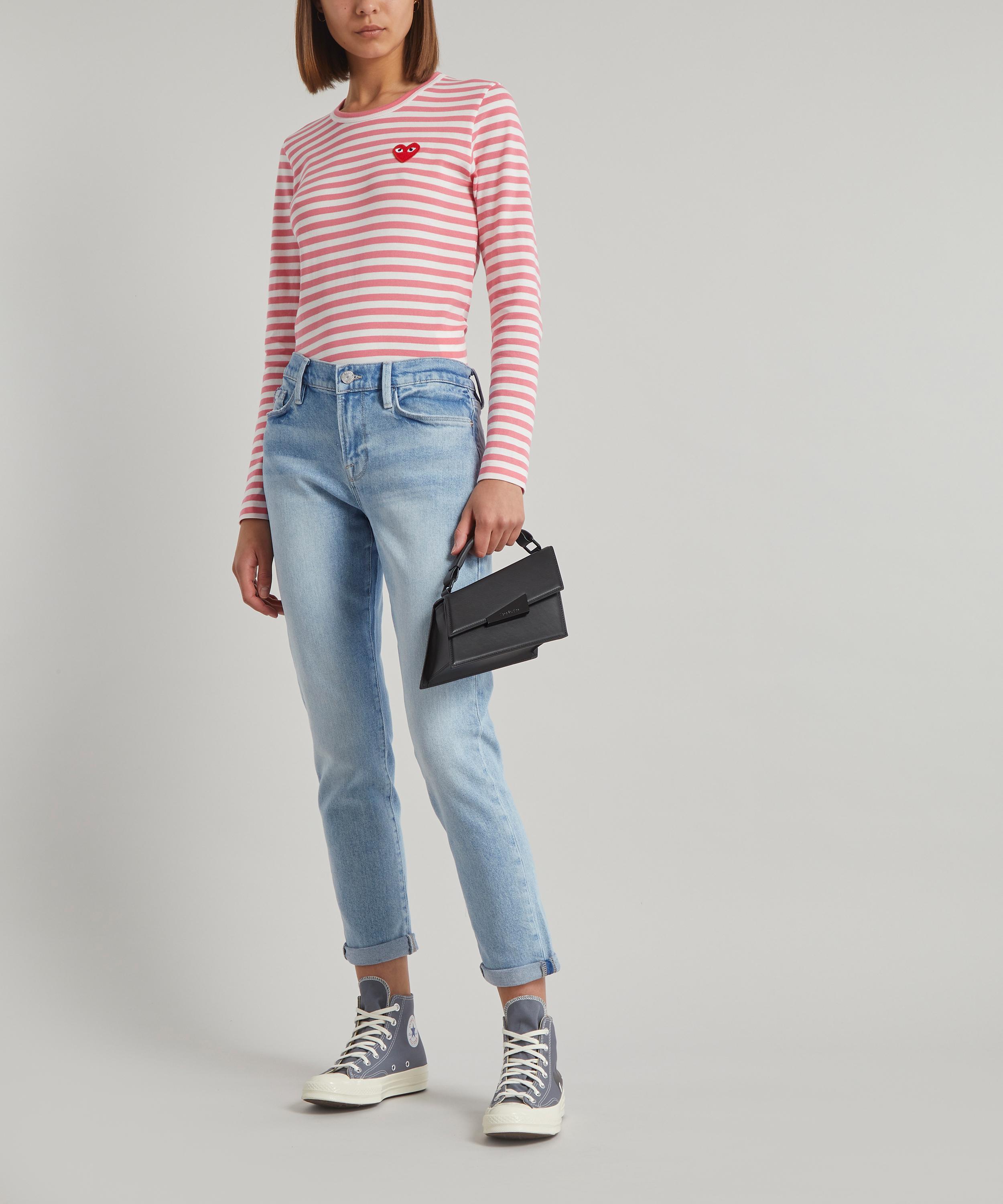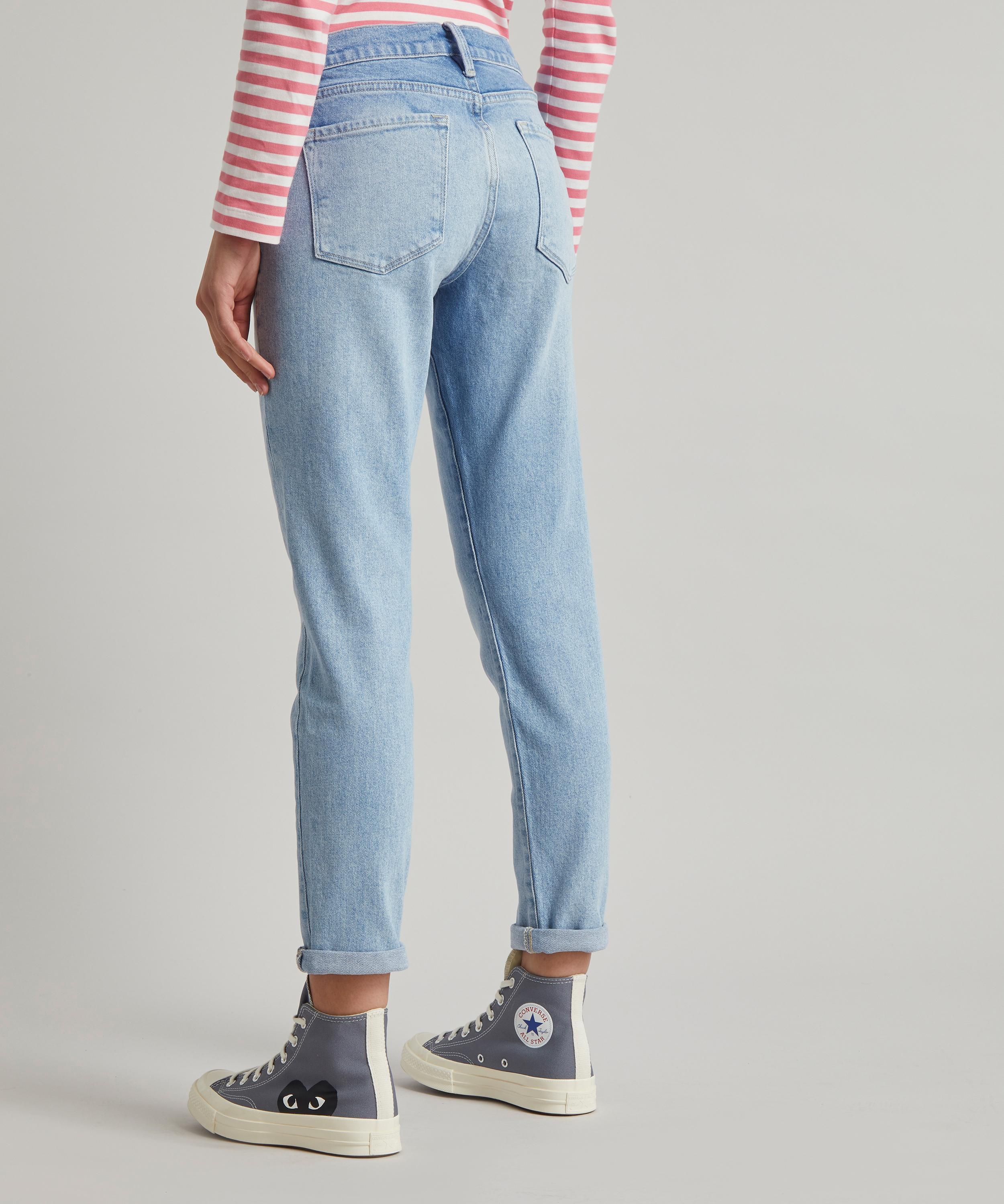 Cut to cult Los Angeles label Frame's beloved boyfriend fit, these mid-rise jeans are perfect for providing a rock and roll low-slung look. The slouchy fit and distressed finish pair perfectly with your favourite leather jacket - we suggest a ribbed polo-neck too for inimitable downtown-LA style.