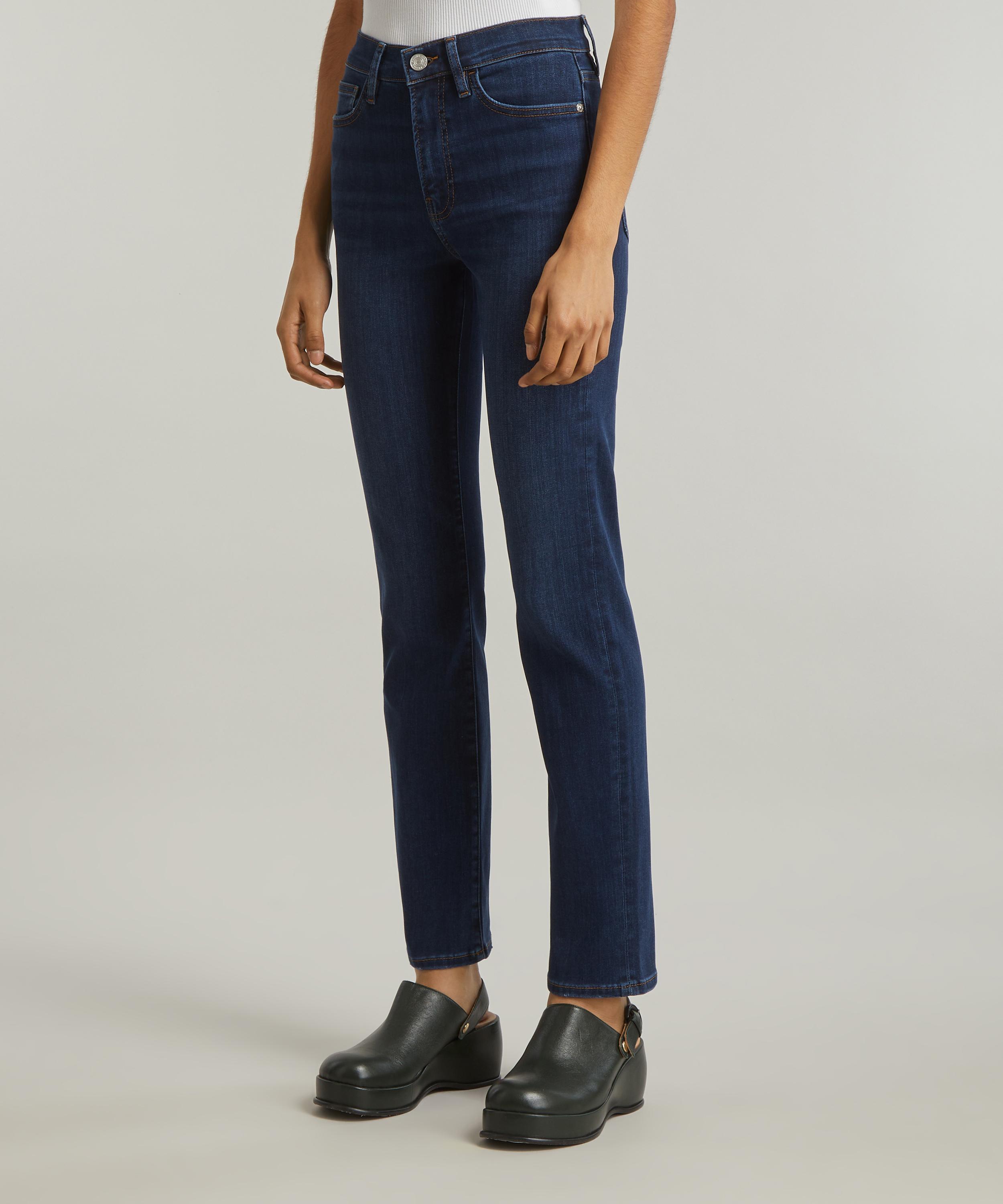 Crafted from FRAME’s signature super-stretch cotton denim for the softest, most comfortable wear, these tailored straight leg jeans have a flattering high waist complete with subtle whiskering detail for a subtle lived-in look.