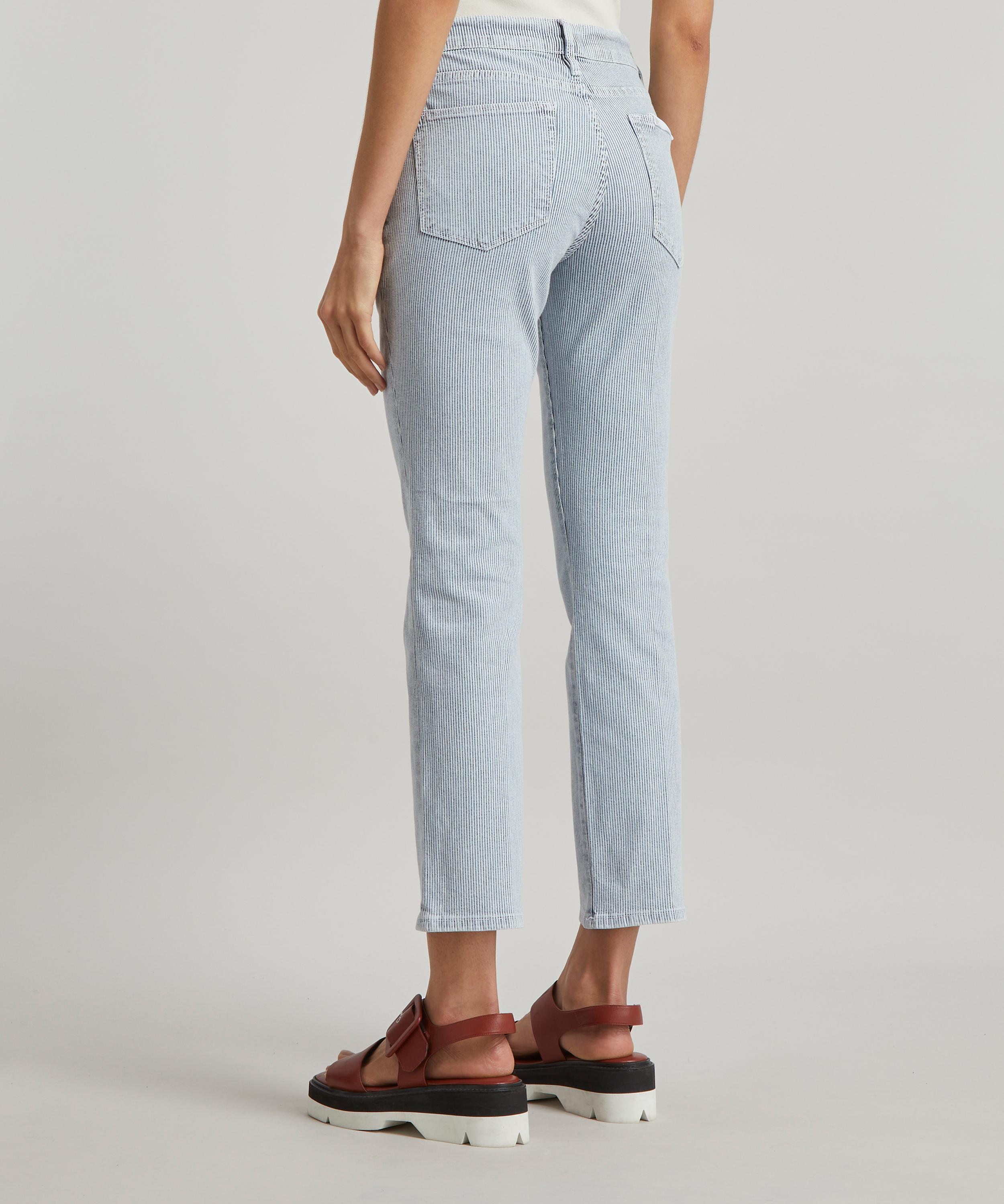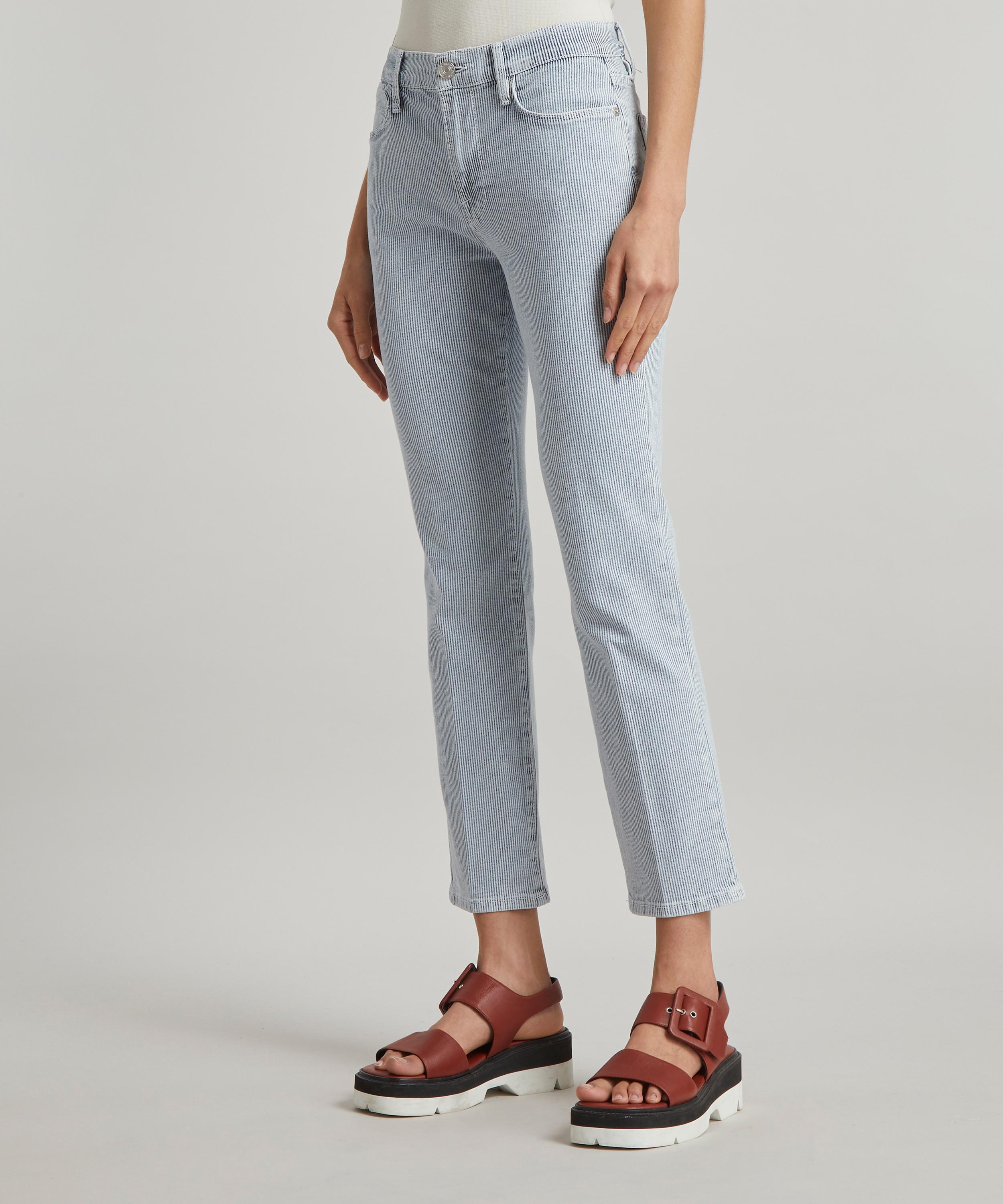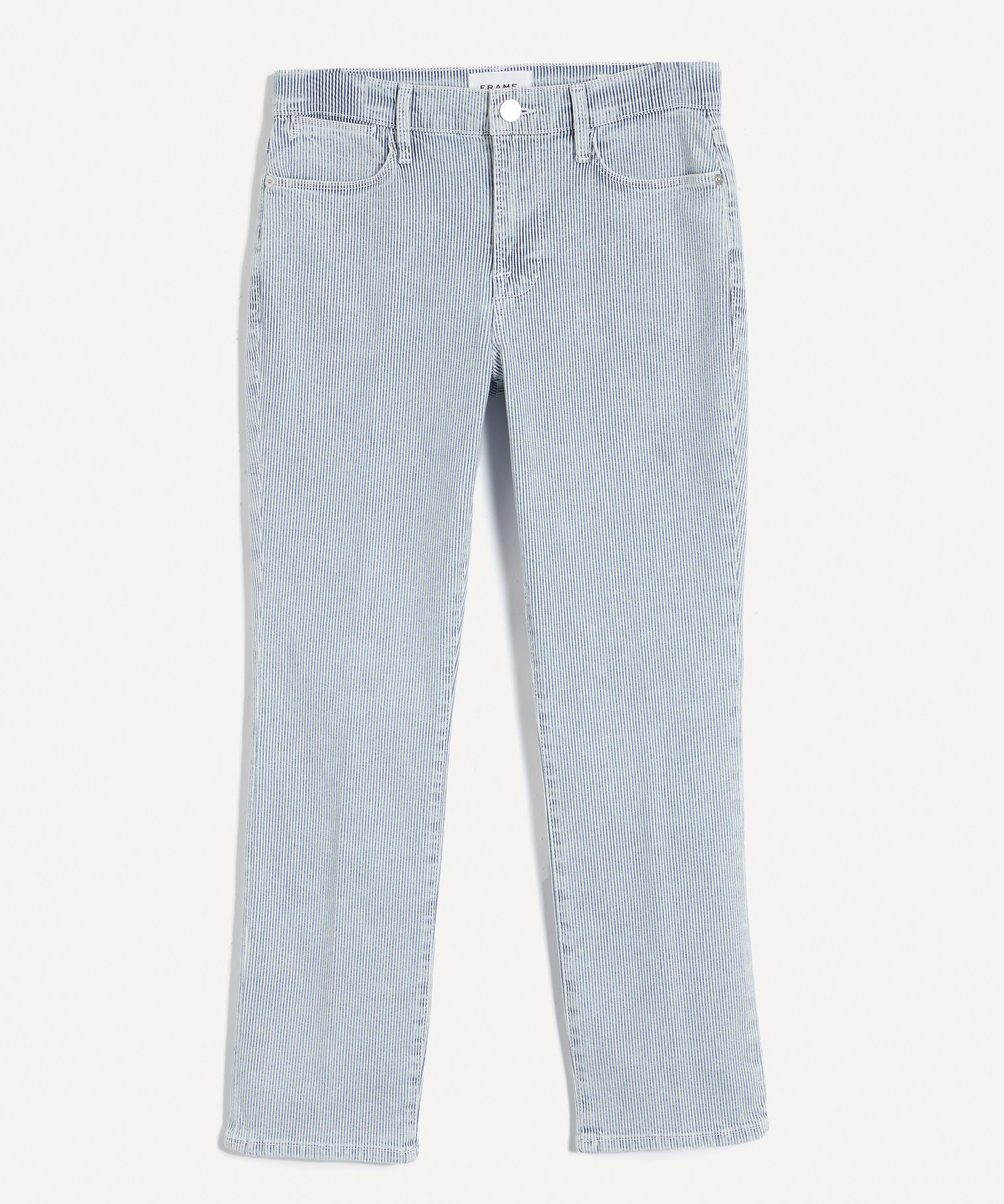 Straight-leg, high-waist jeans in a subtle blue sun-bleached stripe, with a fanatical following from cult Los Angeles denim label Frame.