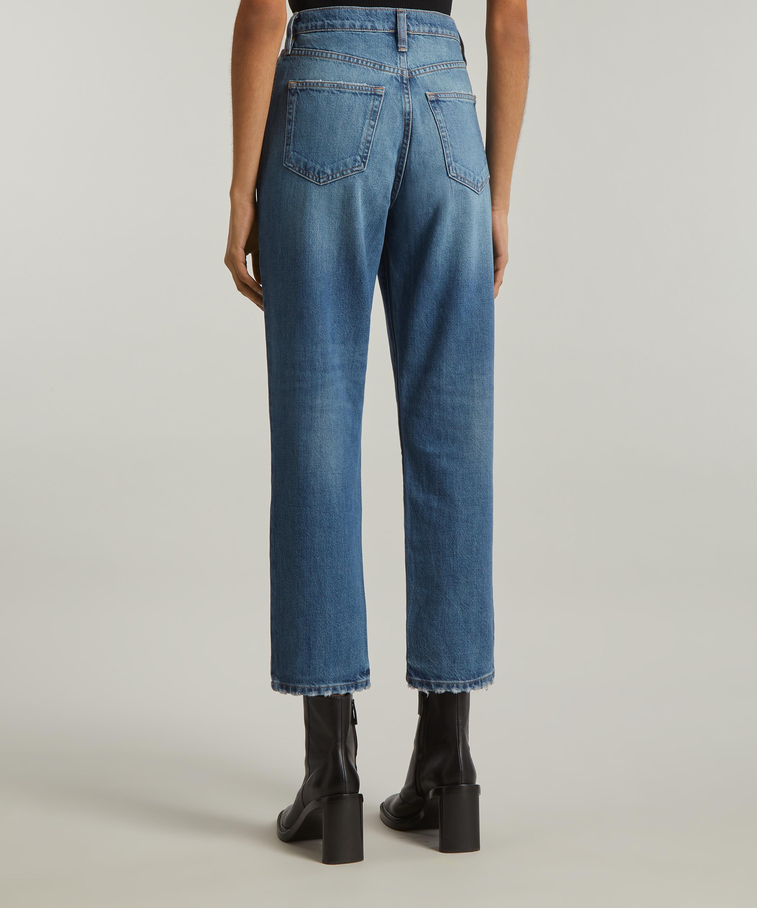 Translating as “the guy” in French, Le Mec is a boyish jean with an understated aesthetic. Cut to a relaxed waist, its straight leg subtly tapers into a flattering ankle-length. Crafted from rigid denim with subtle fading and whiskering detail, its distressed hem and seams give it a lived-in look.