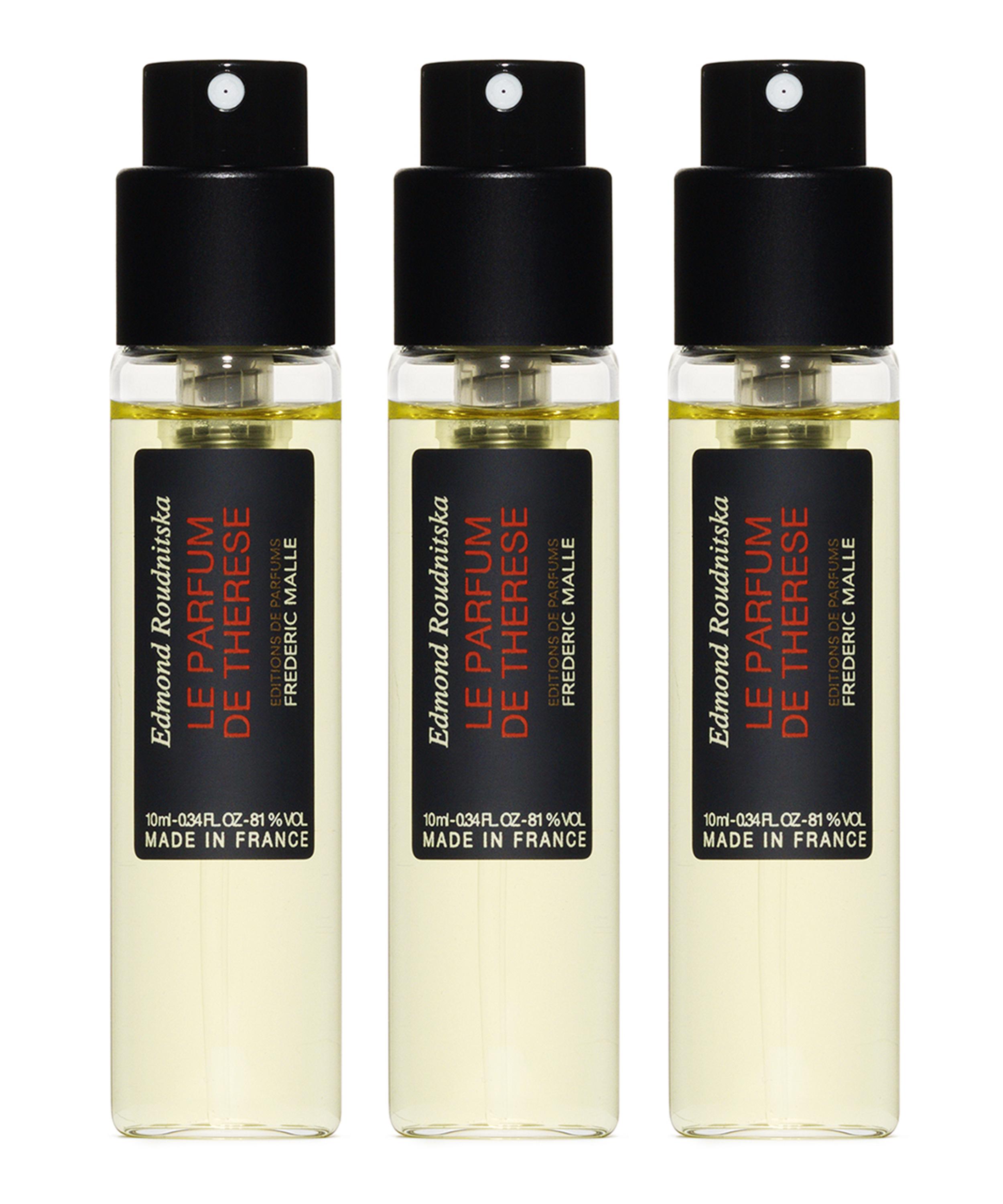 A crucial testimony to the elegance of a bygone era, Frédéric Malle's Le Parfum de Thérèse is an icon of its age. Fruity top notes of tangerine and melon lead into a romantic heart of rose and prune, coming to rest on a traditional yet distinctive base of cedar wood, vetiver and leather. The definition of a cult perfume, Edmond Roudnitska's genius blend stands the test of time. Acquire this travel set to ensure your favourite fragrance is always at hand, wherever life may lead.