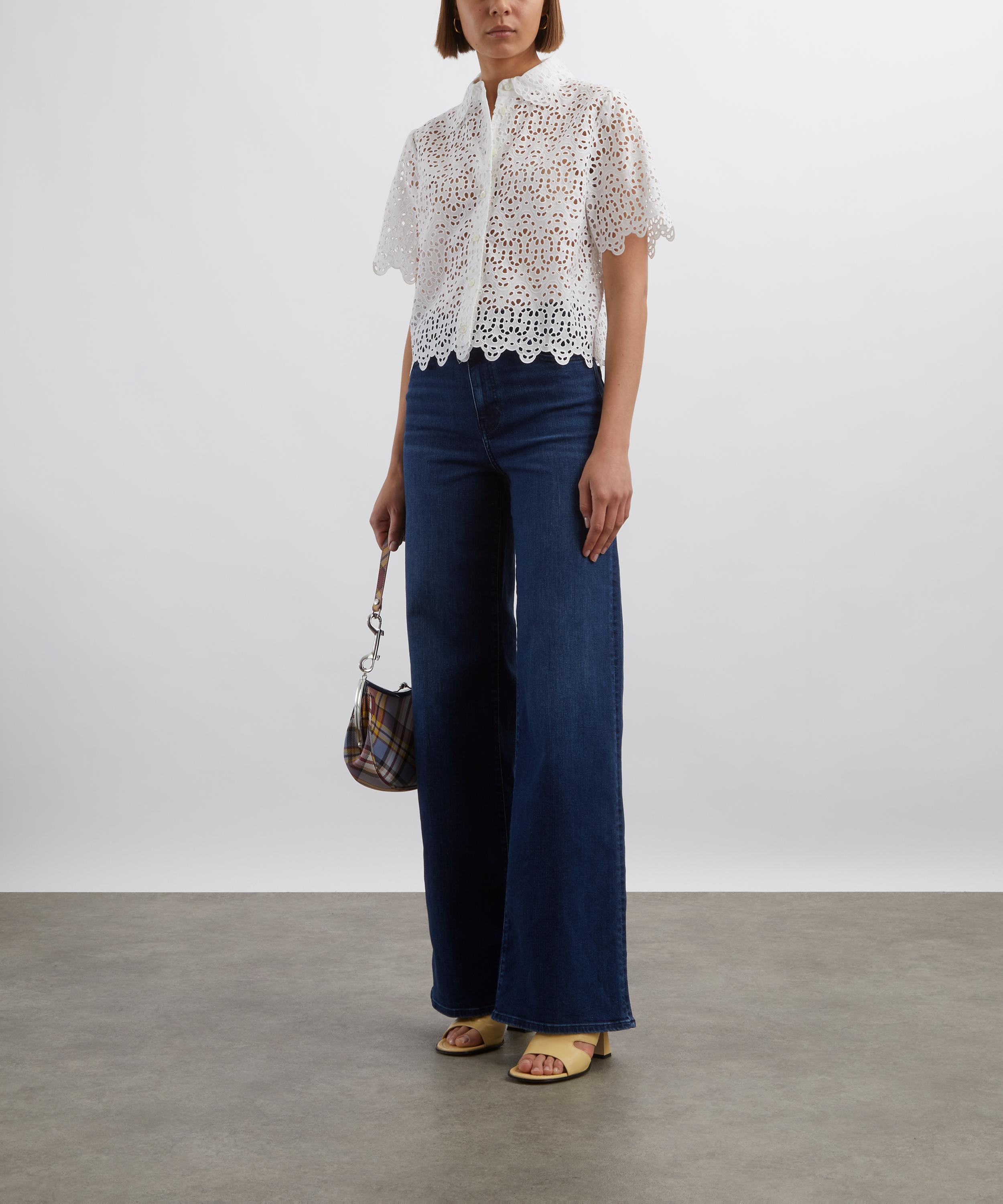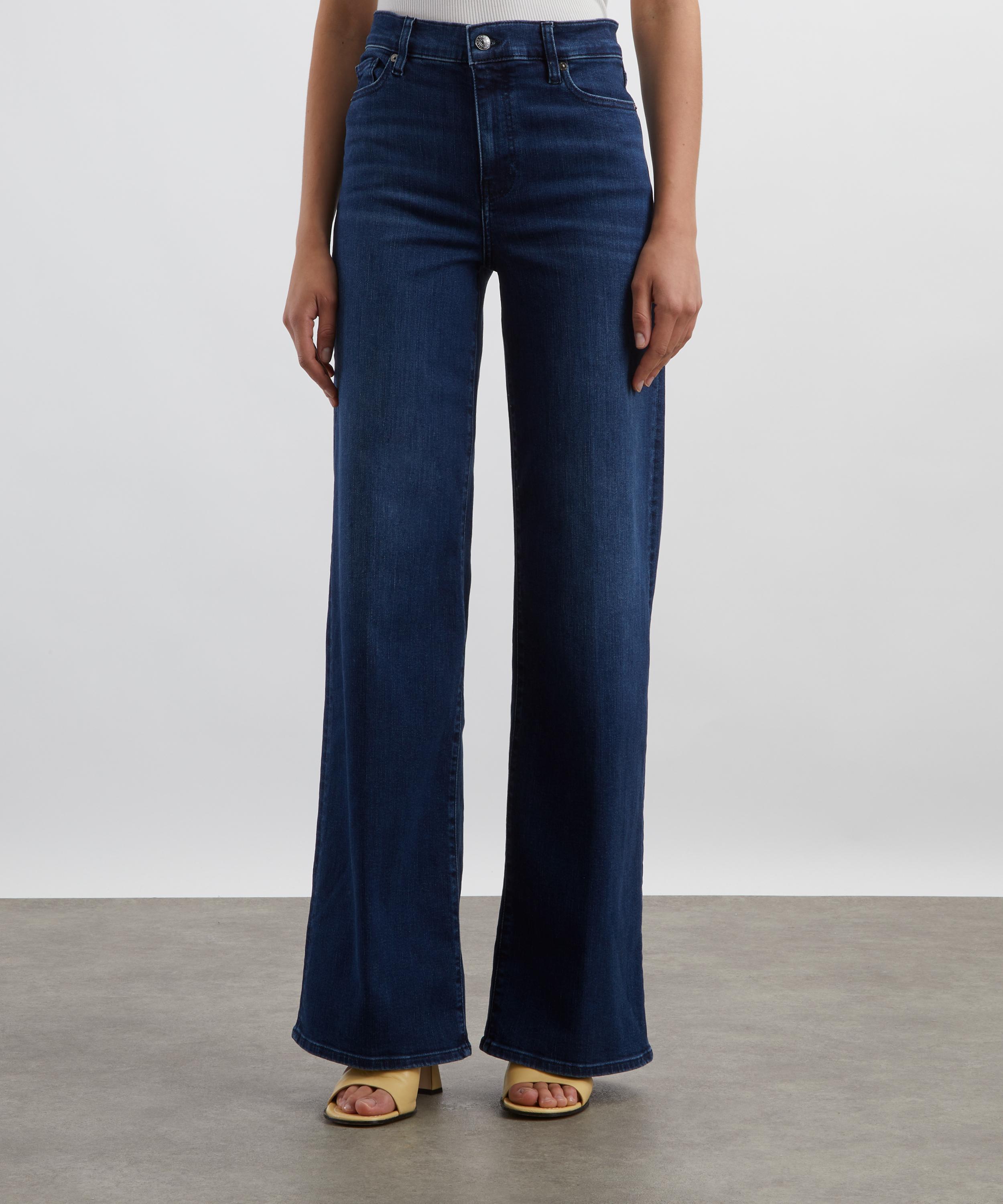 Crafted from ultra-stretch denim, the Le Slim Palazzo Jeans feature a flattering high-rise waist, a contoured fit through the hips, and a subtly flared wide-leg silhouette for an elegant, streamlined look.