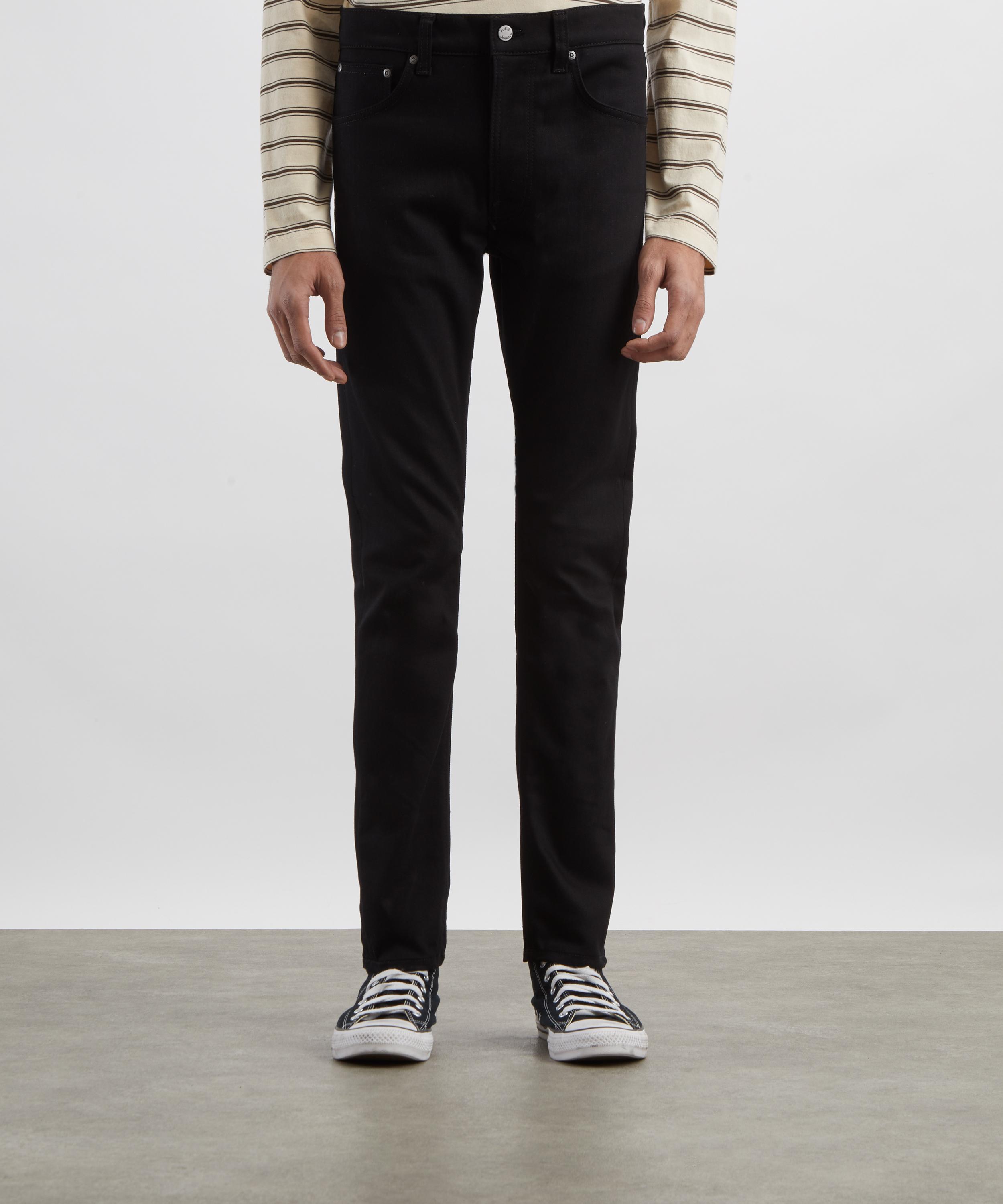 Crafted from comfort stretch denim in a long-lasting pitch-black wash, the Lean Dean jeans feature a mid-rise and slim, tapered-leg silhouette, finished with orange topstitching that adds a distinctive touch.