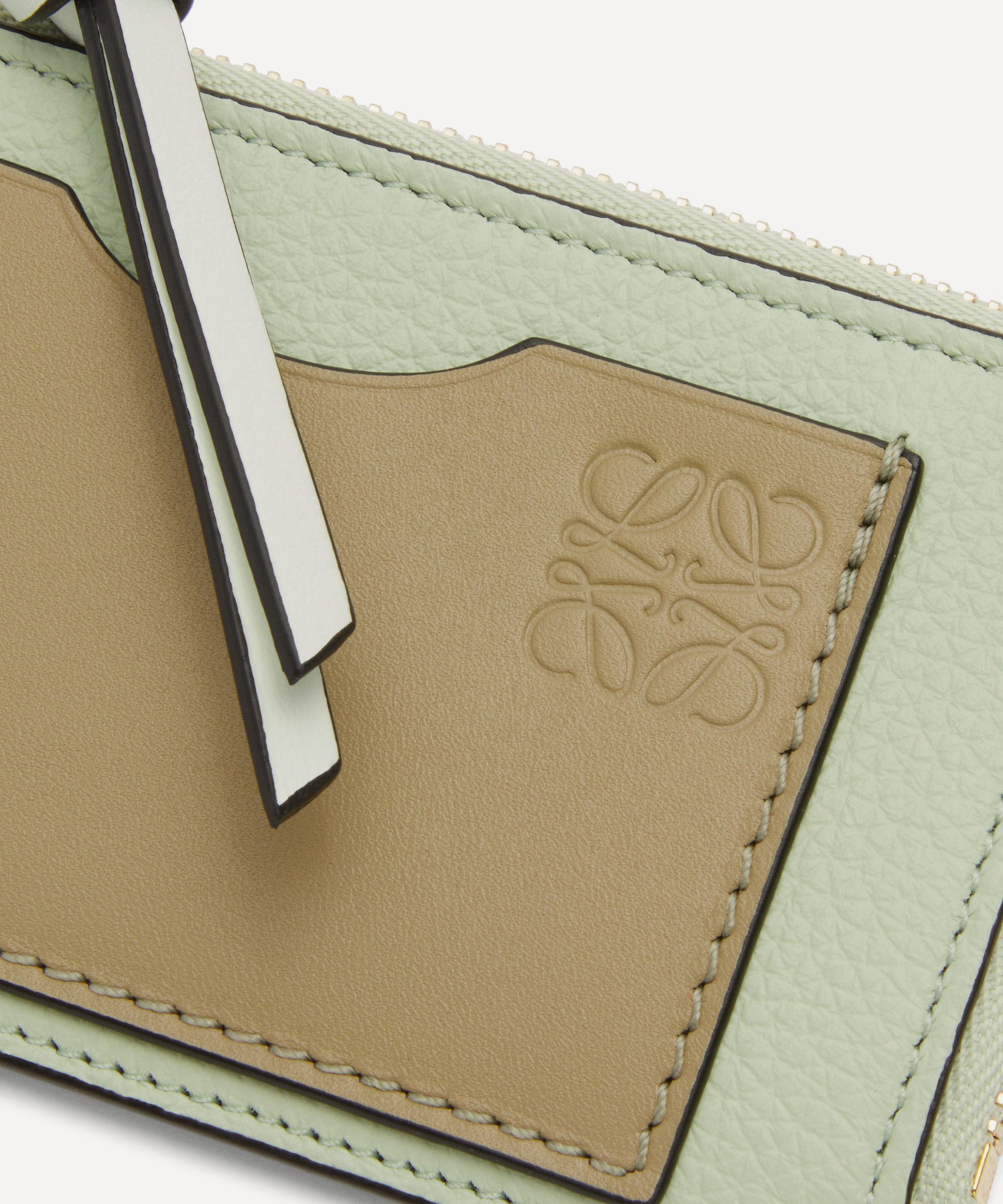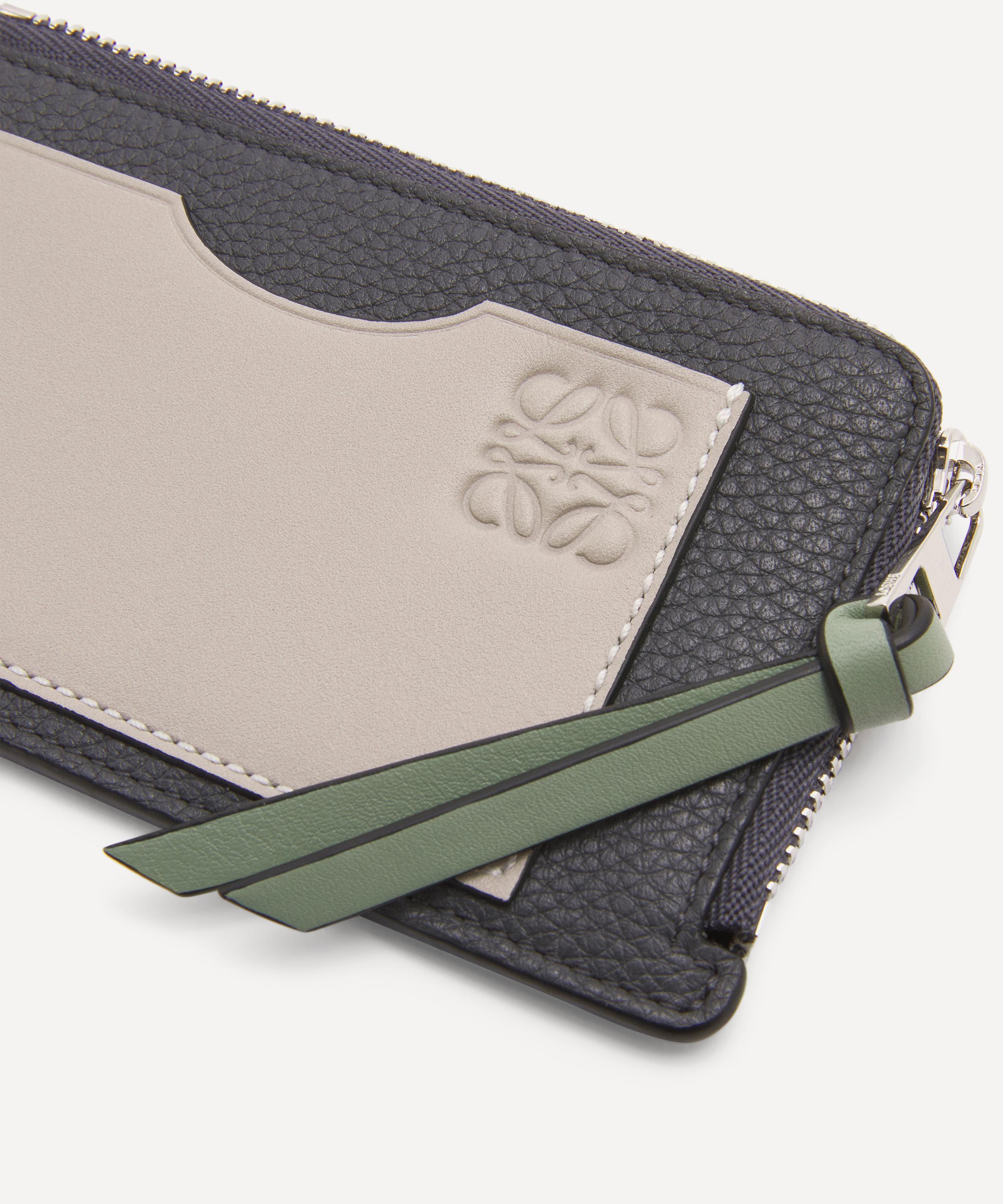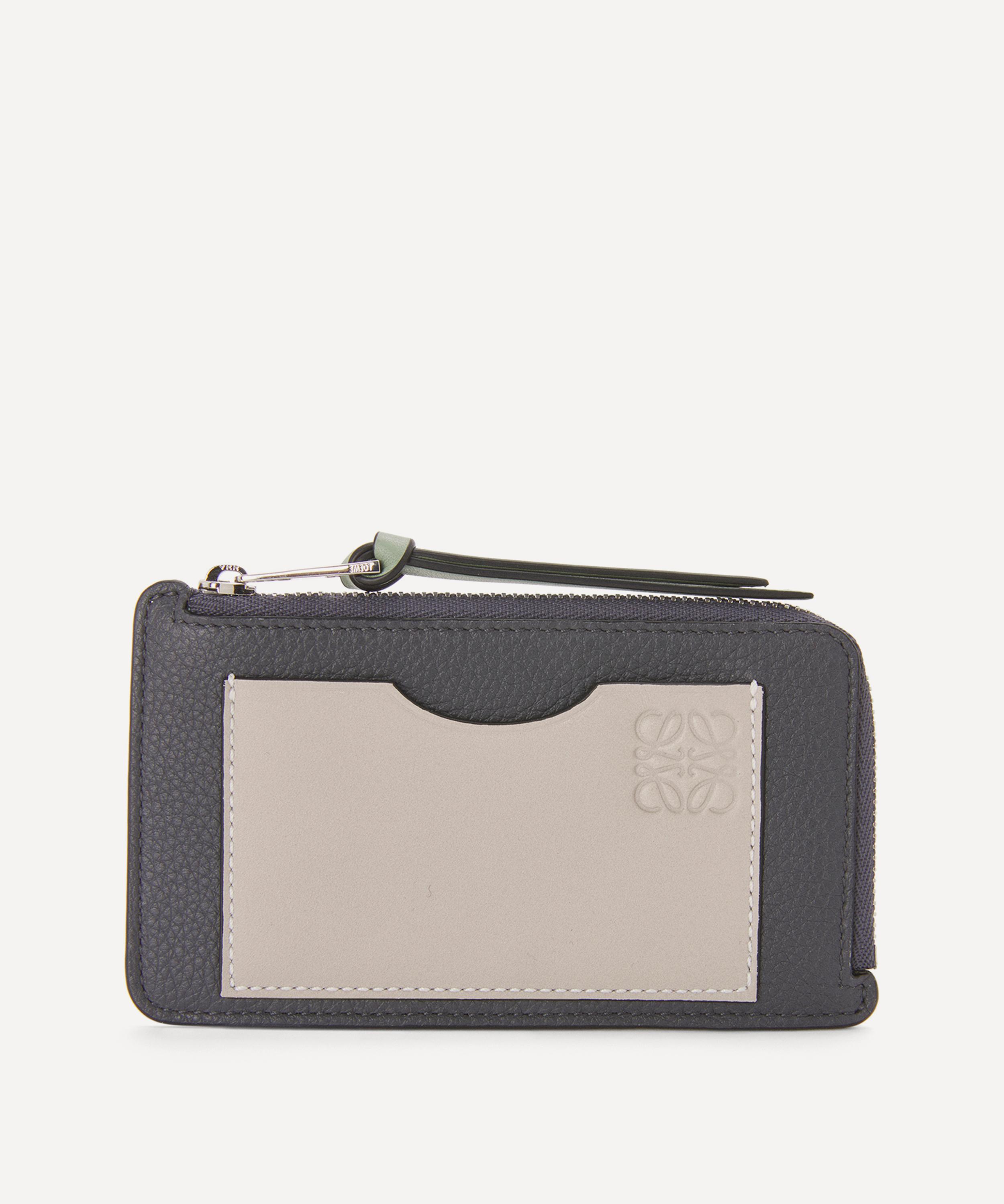 This coin card holder is cut from a combination of smooth and grained calfskin leather by Spanish fashion house Loewe.