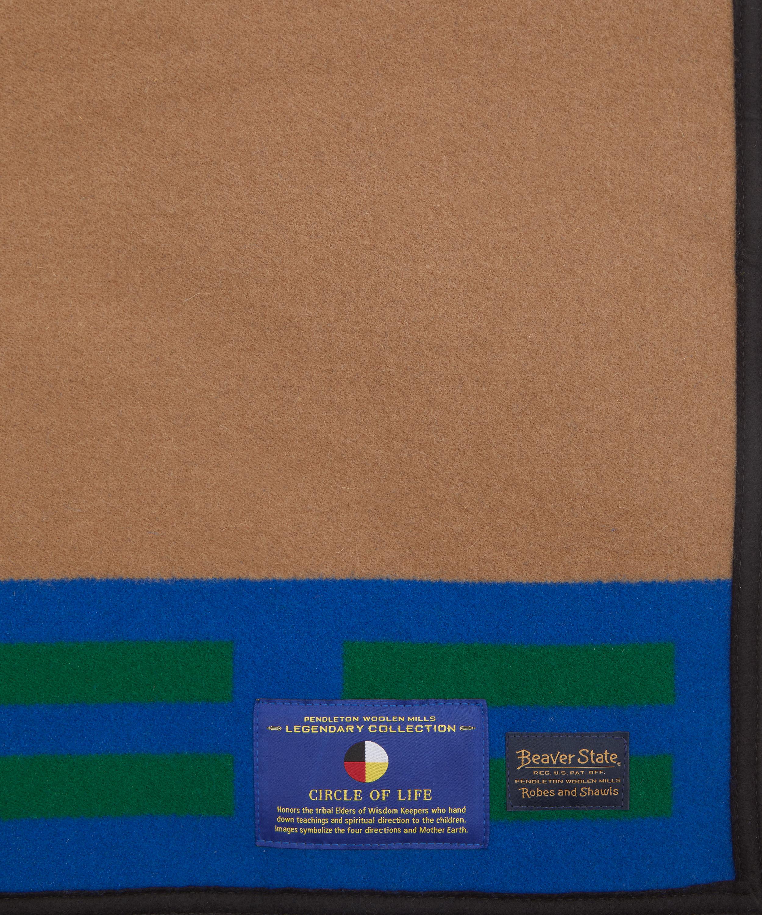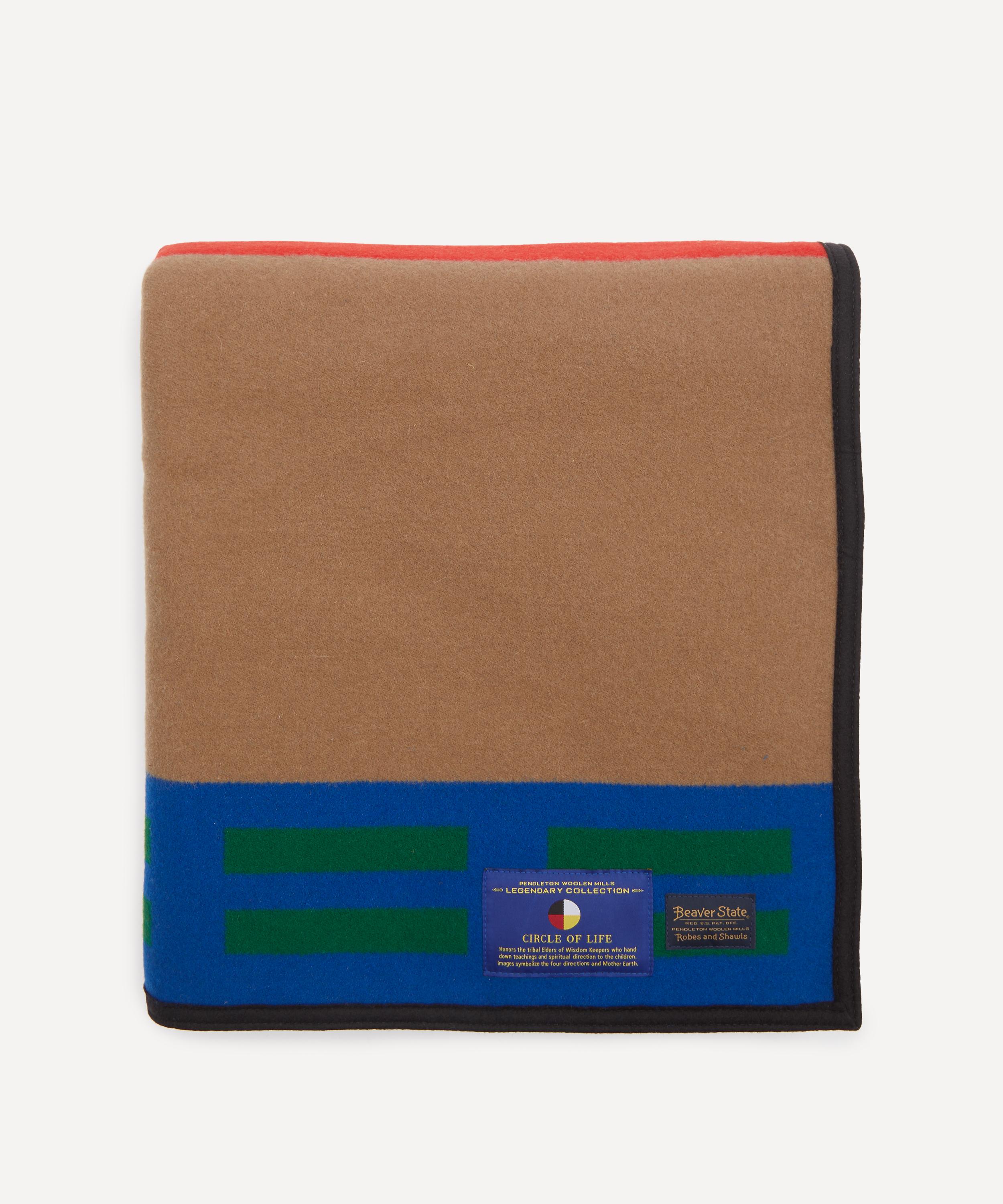This wool-blend blanket pays homage to tribal elders who provide spiritual guidance to younger generations, with hues thoughtfully chosen to represent humankind, Mother Nature, and the moon. Finished in a classic square silhouette, it’s a timeless addition to any home.